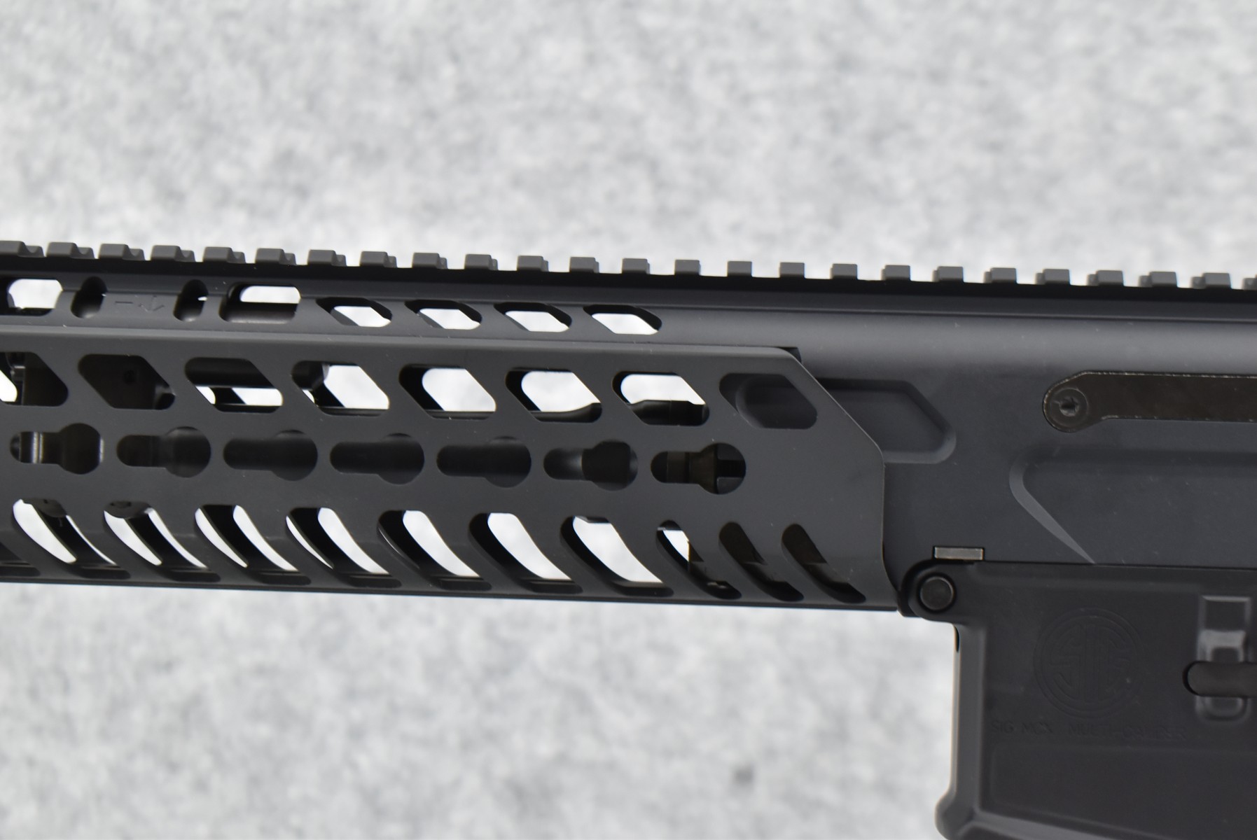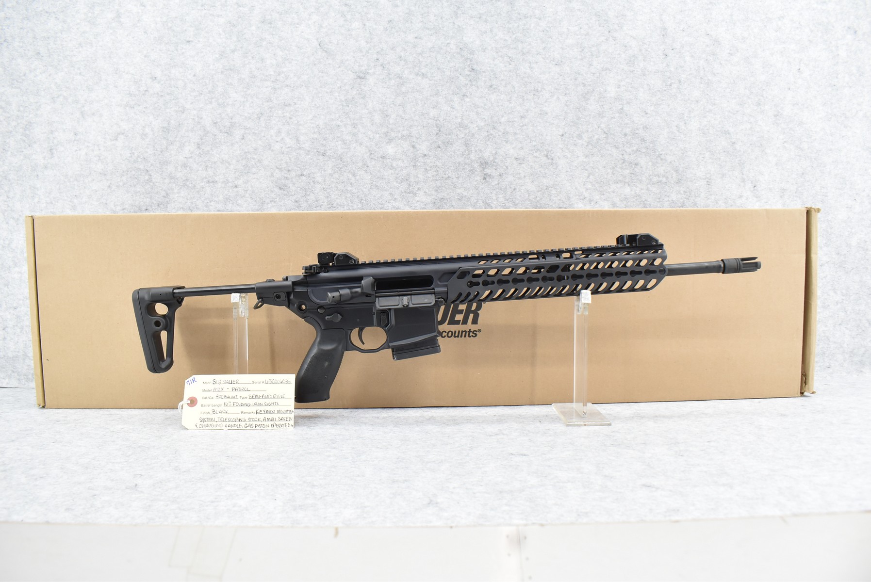 71R. Sig Sauer – Mod. MCX-Patrol – 300 Black Out Cal. Semi-Auto Rifle – w/16” Barrel w/Folding Iron Sights – Black Finish – w/Forearm Keymod Mounting System & Telescoping Stock – w/Ambi Safety & Charging Handle – Gas Piston Operated – Unfired w/Factory Box, Manual, 5Rd Mag & Lock (CANNOT GO TO MARYLAND!)