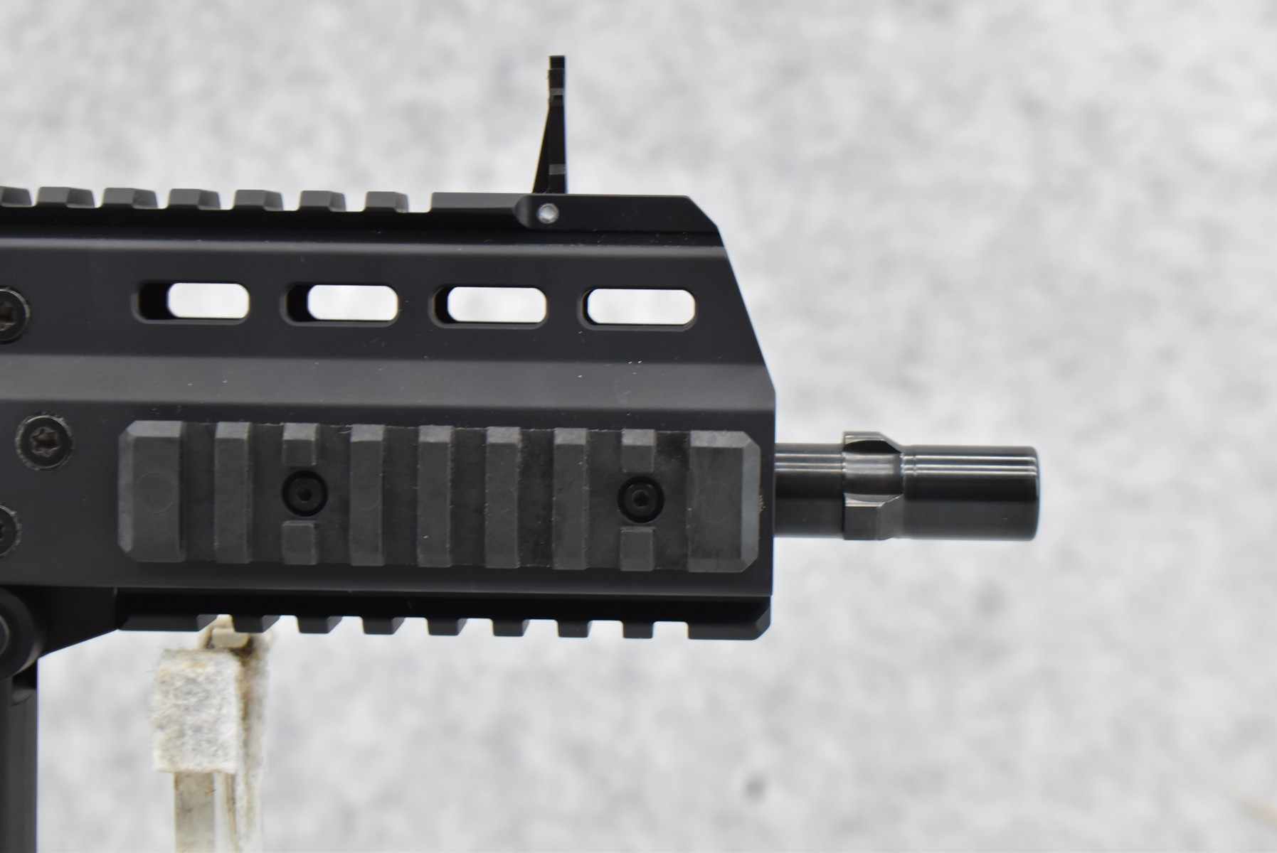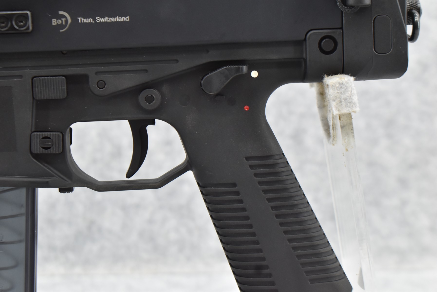 73R. B&T (Brugger & Thommet – Swiss Mfg.) – Mod. APC9 (Advanced Police Carbine) – 9mm Cal. Semi-Auto Pistol – w/6.8” Barrel w/Pro-Version Flip Up Iron Sights – Black Finish – w/Polymer Lower – w/AR Style Selector, Ambi Safety, Picatinny Rail Mounts – w/Sling Swivel – w/30Rd Mag – Blowback Operating System – New & Unfired w/Factory Box, Manual & Sling