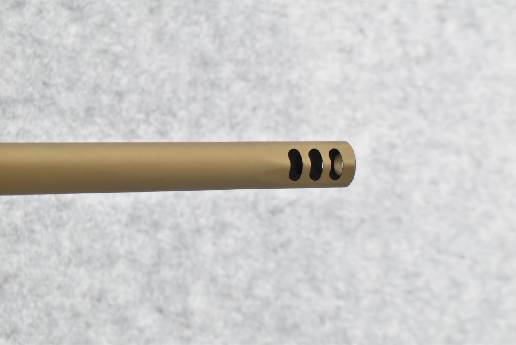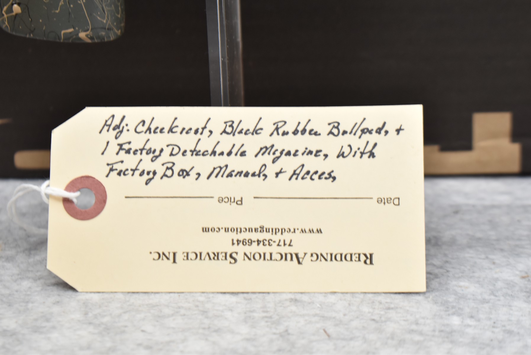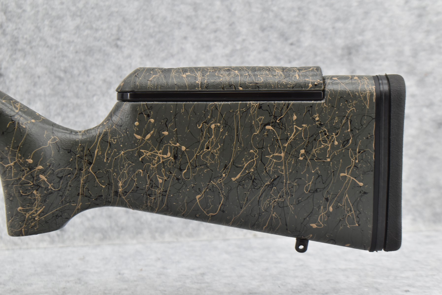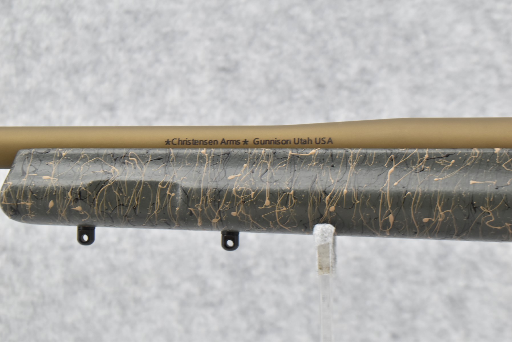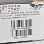 75R. Christensen Arms – Mod. 14 – 338 Lapua Cal. Bolt Action Rifle – w/27” Mesa Long Range 1-9.3 Barrel w/Muzzle Break – Burnt Bronze Cerakote Finish – w/Green Palm Swell Pistol Grip Synthetic Stock w/Black and Tan Spyder Web Accents, Adjustable Cheek Rest, and Black Rubber Butt Pad – w/1 Factory Detachable Magazine – Unfired w/Factory Box, Manual, and Accessories