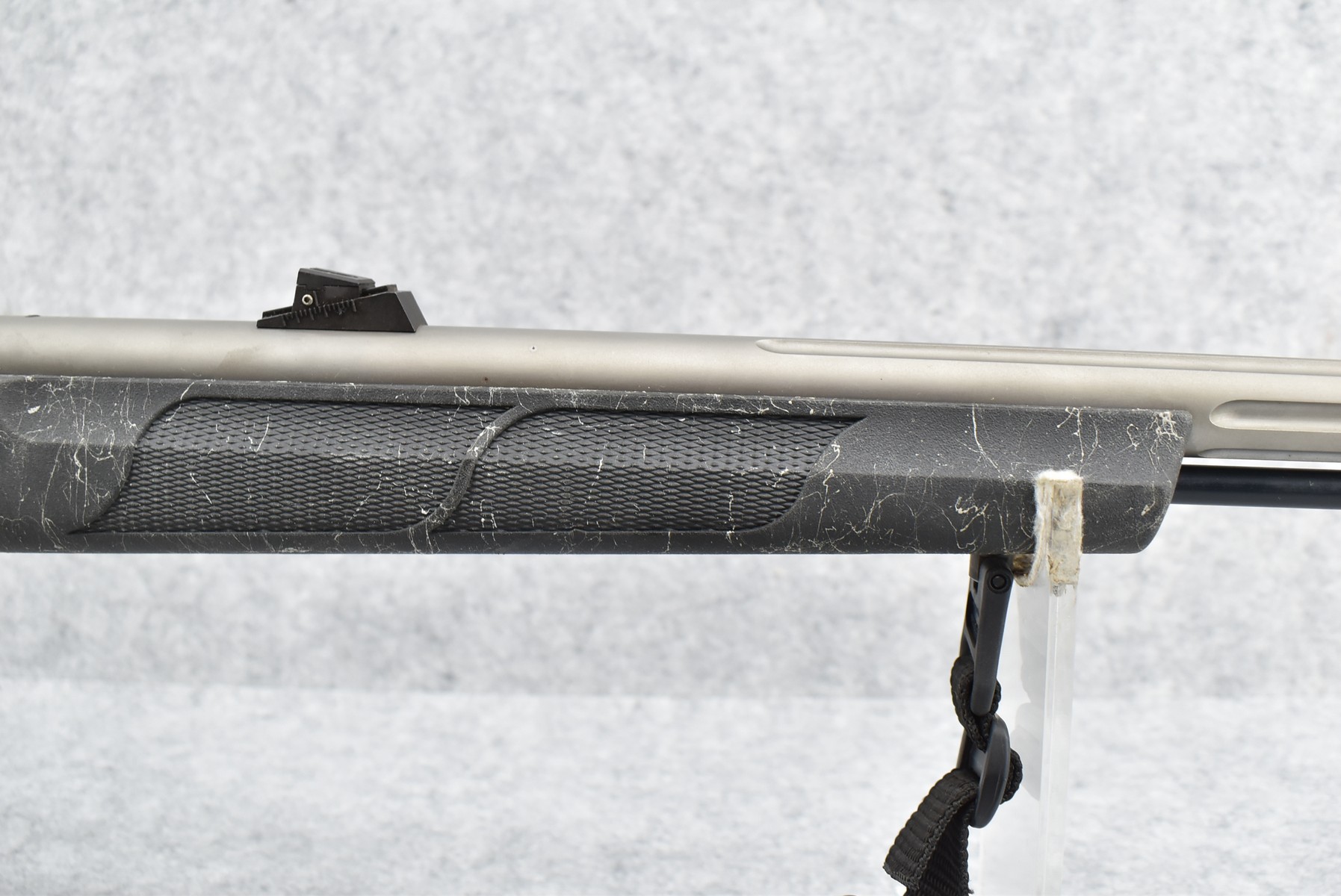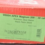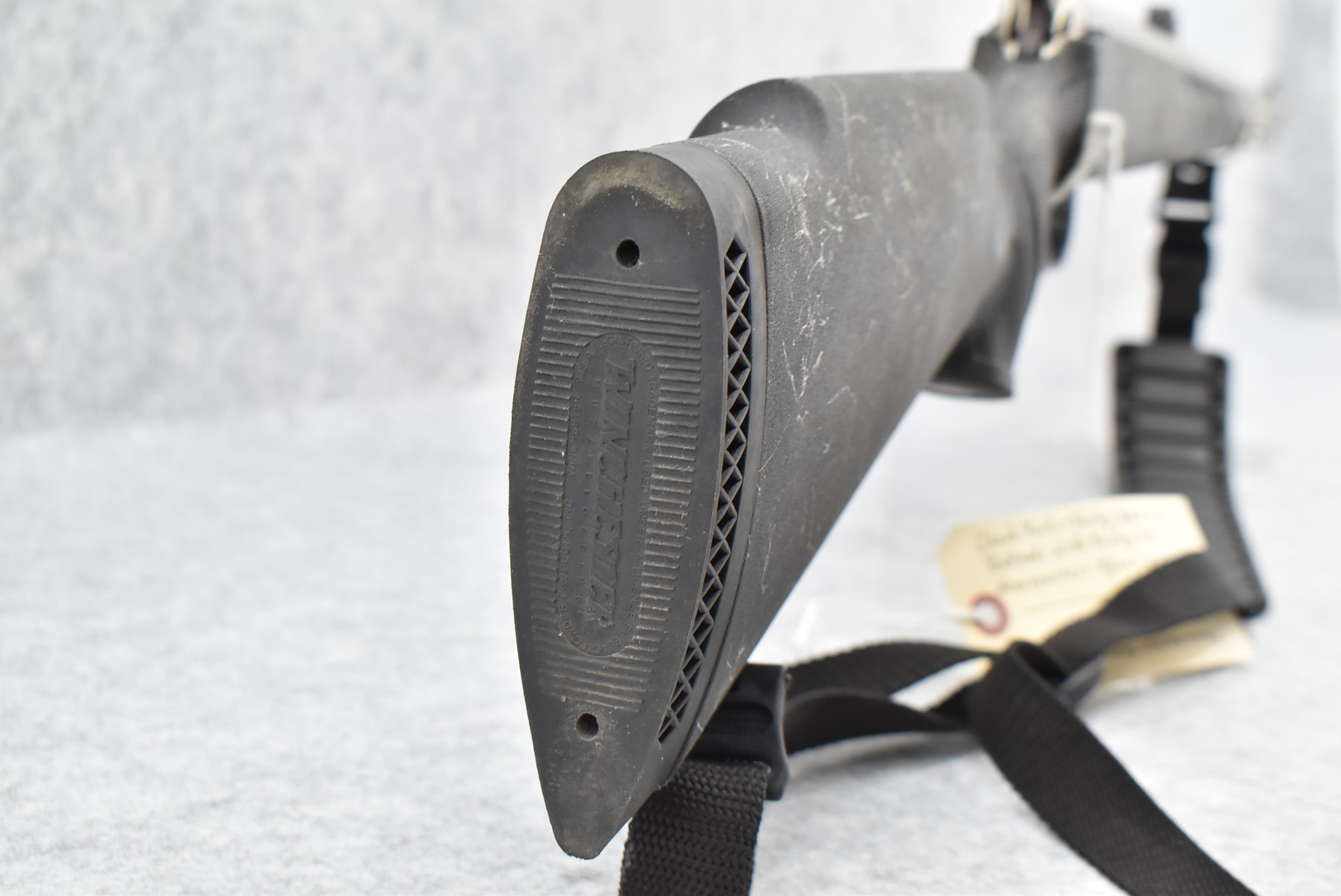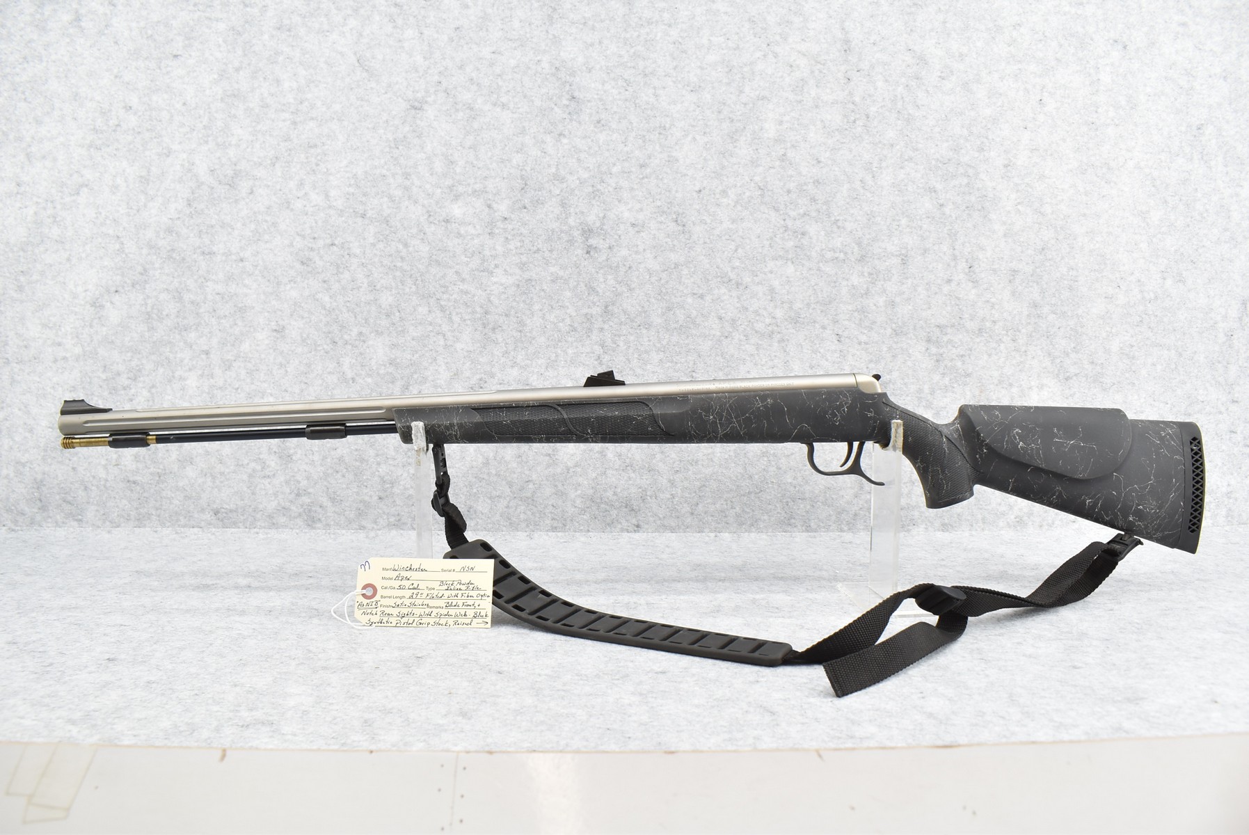 77. Winchester – Mod. Apex – 50 Cal. Black Powder Inline Rifle – w/29” Fluted Barrel w/Fiber Optic Blade Front & Notch Rear Sights – Satin Stainless Finish – w/Spider Web Black Synthetic Pistol Grip Stock w/Raised Cheek Piece w/Factory Butt Pad – As New w/Factory Box, Accessories & Rubber Sling