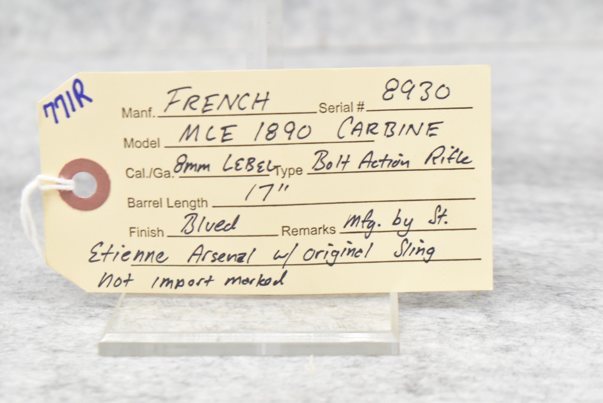 771R. French (St. Etienne Arsenal) – Mod. MLE 190- Carbine – 8mm Lebel Cal. Bolt Action Rifle – w/17” Barrel – Blued Finish – w/Straight Grip Full Wood Stock – w/Original Sling