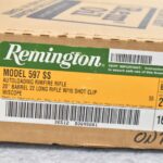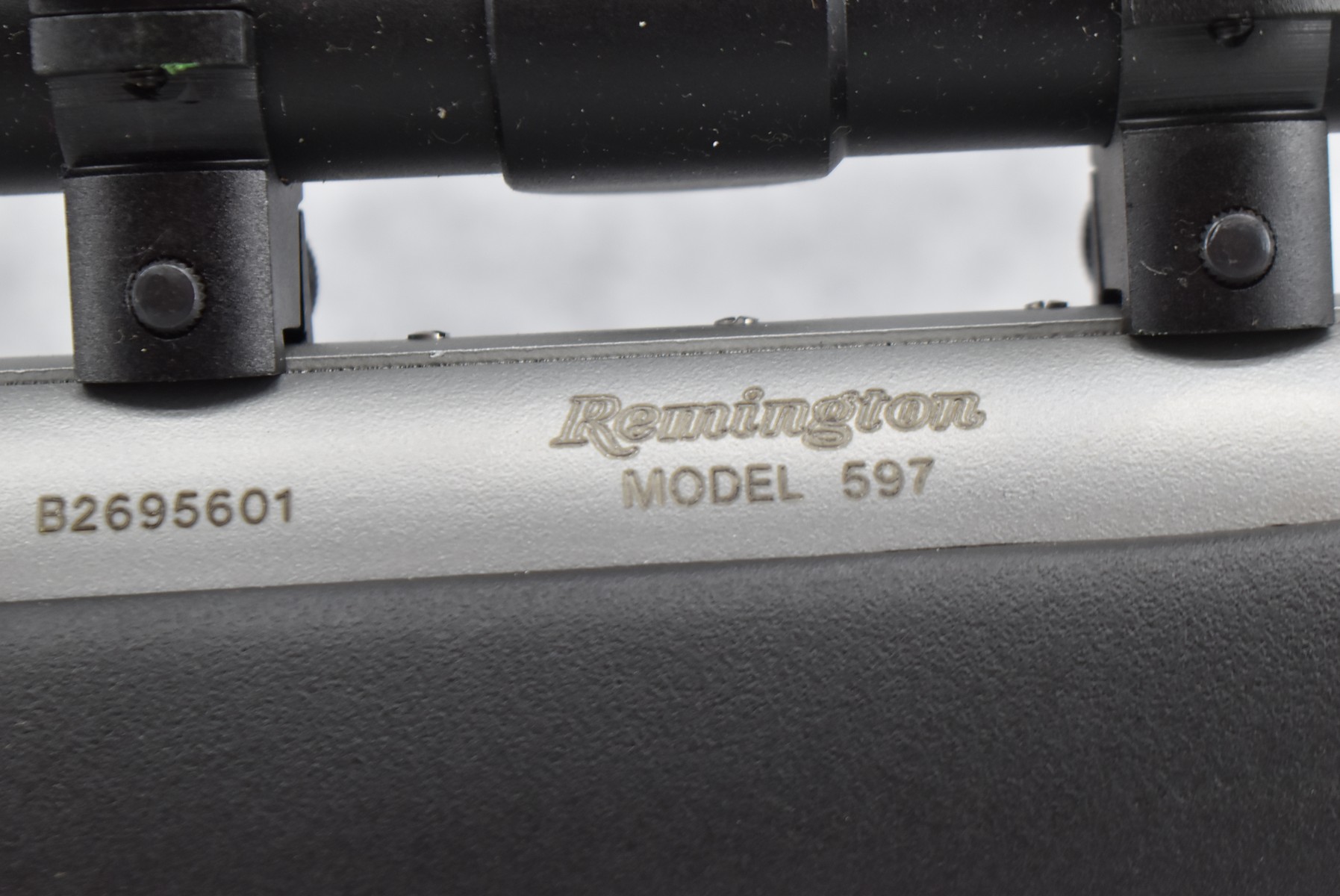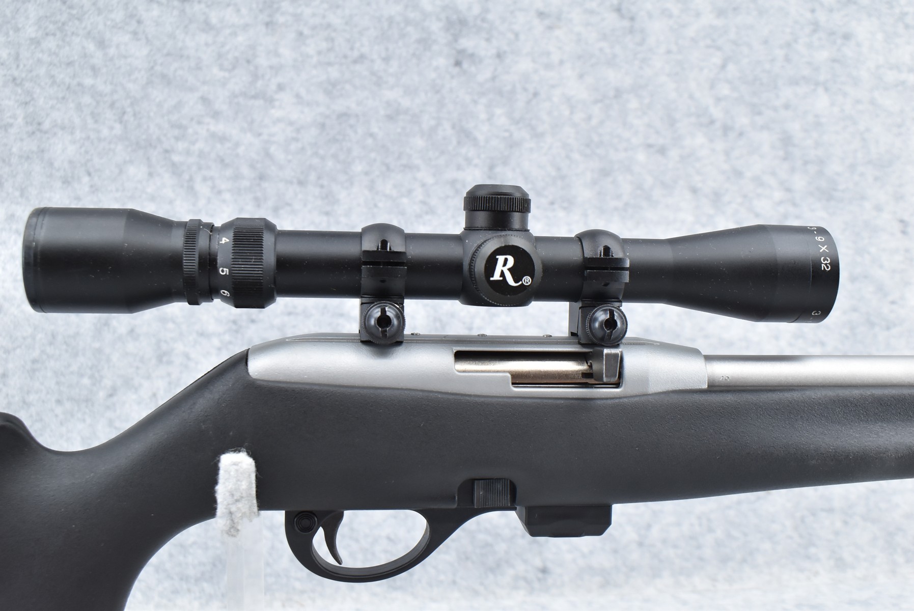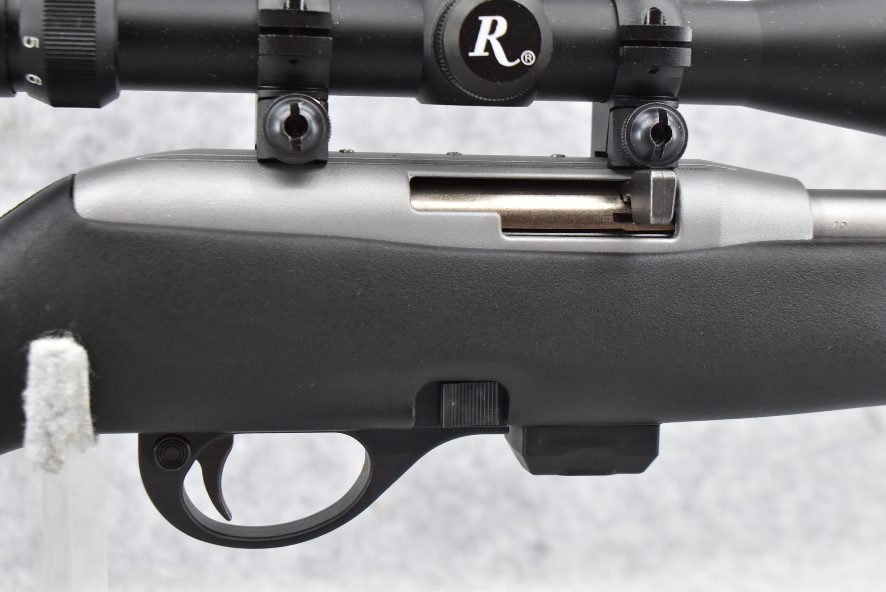 78R. Remington – Mod. 597 – 22LR Cal. Semi-Auto Rifle – w/20” Barrel – Stainless Finish – w/Black Synthetic Pistol Grip Stock w/Factory Butt Plate – w/Factory Remington 3-9×32 Scope – Unfired w/Factory Box, Manual, and Factory Magazine