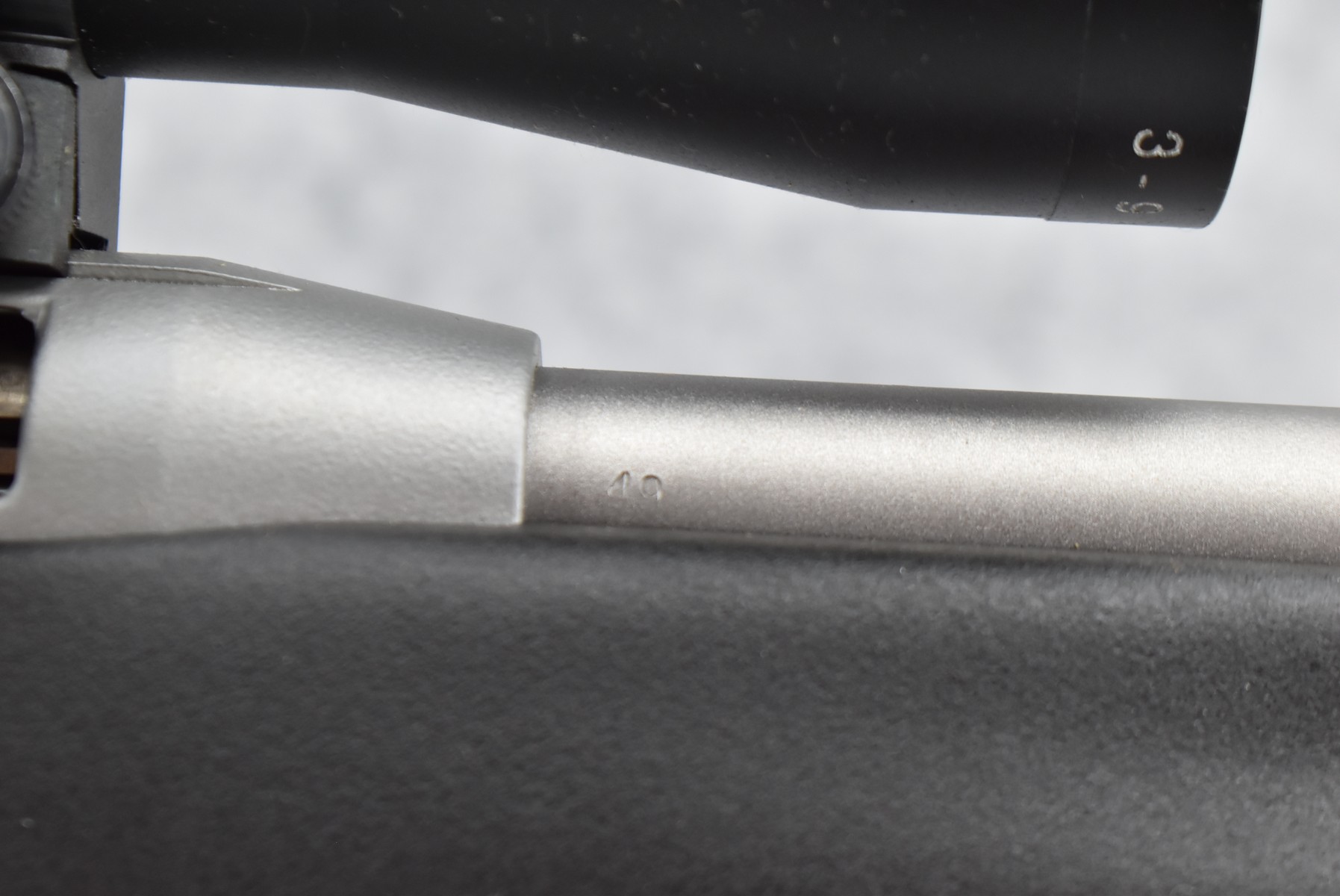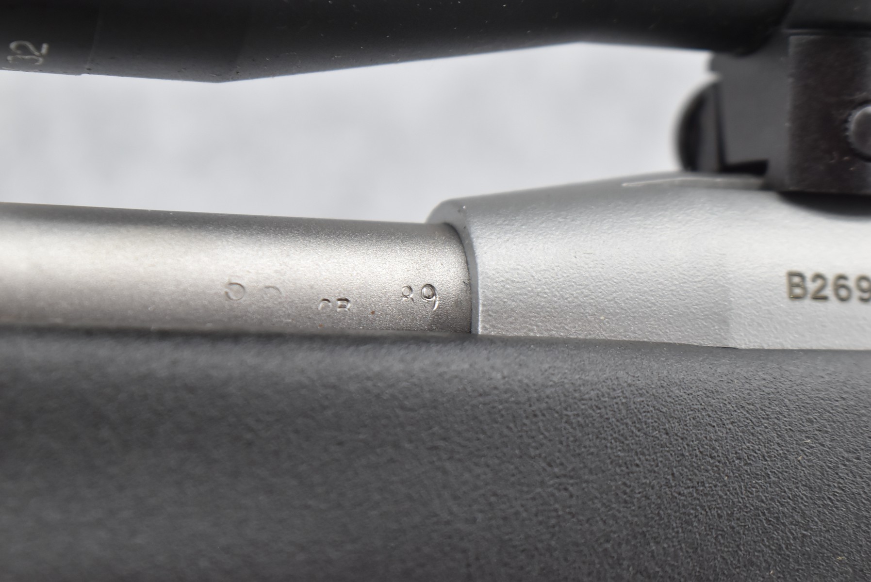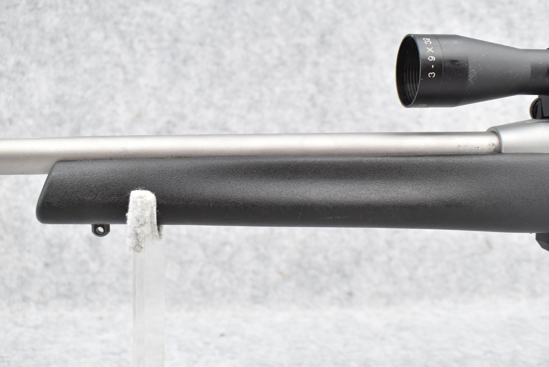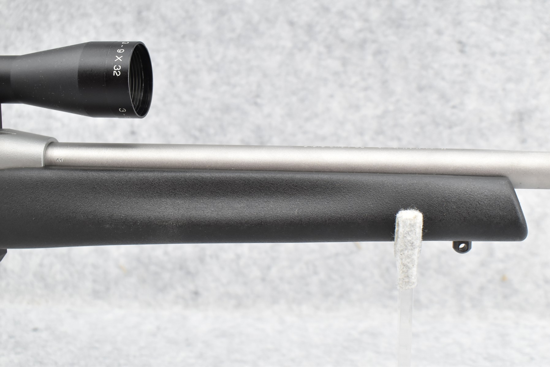 78R. Remington – Mod. 597 – 22LR Cal. Semi-Auto Rifle – w/20” Barrel – Stainless Finish – w/Black Synthetic Pistol Grip Stock w/Factory Butt Plate – w/Factory Remington 3-9×32 Scope – Unfired w/Factory Box, Manual, and Factory Magazine