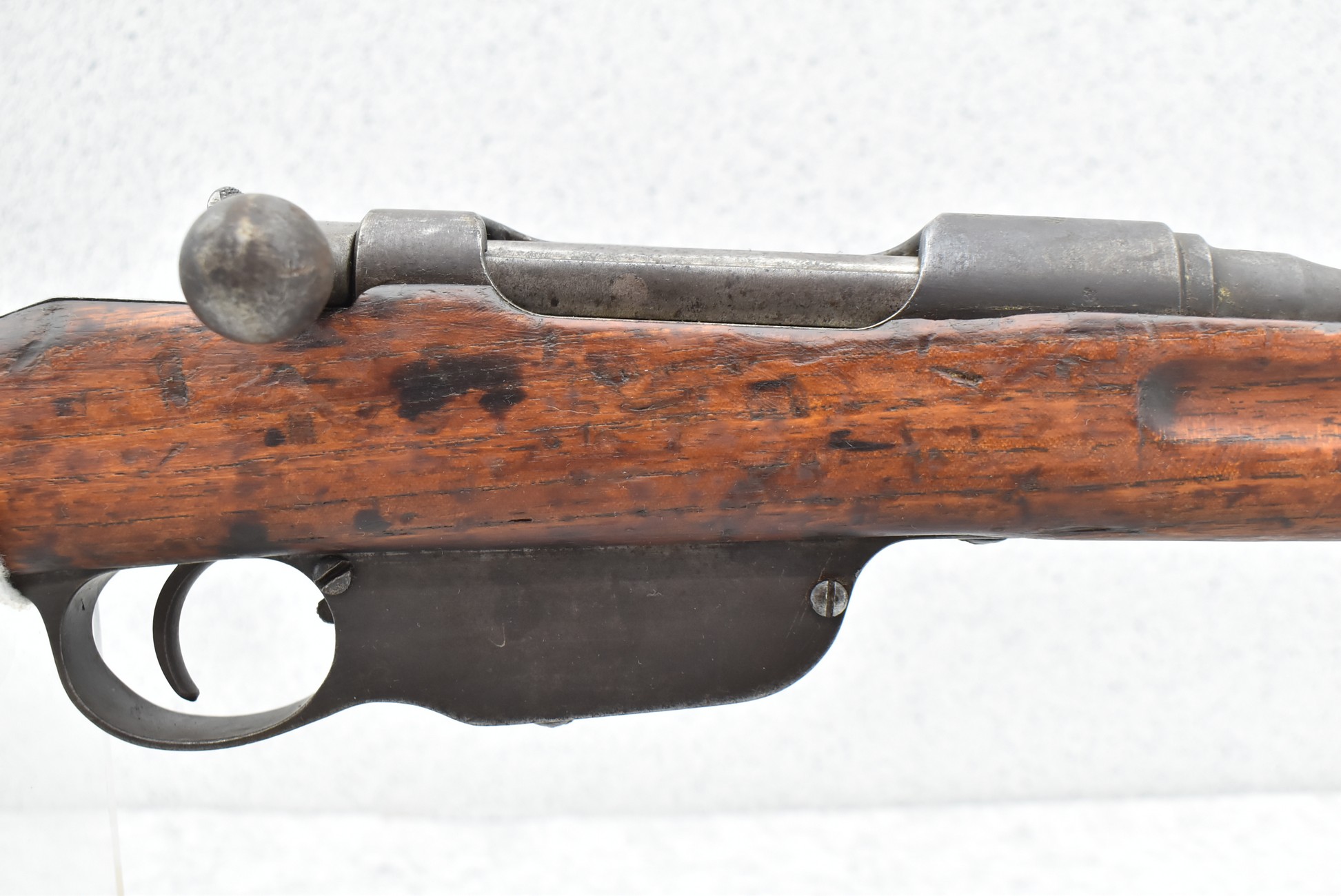 793. Steyr – Mannlicher Mod. 1895 – 8x50mmR Mannlicher Cal. Straight Pull Bolt Action Rifle – w/30” Barrel w/Front Blade & Rear Adj. Ladder Sights – Blued Brown Finish – w/Full Pistol Grip Wood Stock w/Metal Butt Plate – “CAS” on Stock – Stock # Matches to Gun #