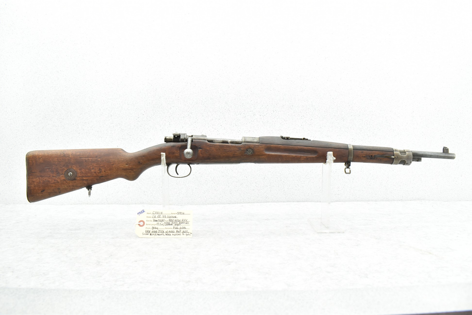 795R. Czech – Mod. CZ VZ-33 Carbine – 8mm Mauser Cal. Bolt Action Rifle – w/19.3” Barrel w/Front Blade & Rear Adj. Ladder Sights – Military Finish – w/Full Pistol Grip Wood Stock w/Metal Butt Plate – w/Sling Ring & Swivels – Stock # Matches to Gun #– w/Prominent Lion Crest – Only 25,300 Mfg. Between 1934-1939