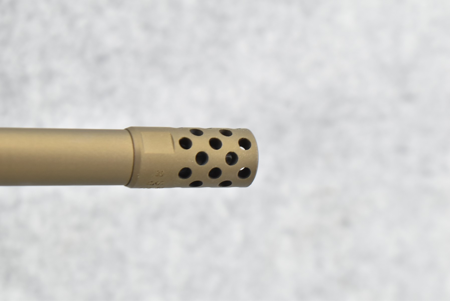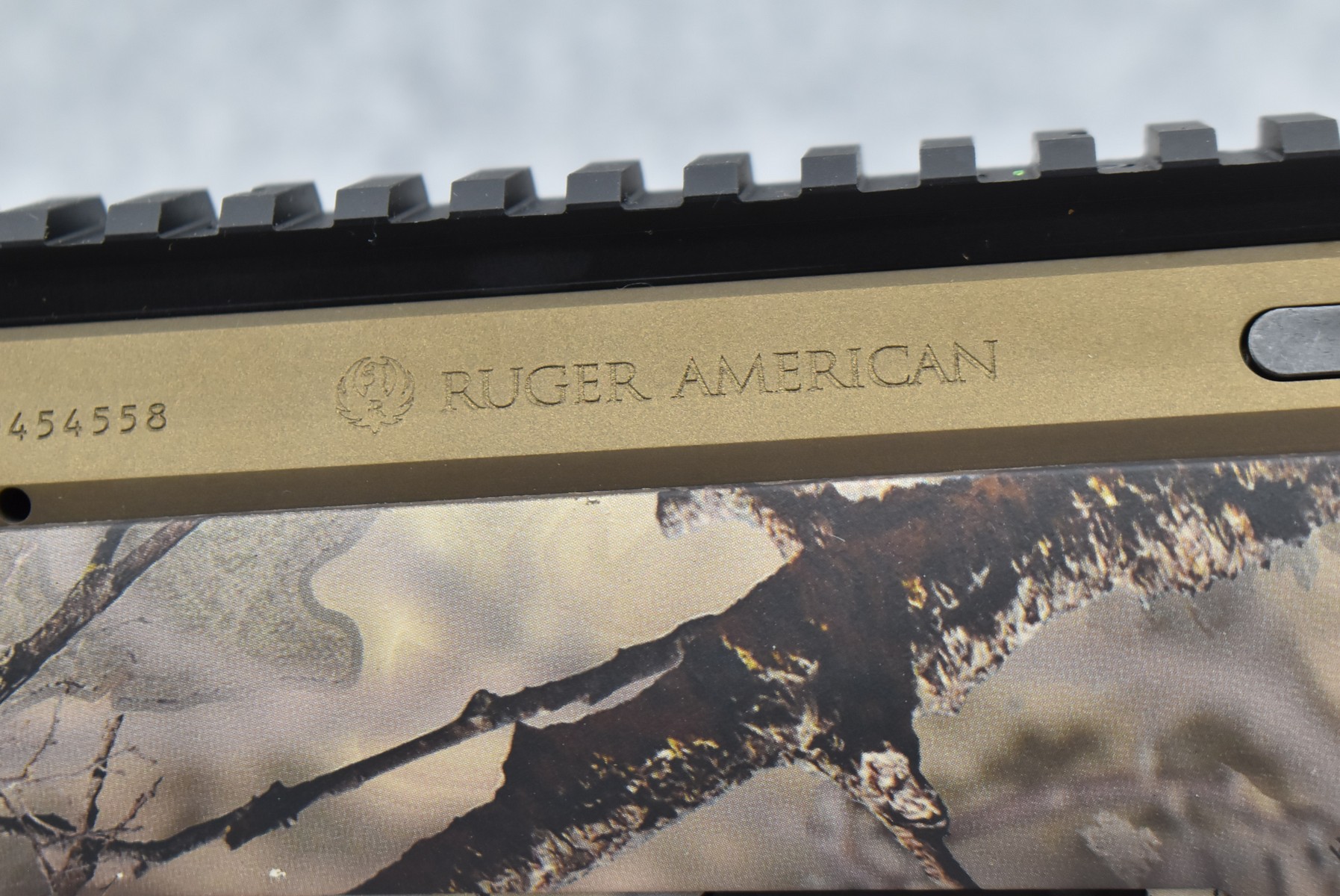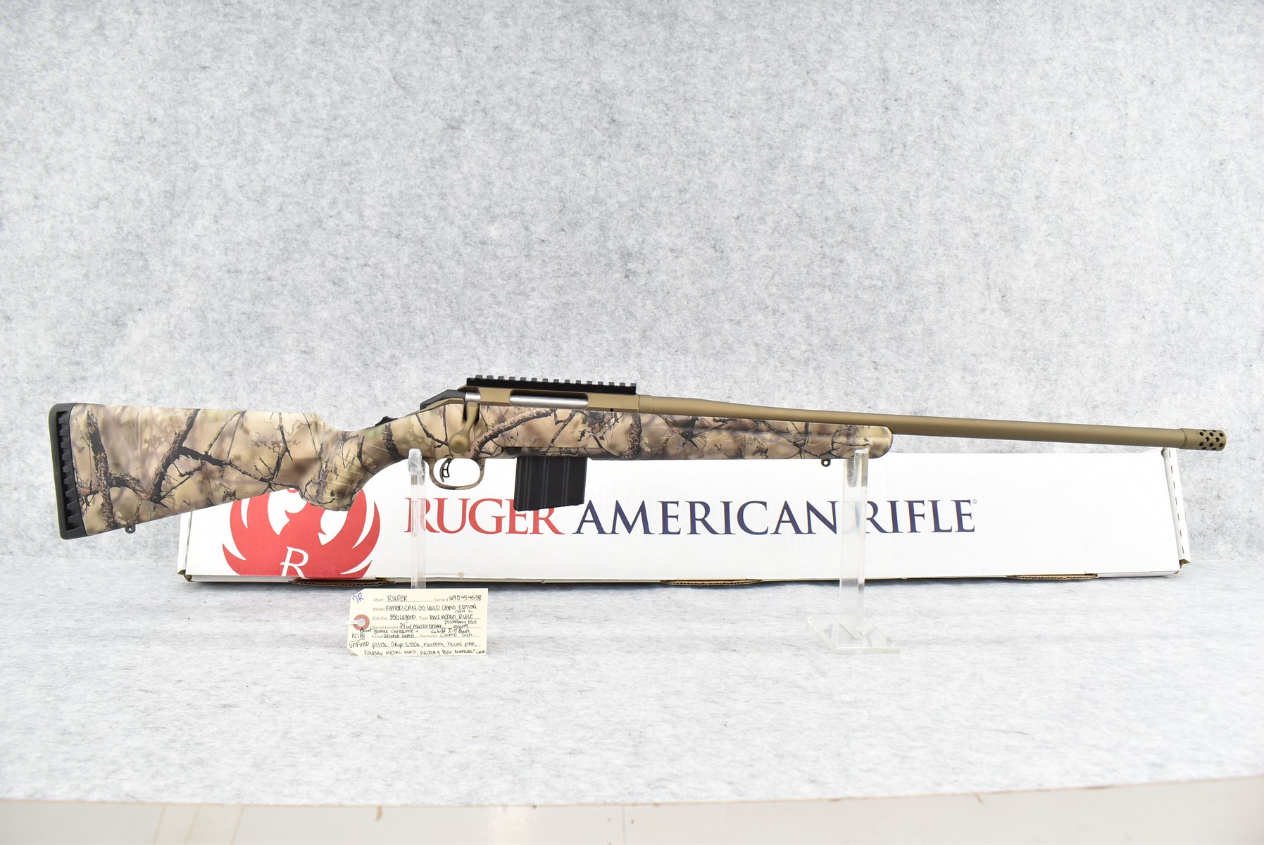 7R. Ruger – Mod. American – 350 Legend Cal. Bolt Action Rifle – w/24” Barrel w/Muzzle Break and Picatinny Scope Rail – Burnt Bronze Cerakote Camoed Finish – w/Capped Synthetic Pistol Grip Go Wild 1-M Brush Stock w/Factory Recoil Pad – Unfired w/Factory Box, Manual, Lock, and Factory Magazine