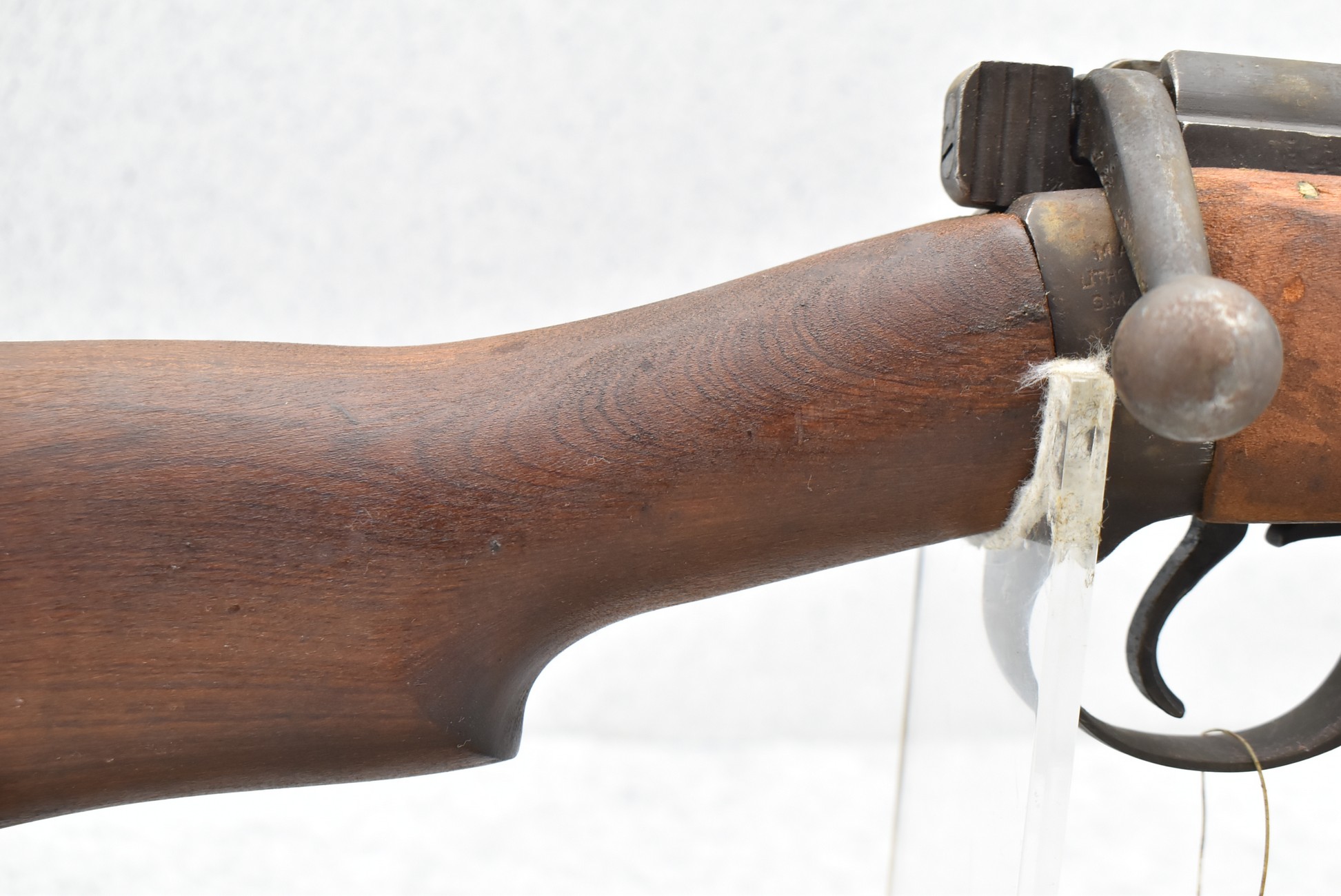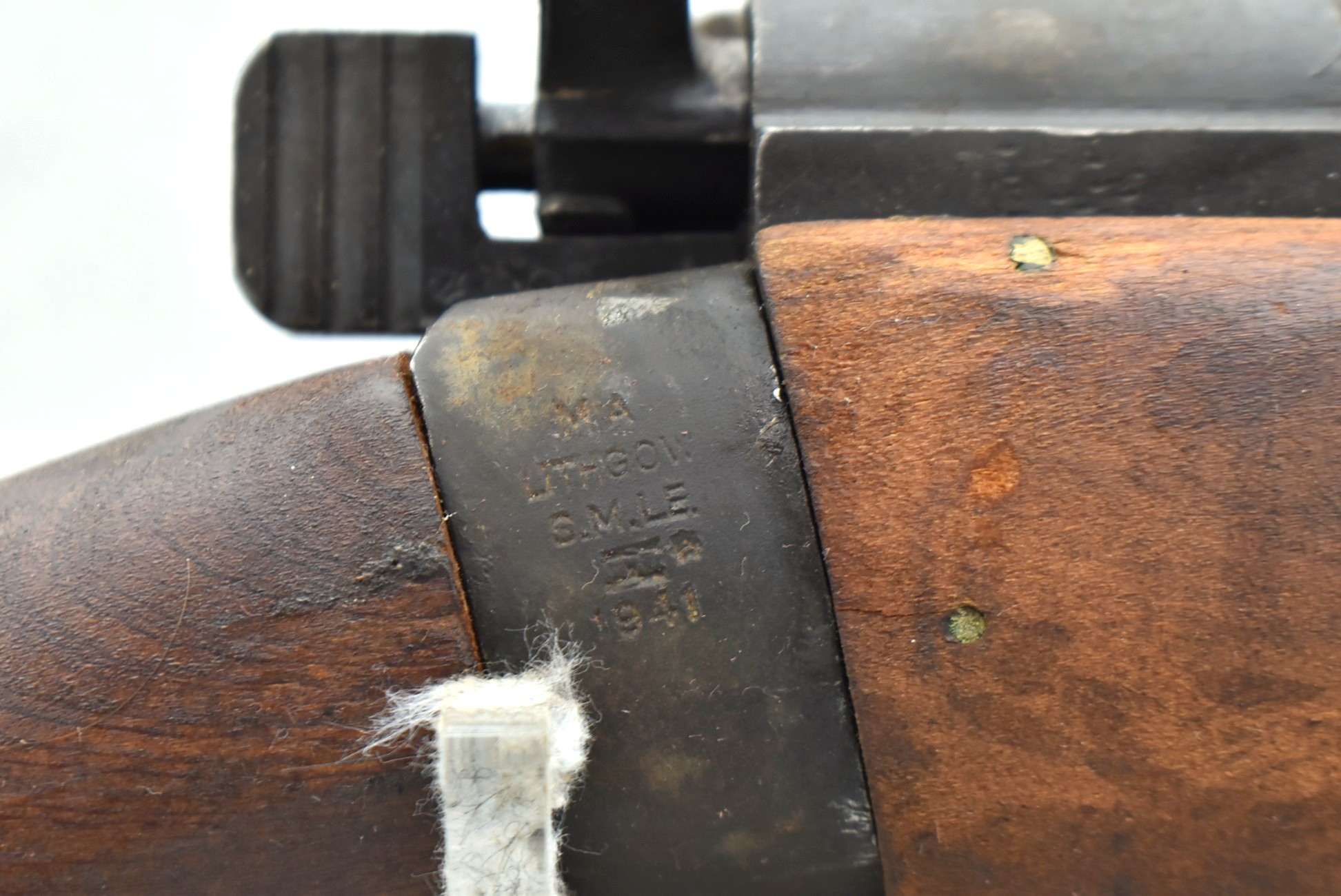 808R. M.A. Lithgow – Mod. No. 1 MK II – 303 Brit. Cal. Bolt Action Rifle – w/25 ¼” Barrel w/Blade Front & Adj. Rear Ladder Sights – Military Finish – w/Pistol Grip Full Wood Military Stock w/Metal Butt Plate w/Trap Door – w/Detachable Magazine – w/Sling – Dated 1941