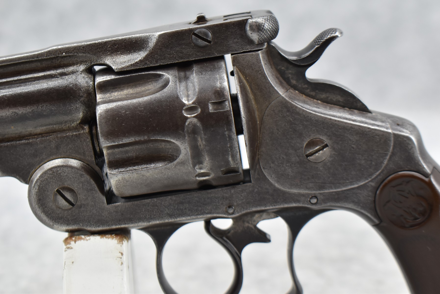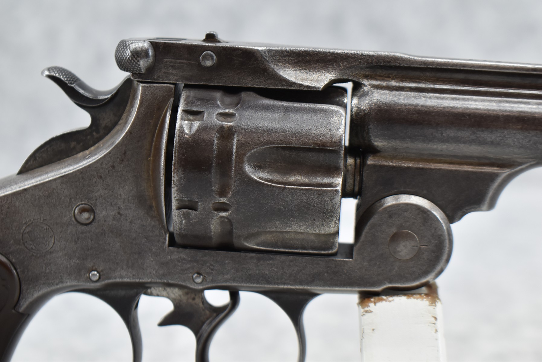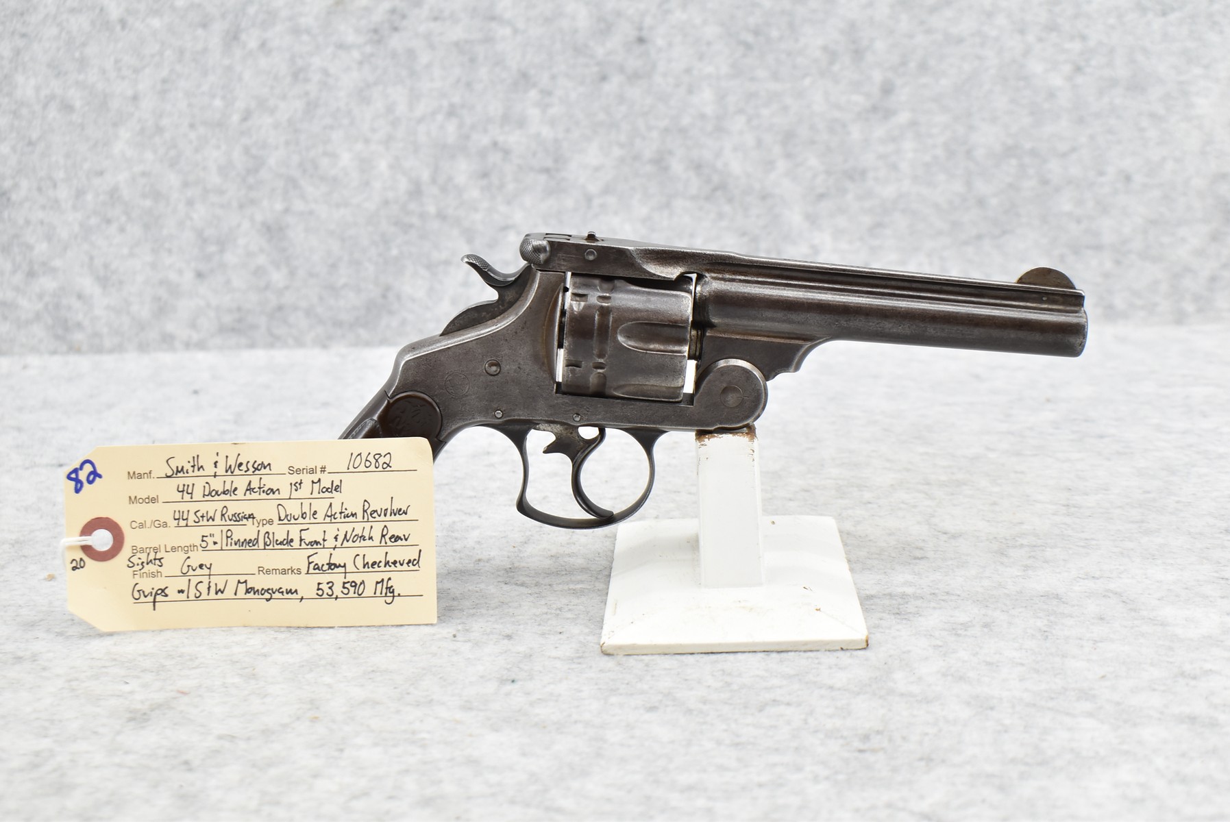 82. Smith & Wesson – Mod. 44 Double Action 1st Model – 44 S&W Russian Cal. Double Action Revolver – w/5” Barrel w/Pinned Blade Front & Notch Rear Sights – Gray Finish – w/Factory Checkered Grips w/S&W Monogram – 53,590 Mfg. – Serial #10682