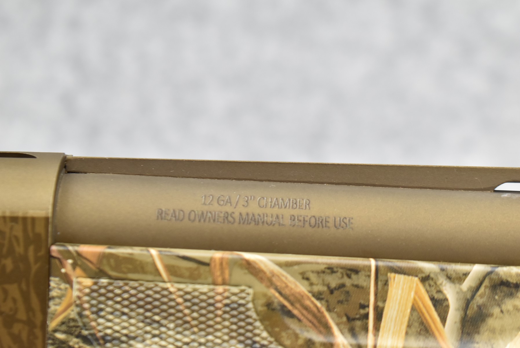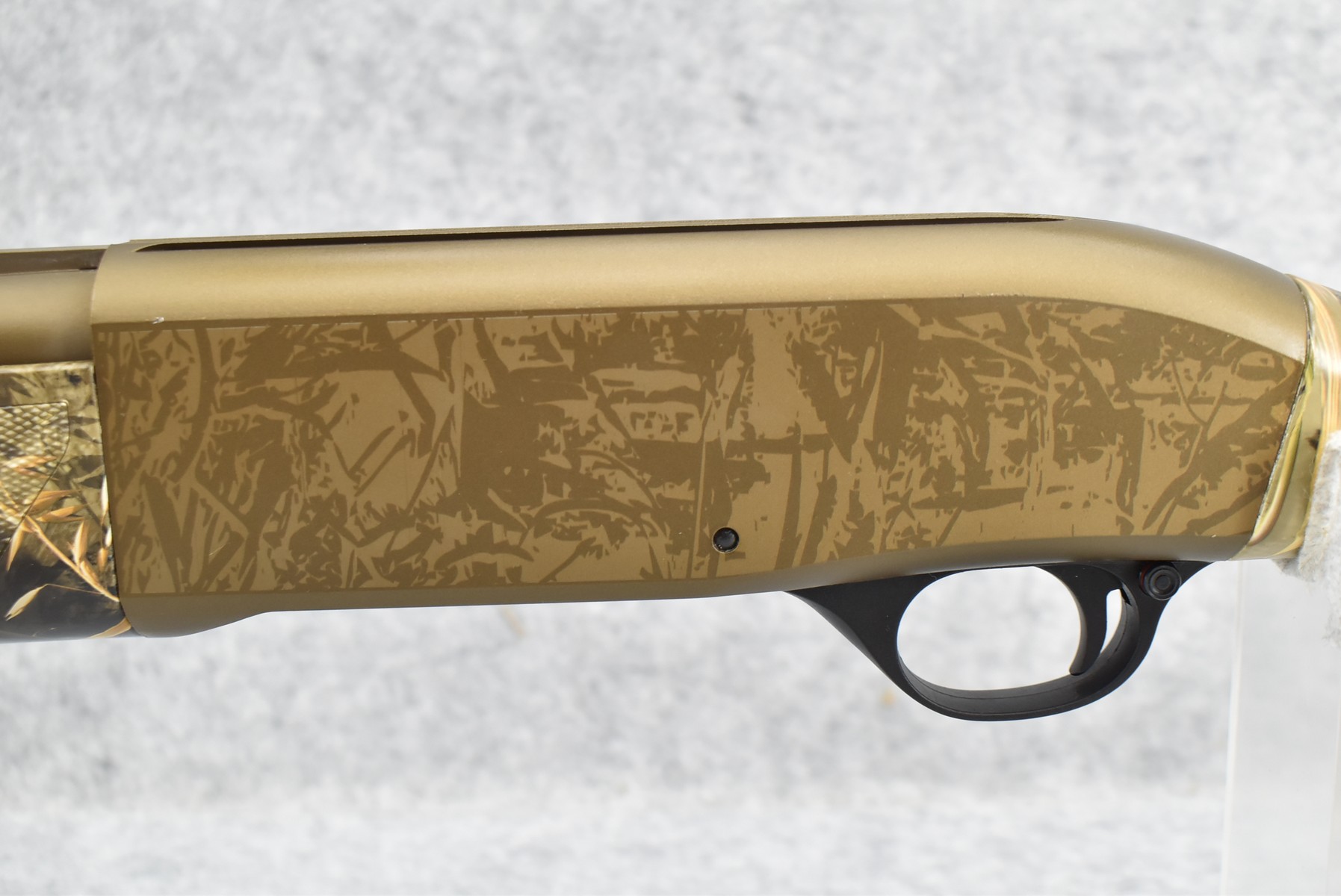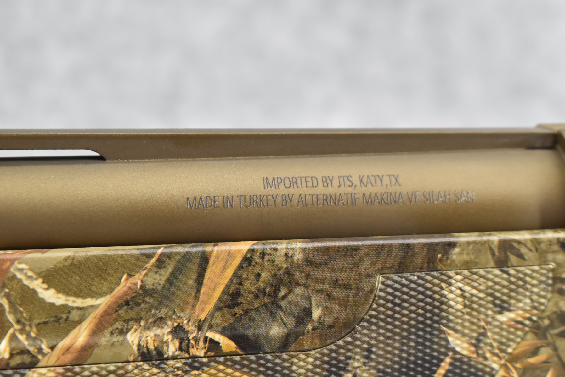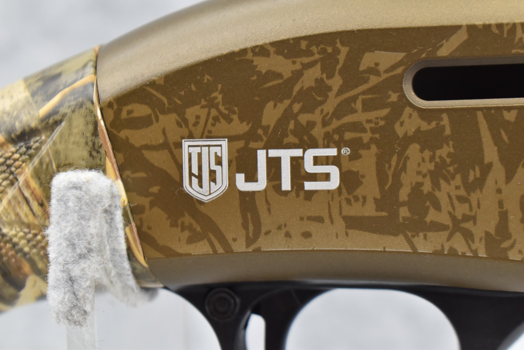 82R. J.T.S. – Mod. EG200 – 12ga. 3” Semi-Auto Shotgun – w/28” Vent Rib Barrel w/Fiber Optic Bead Sight – Cerakote Bronze Realtree Max 5 Finish – w/Camoed Synthetic Checkered Pistol Grip Stock and Forearm w/Factory Black Rubber Butt Pad – Unfired w/Factory Box, Manuals, and Chokes
