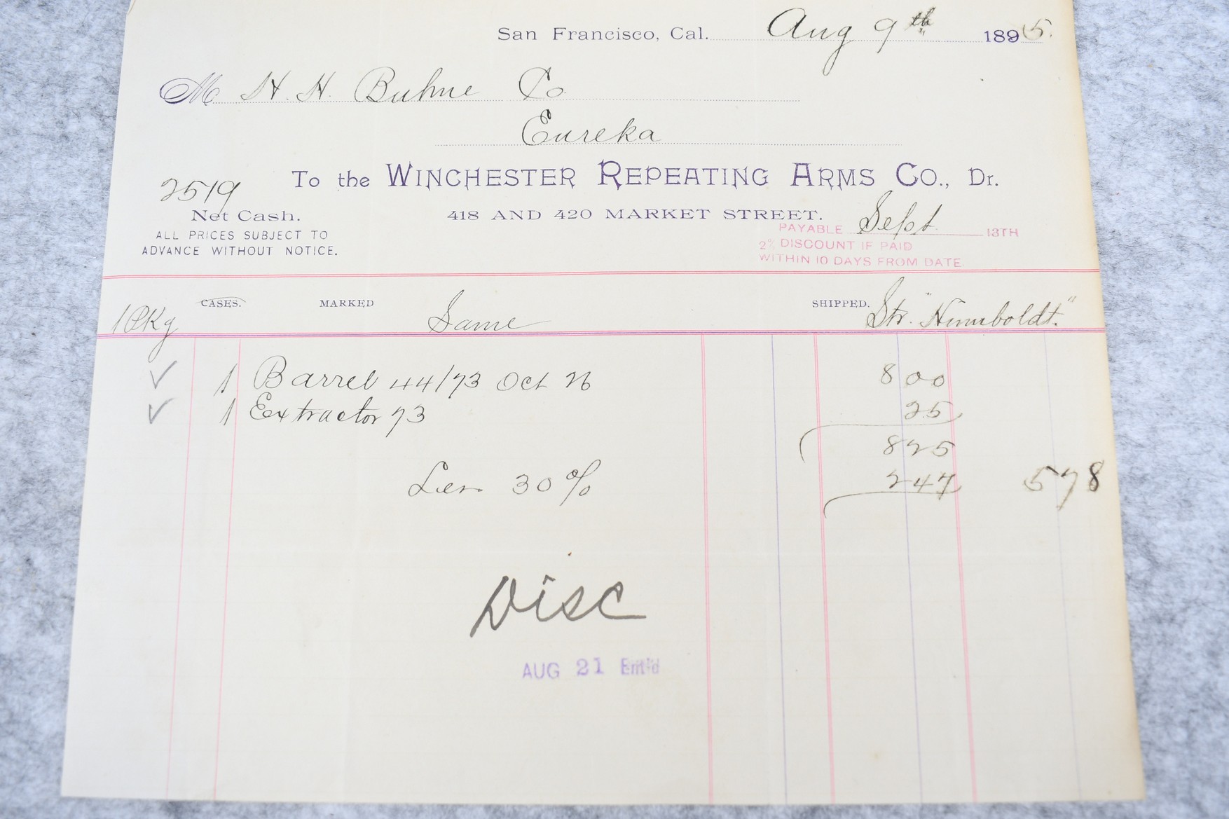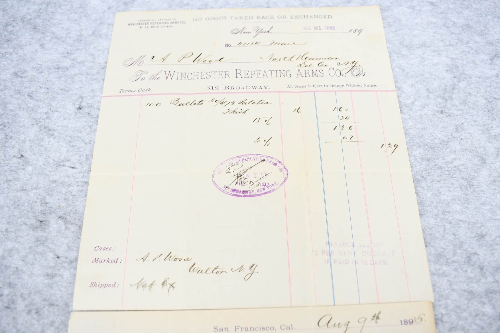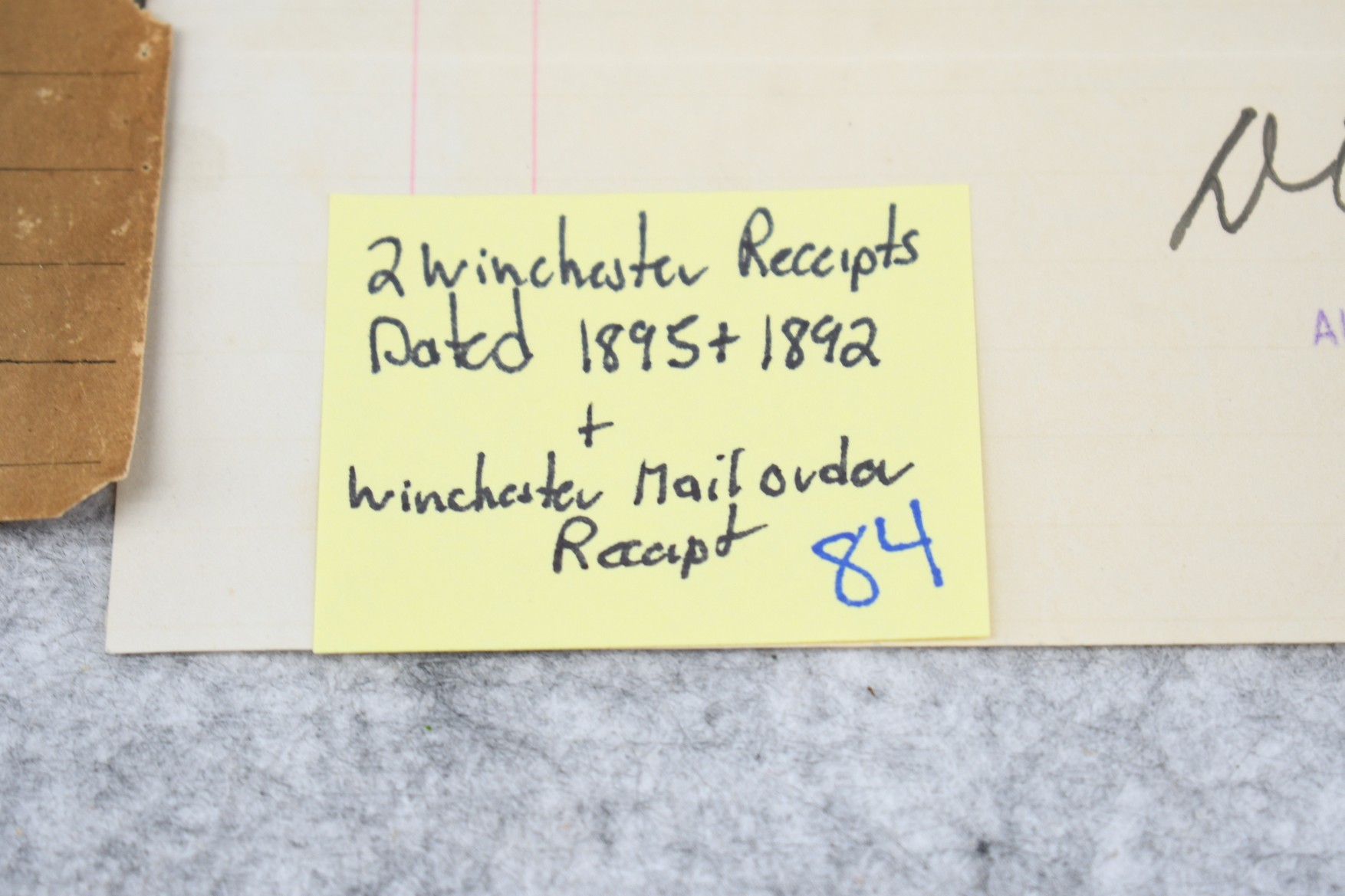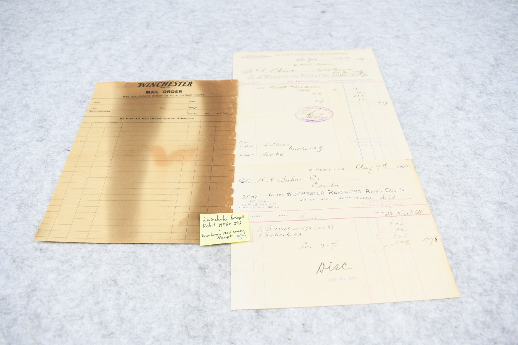 84. Grouping of 2 Winchester Receipts, Dated 1895 & 1892 & Winchester Mail Order Receipt