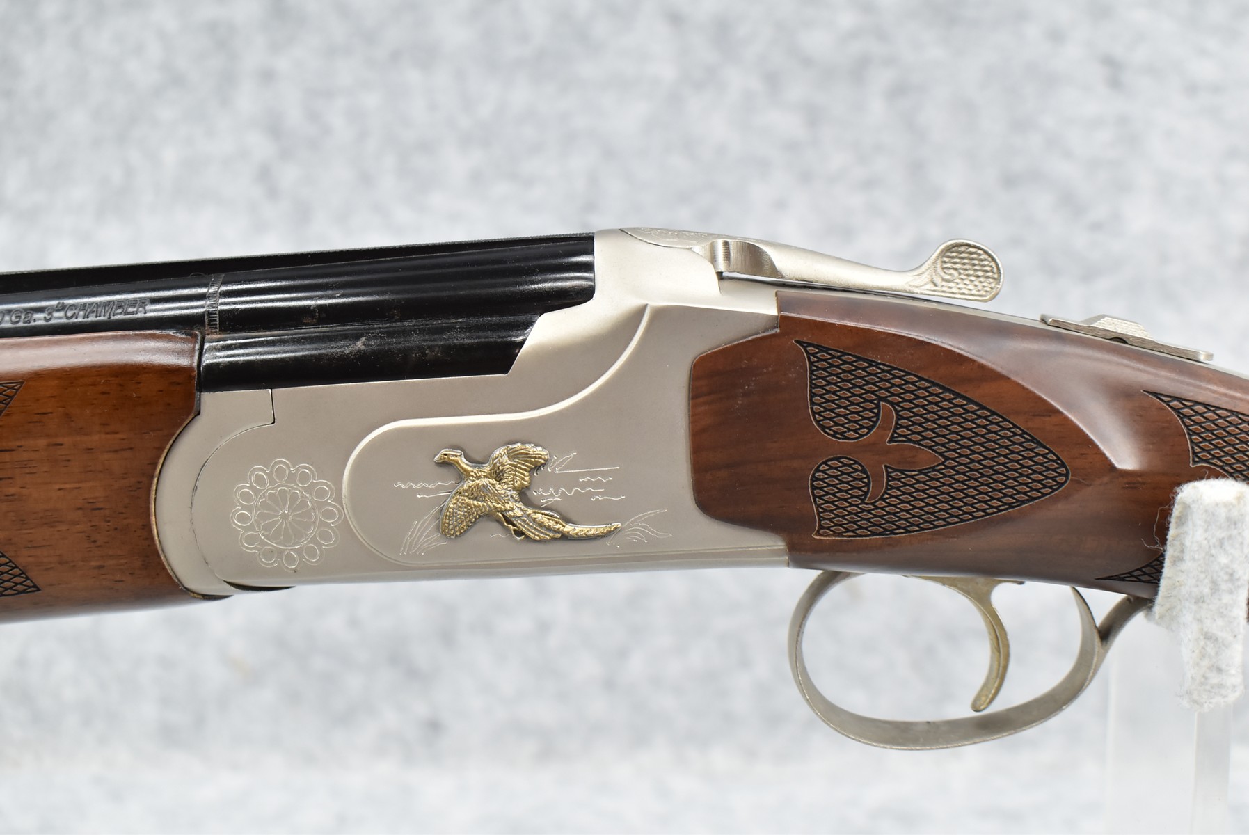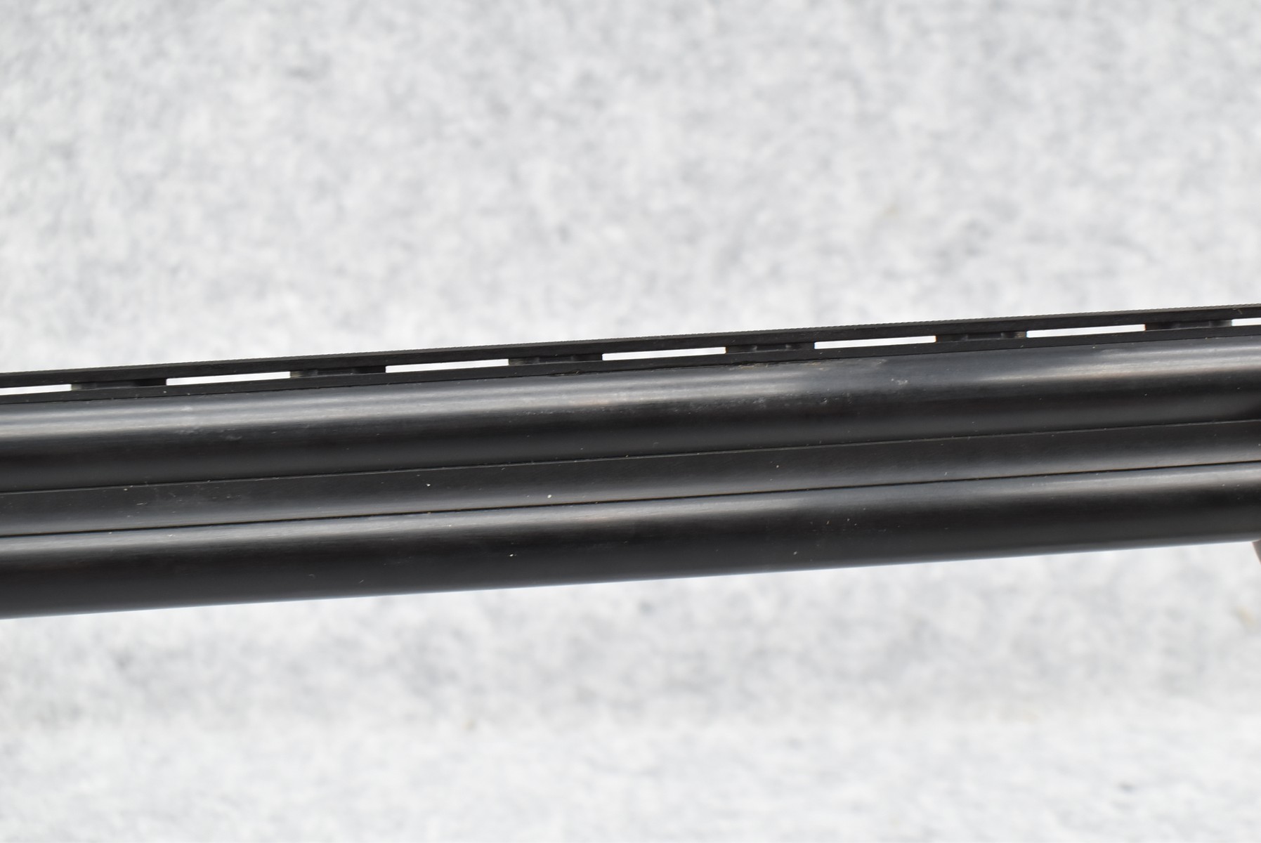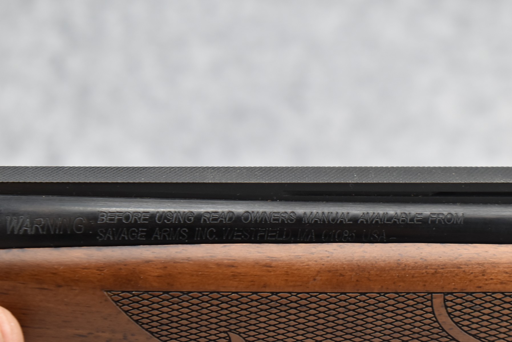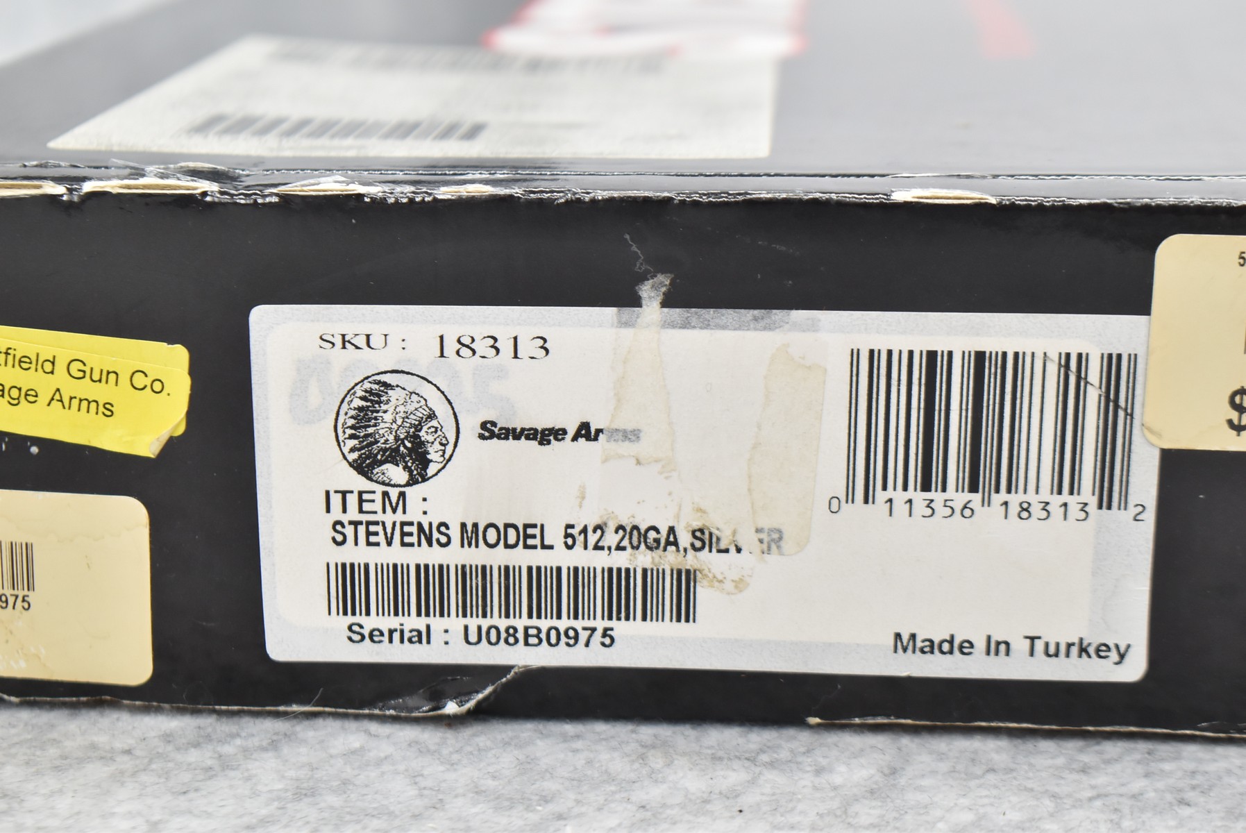 88R.       Savage-Stevens – Mod. 512 – 20ga. 3” Over/Under Shotgun – w/26” Over/Under Interchangeable Choke Vent Rib Barrels w/Bead Sight – Blued/Satin Stainless Finish – w/Deluxe Checkered Pistol Grip Wood Stock and Forearm w/Factory Black Rubber Butt Pad – w/Single Select Trigger – w/As New w/Box, Manual, and Chokes