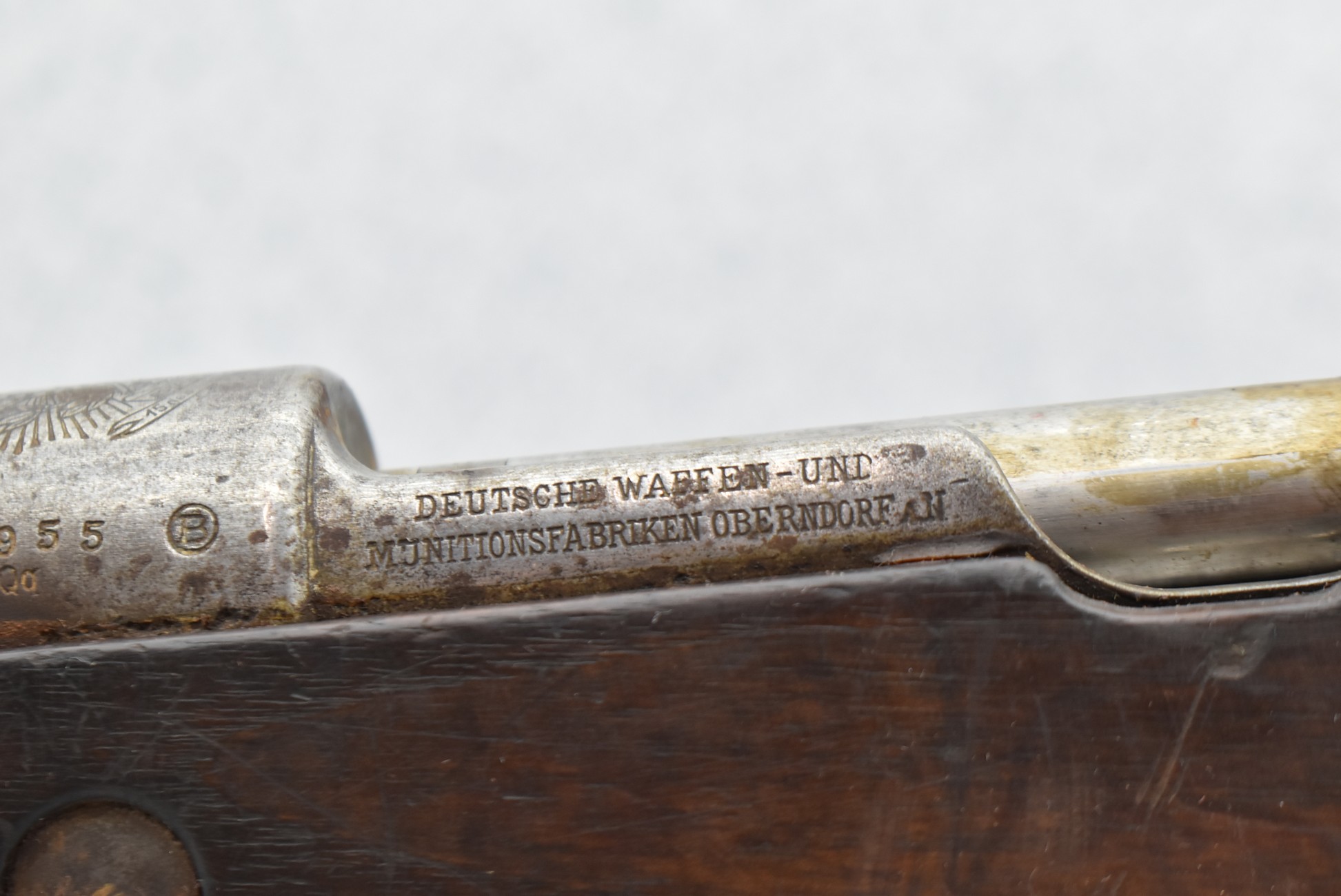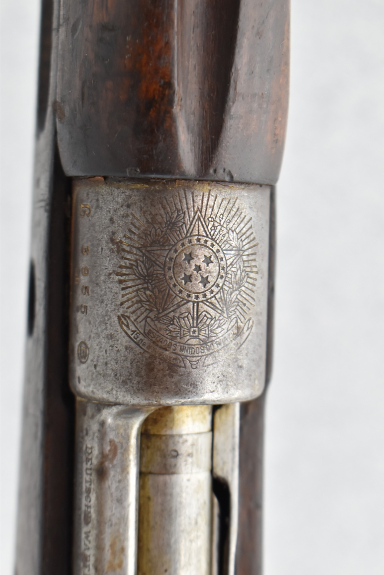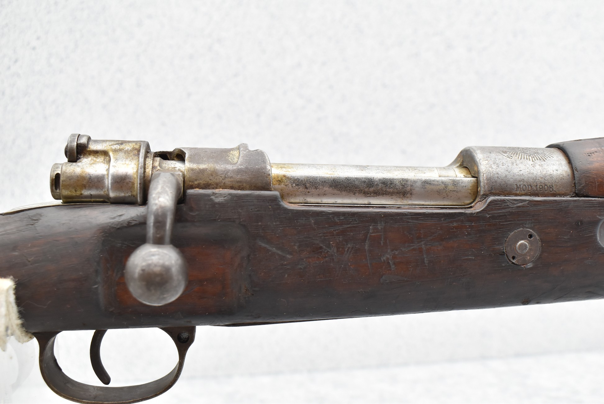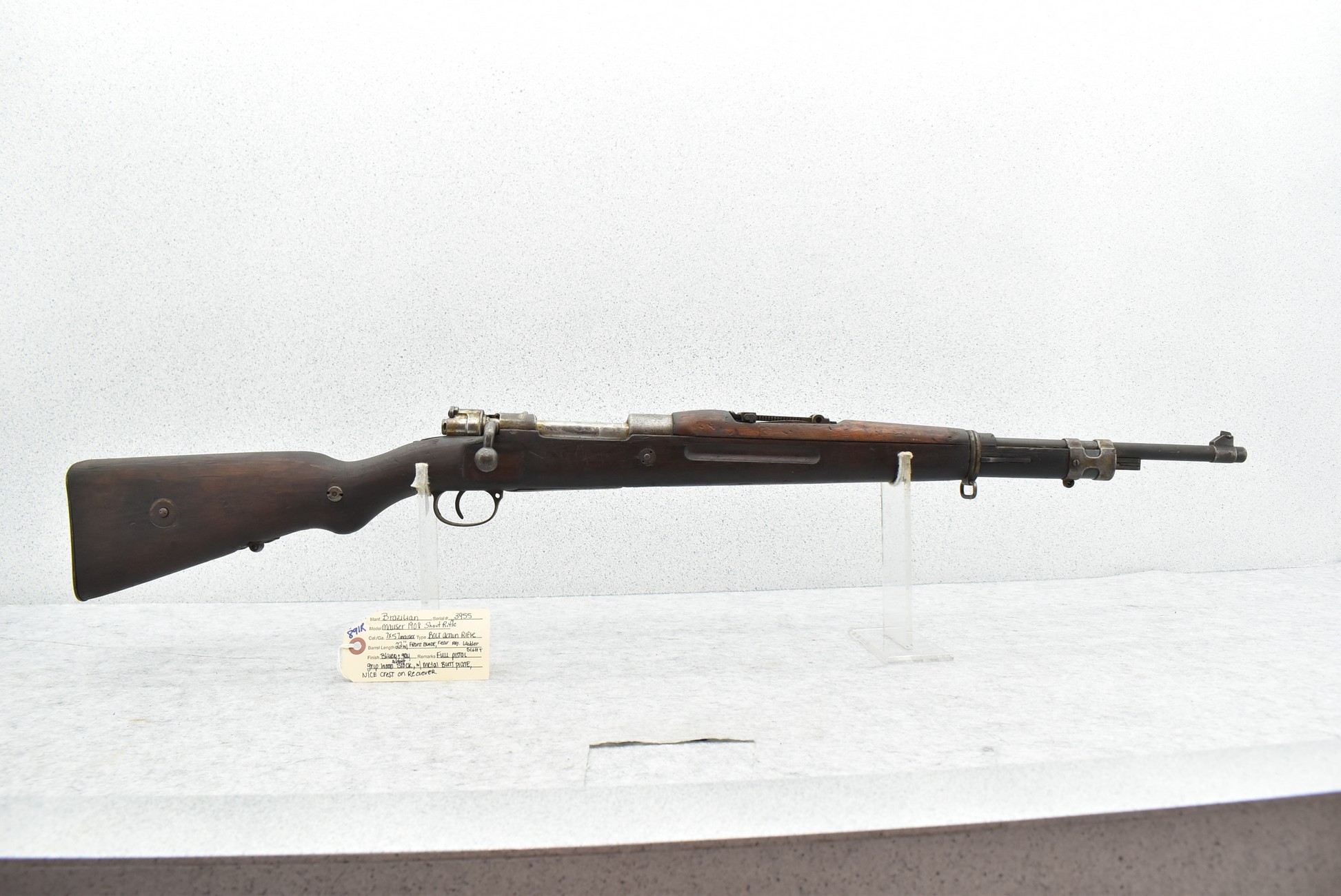 891R. Brazilian – Mod. Mauser 1908 Short Rifle – 7×57 Mauser Cal. Bolt Action Rifle – w/22” Barrel w/Front Blade & Rear Adj. Ladder Sights – Blued/Gray Finish – w/Full Pistol Grip Wood Military Stock w/Metal Butt Plate
