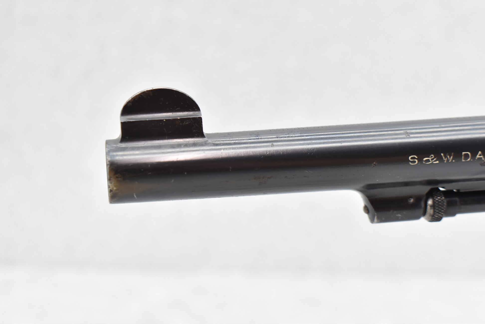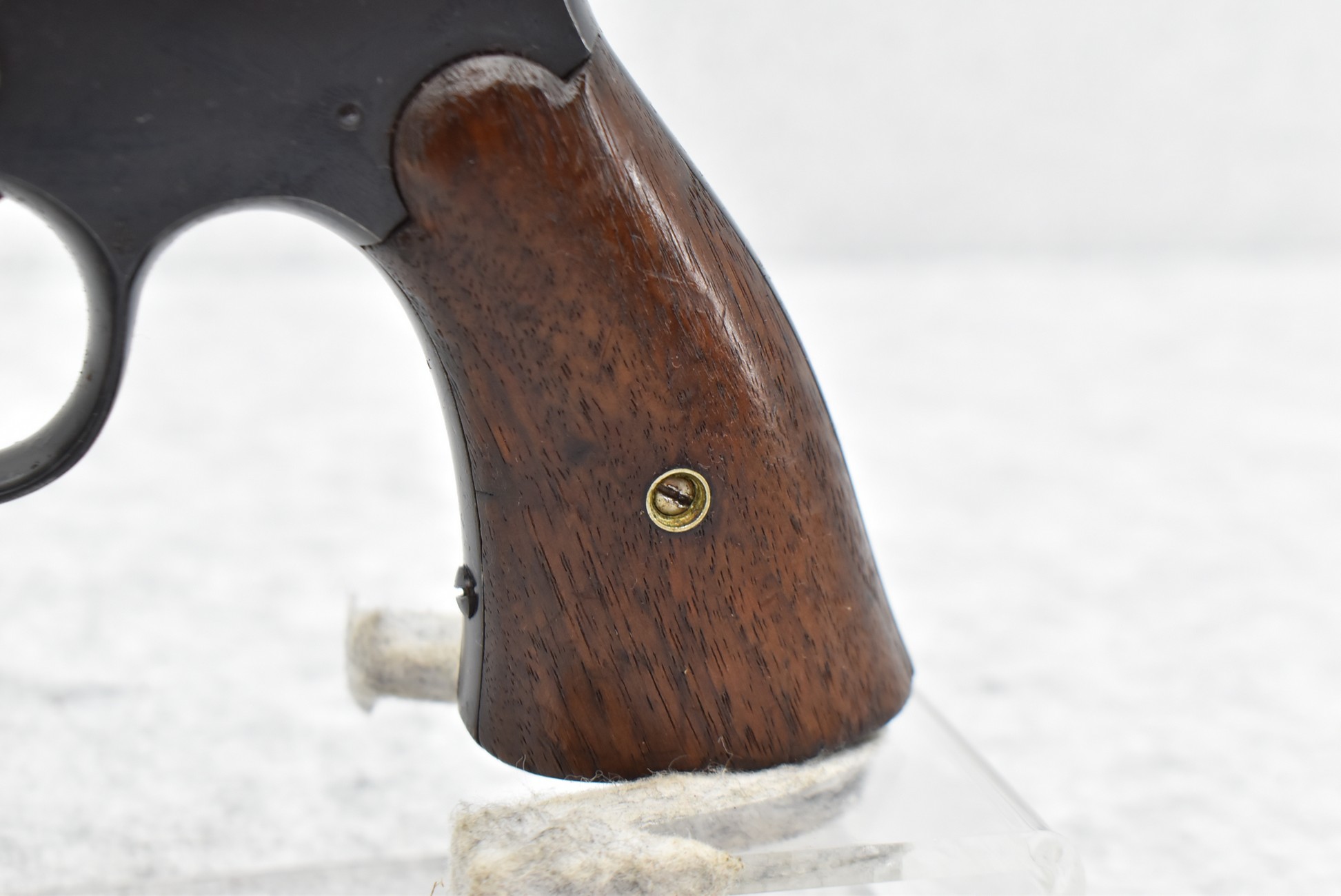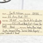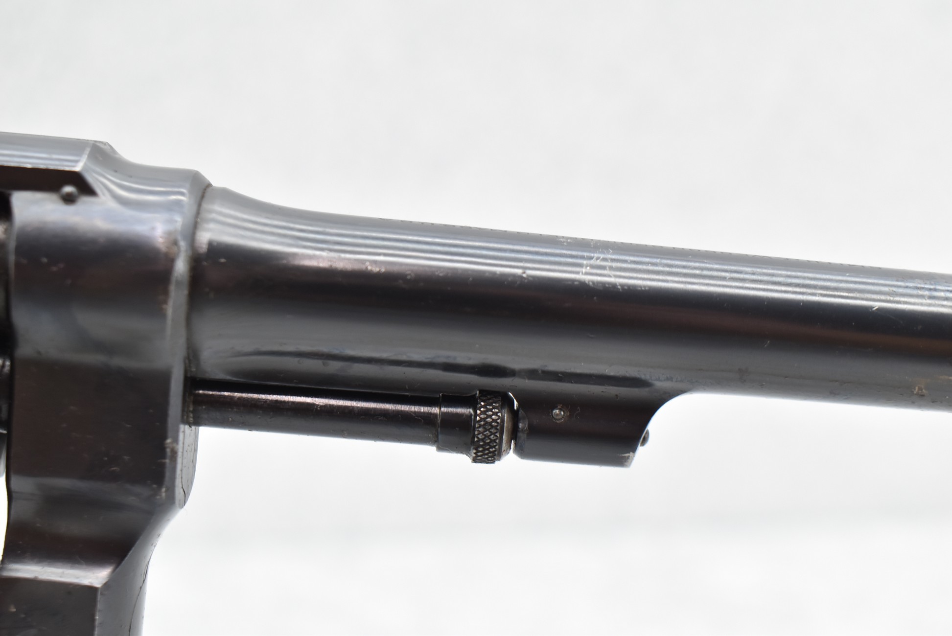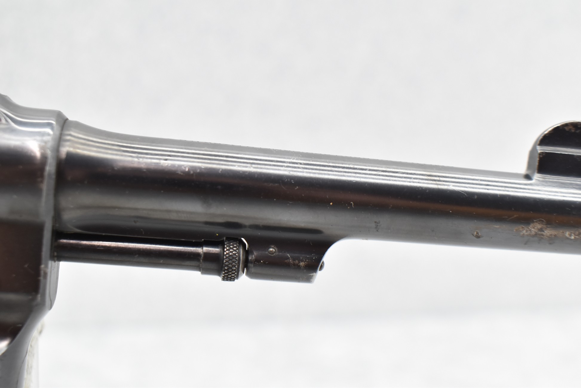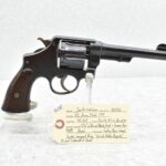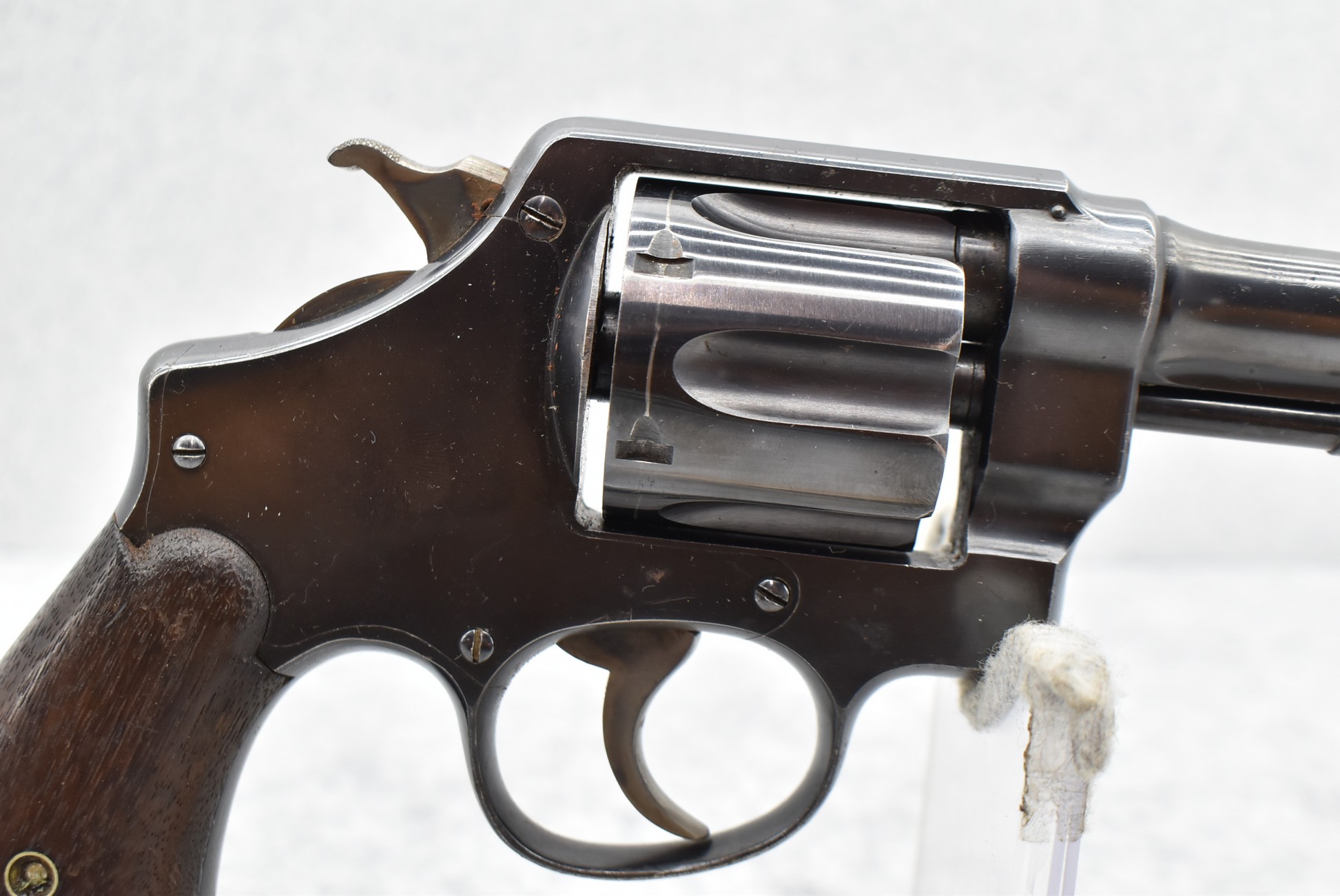 910R. Smith & Wesson – U.S. Army Model 1917 – 45 ACP Cal. Double Action Revolver – w/5 ½” Barrel w/Round Blade Front & Groove Rear Sights – Blued Finish – w/Factory Plain Wood Grips – w/Lanyard Ring – “United States Property” Marked Underside of Barrel