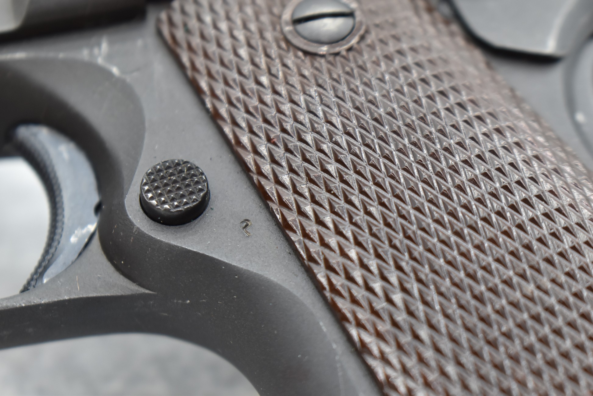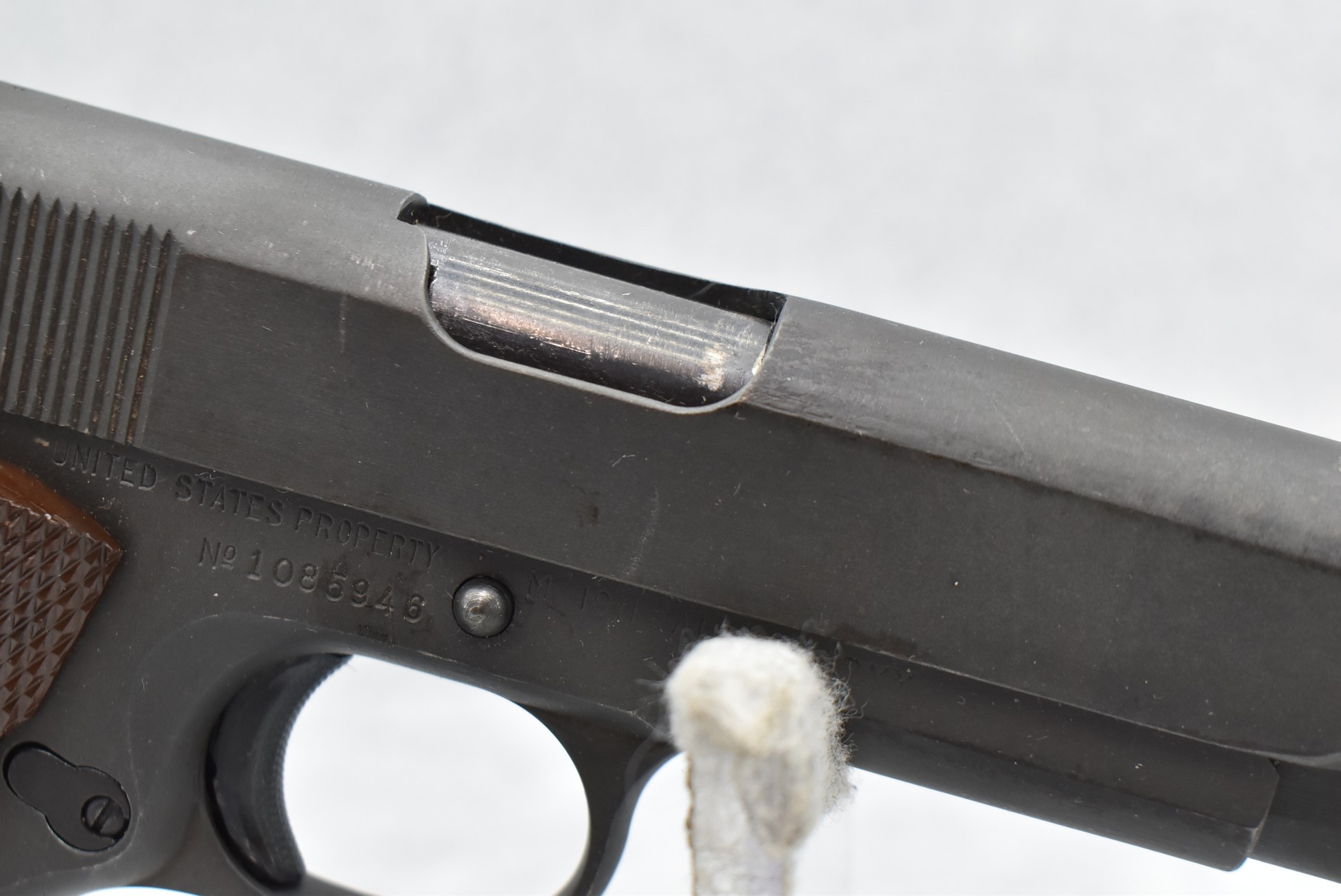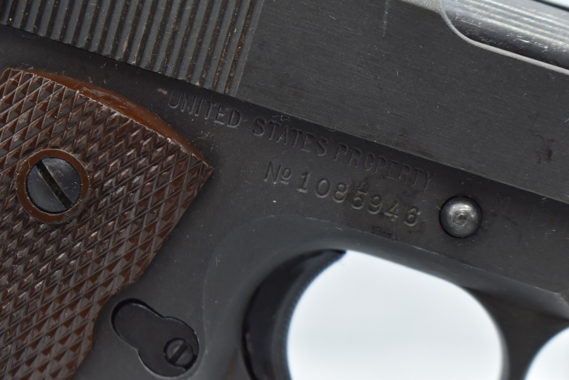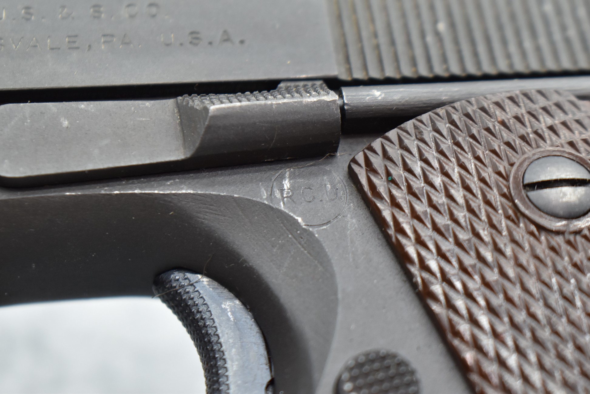 915R. Union Switch & Signal Co. – Mod. 1911 A1 U.S. Army Type III – 45 Auto Cal. Semi-Auto Pistol – w/5” Barrel w/Front & Rear Sights – Du-Lite Finish – w/Factory Checkered Brown Plastic Grips – w/Magazine – w/Lanyard Ring – Only 55,000 U.S. & S 1911 A1’s Were Delivered in 1943!