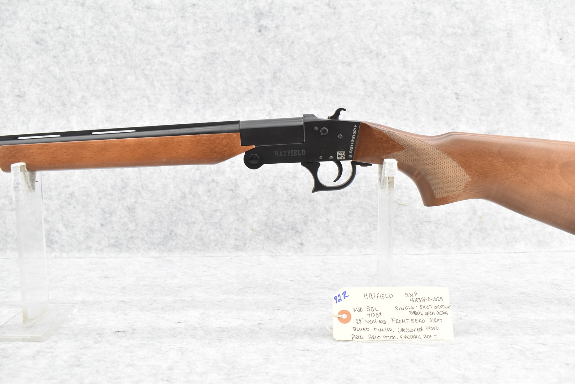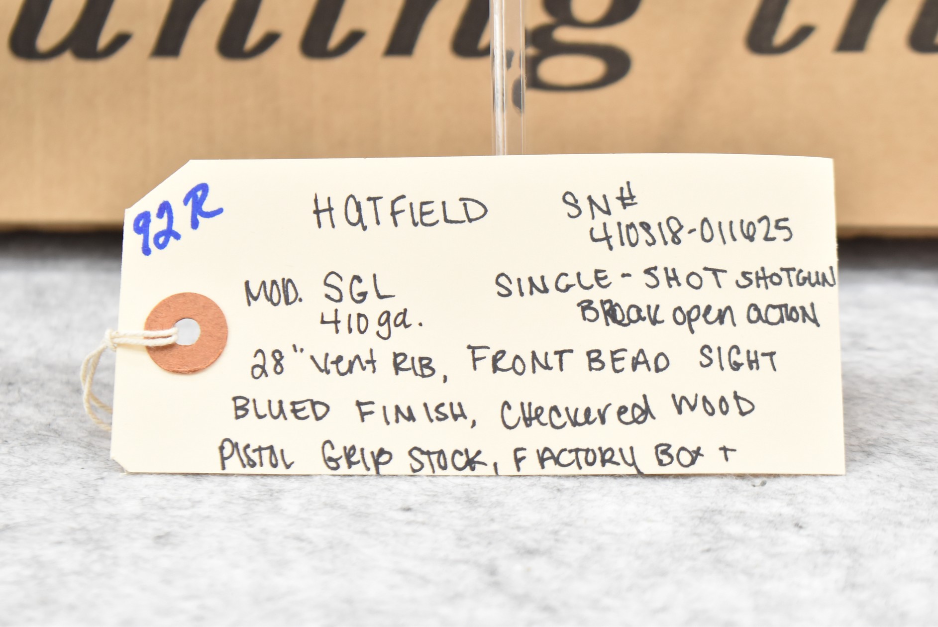 92R. Hatfield – Mod. SGL – 410ga. Single Shot Shotgun – w/28” Vent-Rib Barrel w/Front Bead Sight – Blued Finish – w/Checkered Wood Pistol Grip Stock – As New w/Factory Box