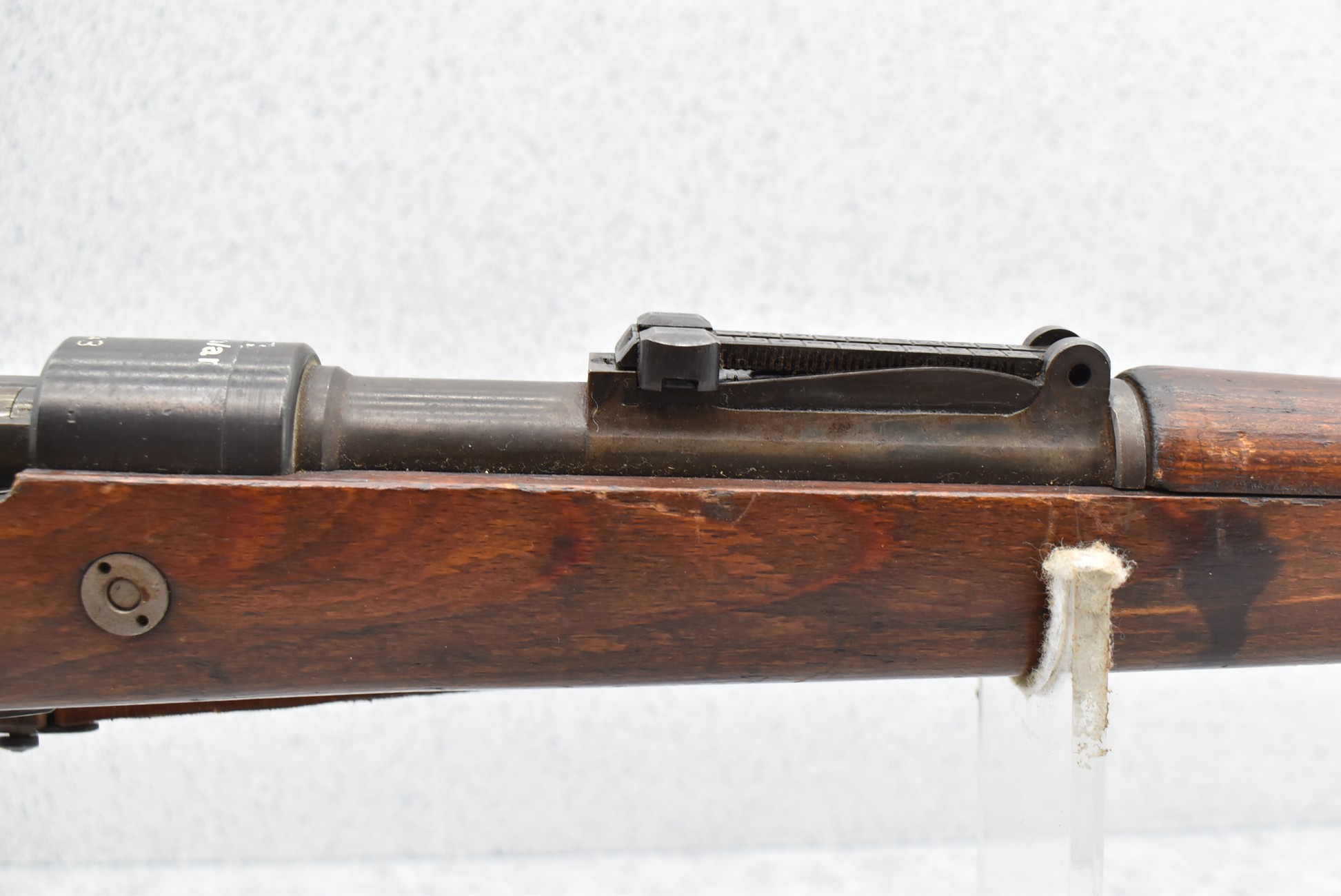 937R. Gustloff-Werke – Mauser Mod. 98 – 8mm Cal. Bolt Action Rifle – w/23 ½” Barrel w/Hooded Blade Front & Adj. Rear Notch Sights – Military Finish – w/Pistol Grip Full Wood Military Stocks w/Metal Butt Plate – w/Leather Sling – w/Cleaning Rod – Appears All Matching Except Stock – Mfg. Code: bcd – Dated 1943