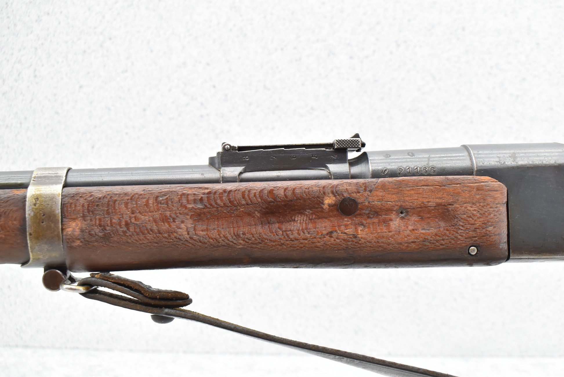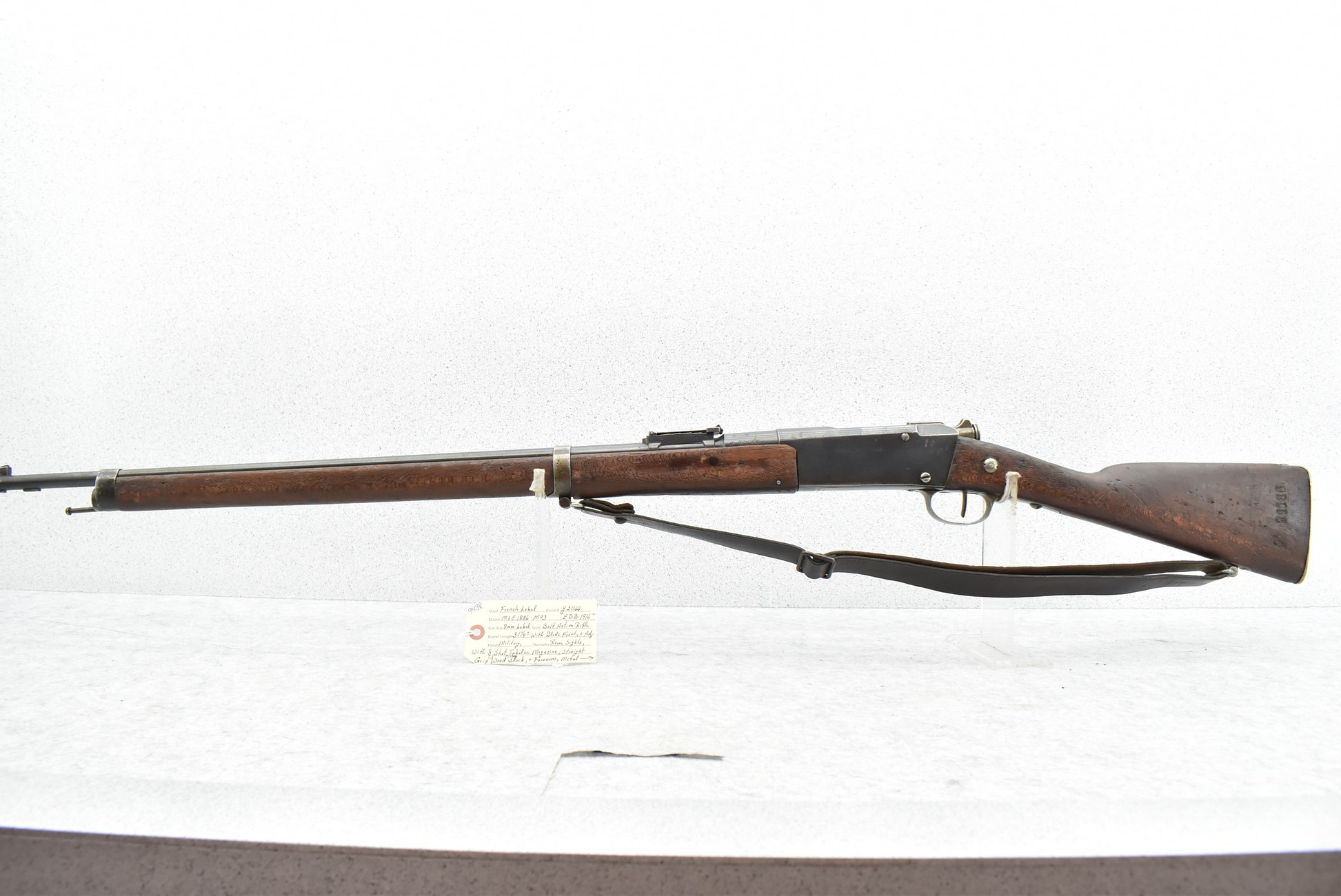 943R. Lebel (French) – Mod. MLE 1886-M93 – 8mm Lebel Cal. Bolt Action Rifle – w/31 ¼” Barrel w/Blade Front & Adj. Rear Sights – w/Straight Grip Full Wood Military Stocks w/Metal Butt Plate – w/8-Shot Tubular Magazine – w/Leather Sling – Dated EDB-1916