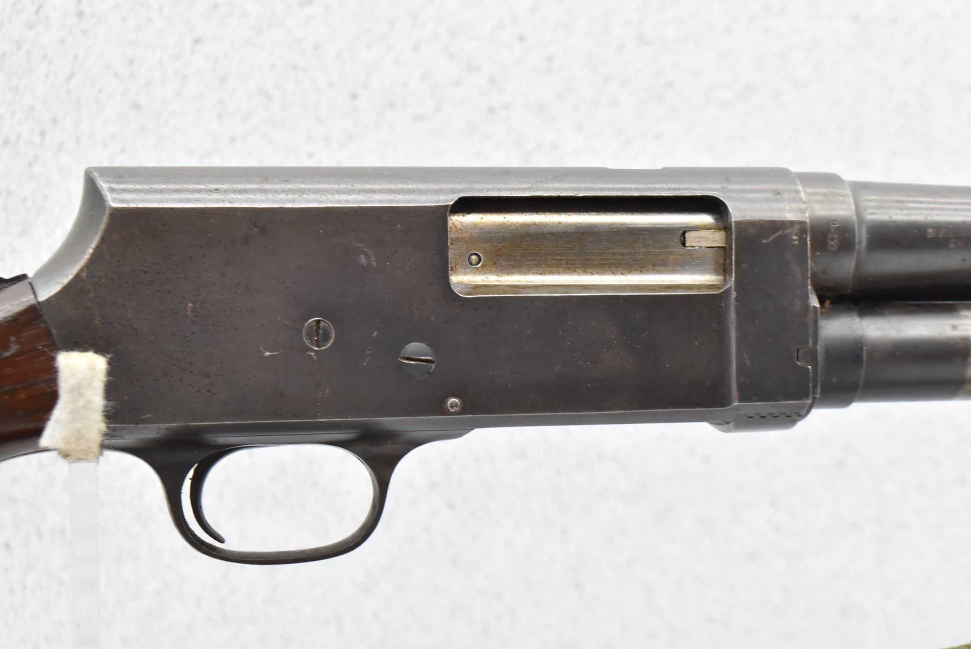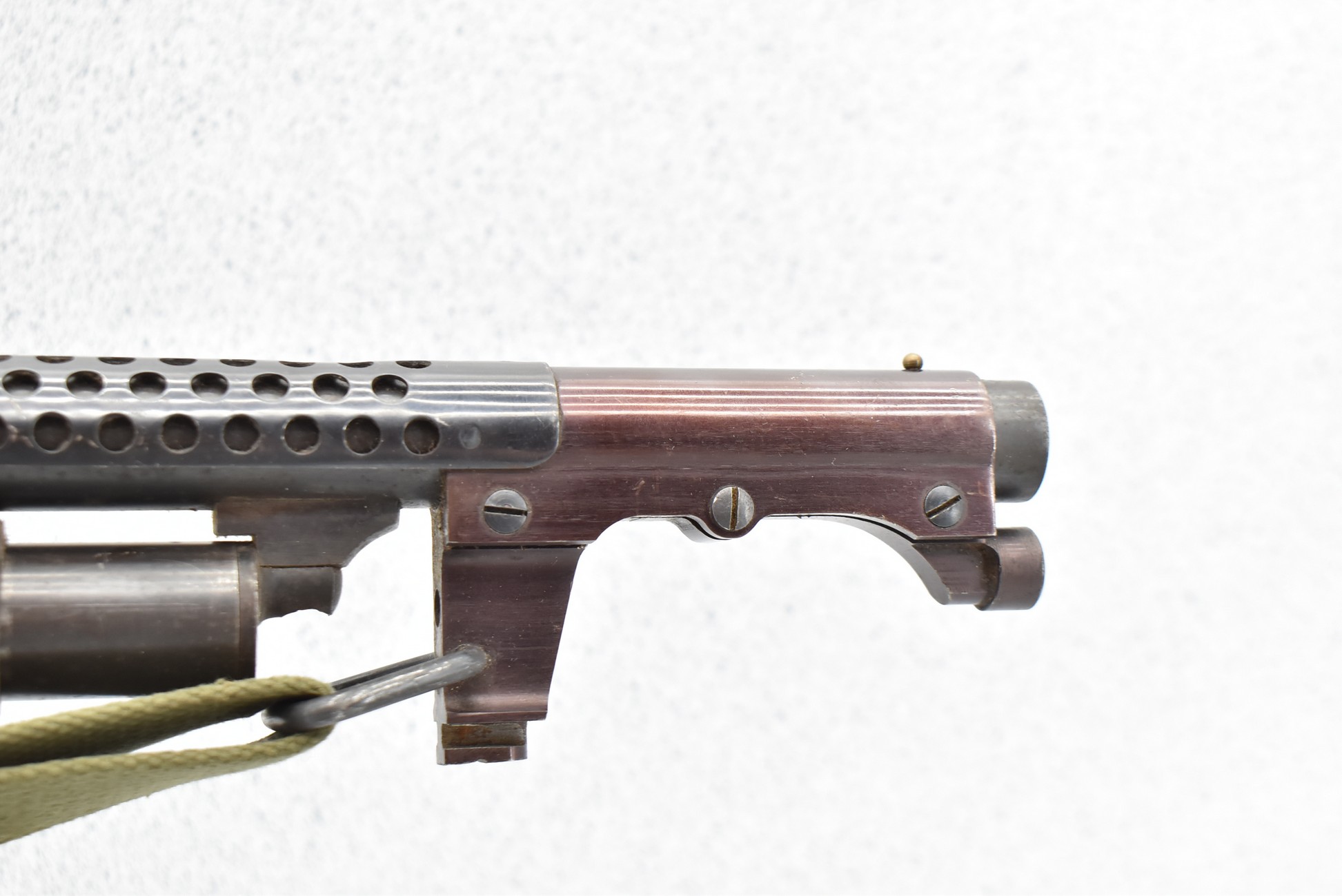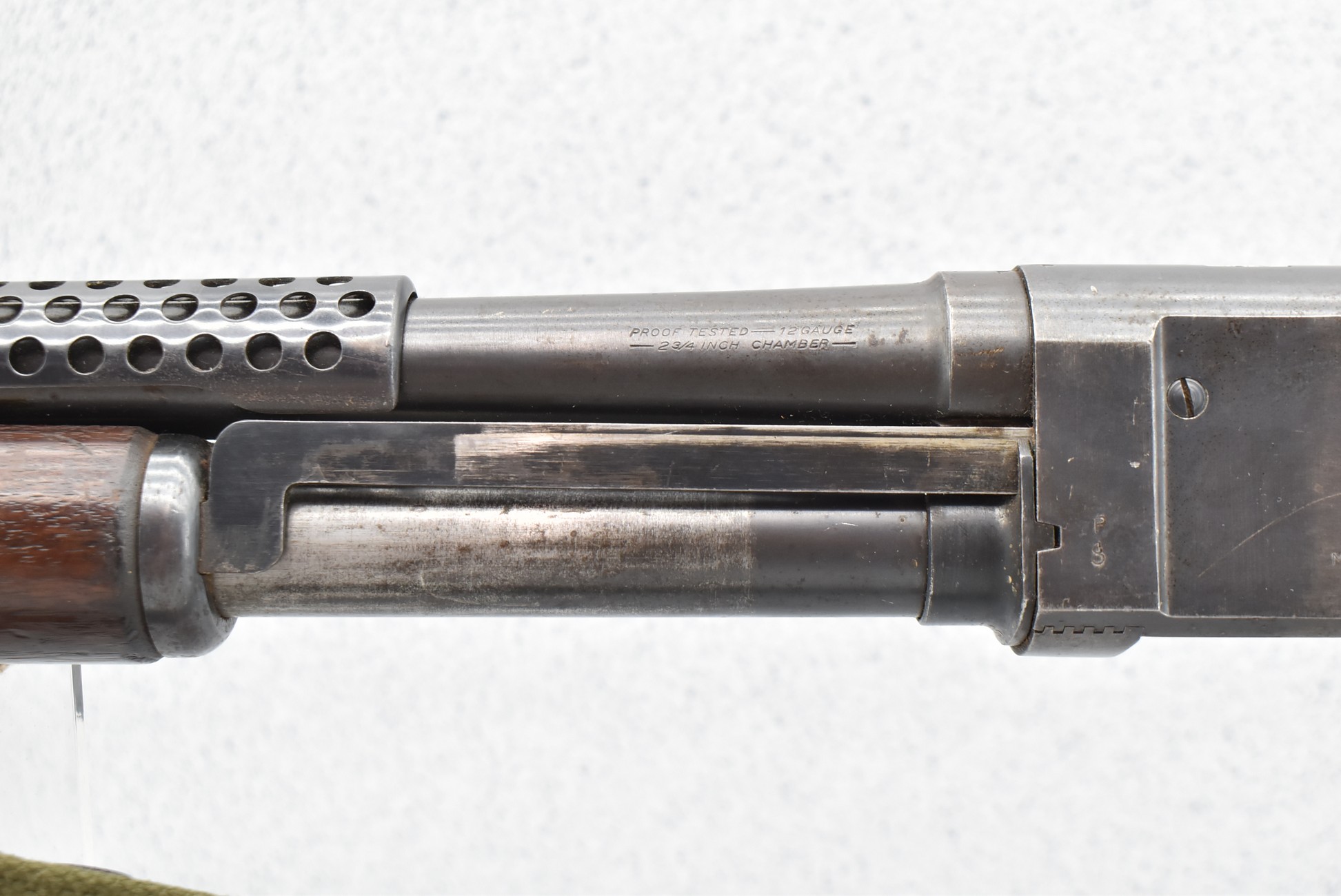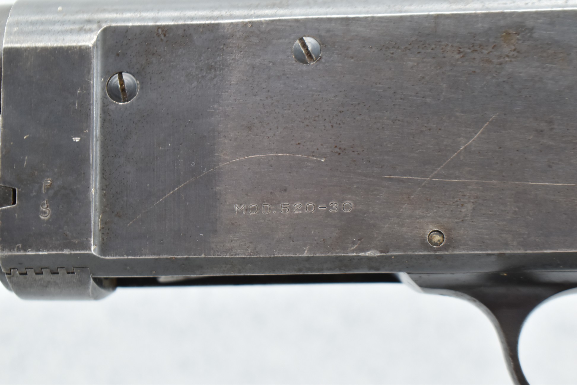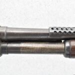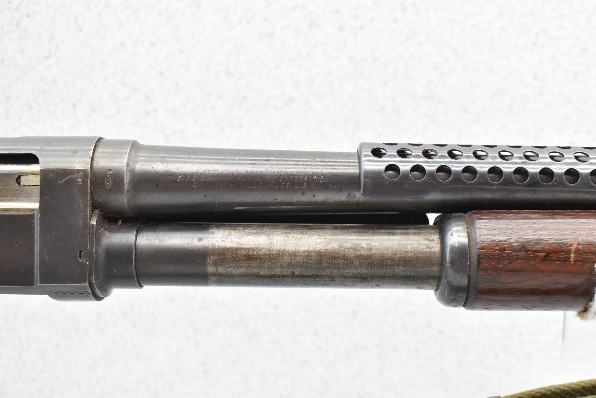 957R. J. Stevens Arms – Mod. 520-30 Trench Gun – 12ga. Pump Action Shotgun – w/20” Cyl. Choke Barrel w/Bead Sight, Heat Shield & ¾ Length Tubular Magazine w/Bayonet Lug – Blued Finish – w/Smooth Pistol Grip Wood Stocks w/Oversized Butt Plate – w/Military Sling & Ammo Pouch – US & Ordnance Bomb Marked Receiver & Ordnance Bomb Marked Barrel