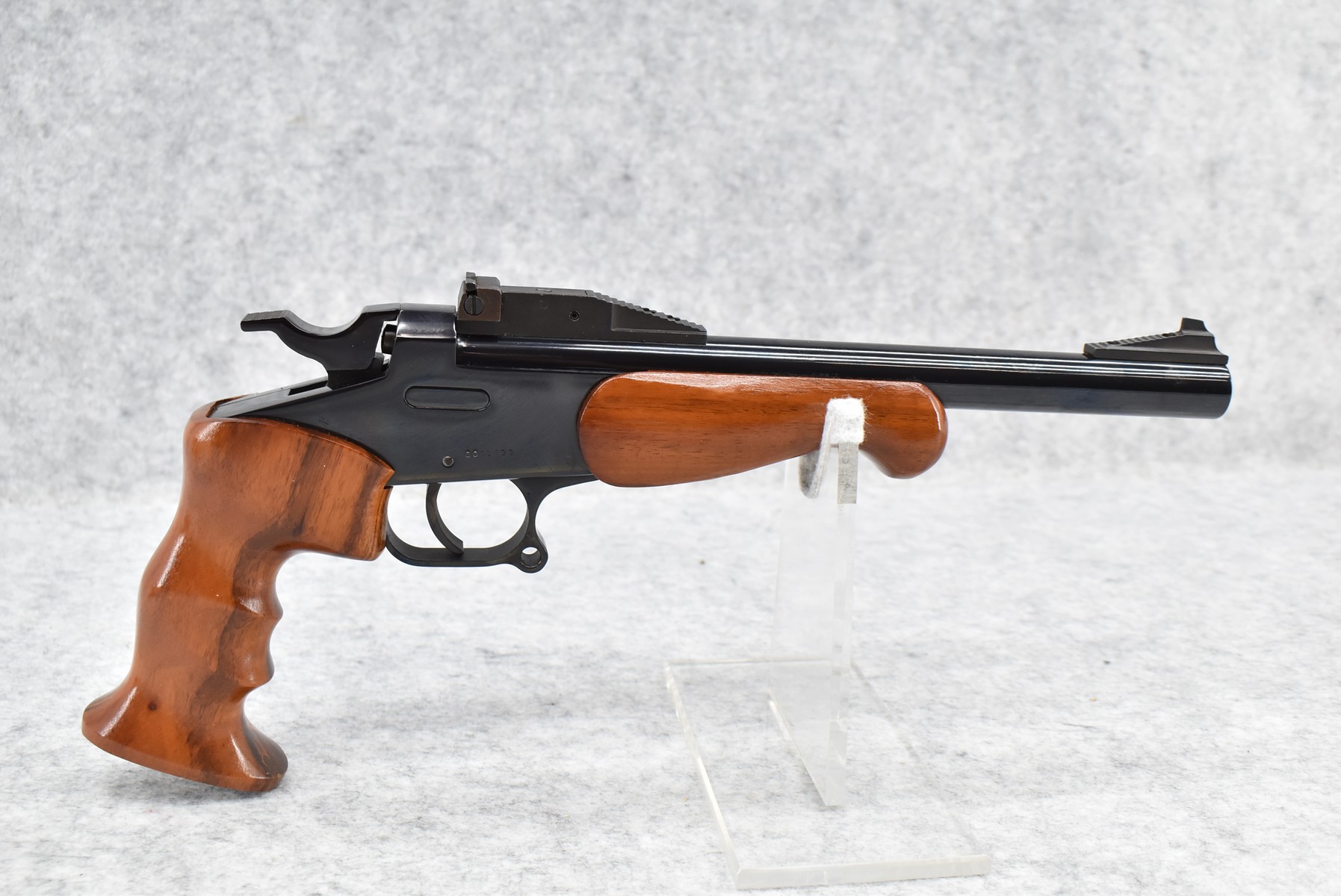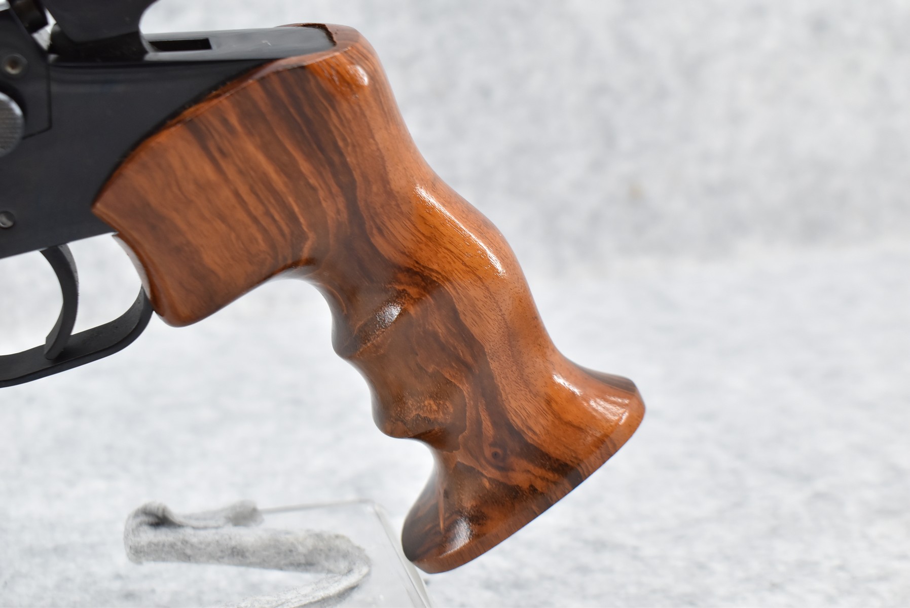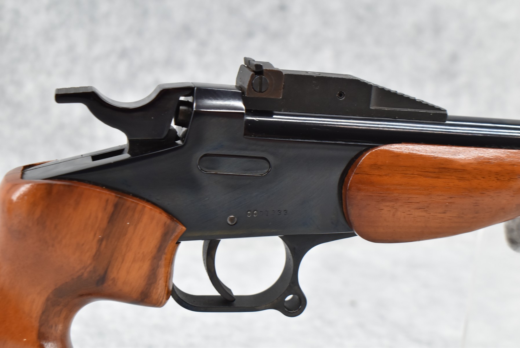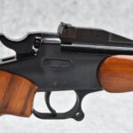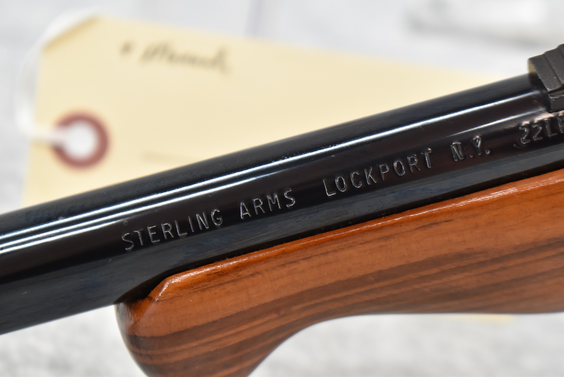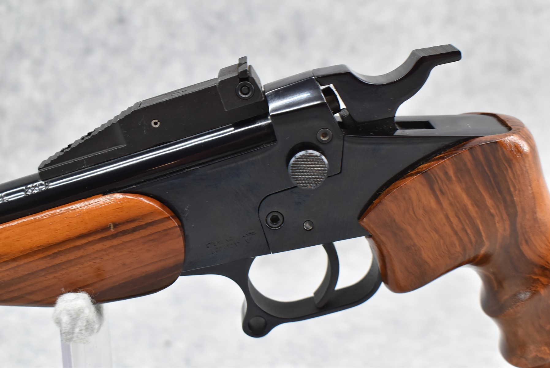 96R. Sterling Arms – Mod. X Caliber – 22LR Cal. Single Shot Pistol – w/10” Heavy Barrel w/Ramp Blade Front and Adjustable Rear Notch Sights – Blued Finish – w/3-Finger Grooved Wood Pistol Grip and Forearm – w/Factory Box and Manual
