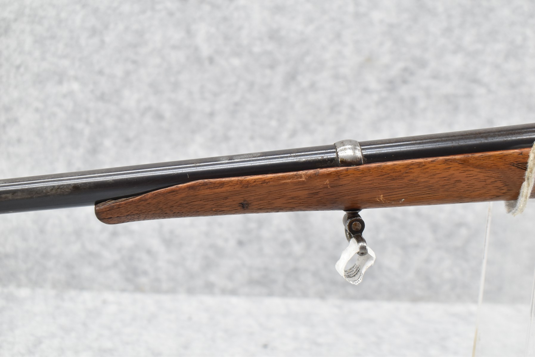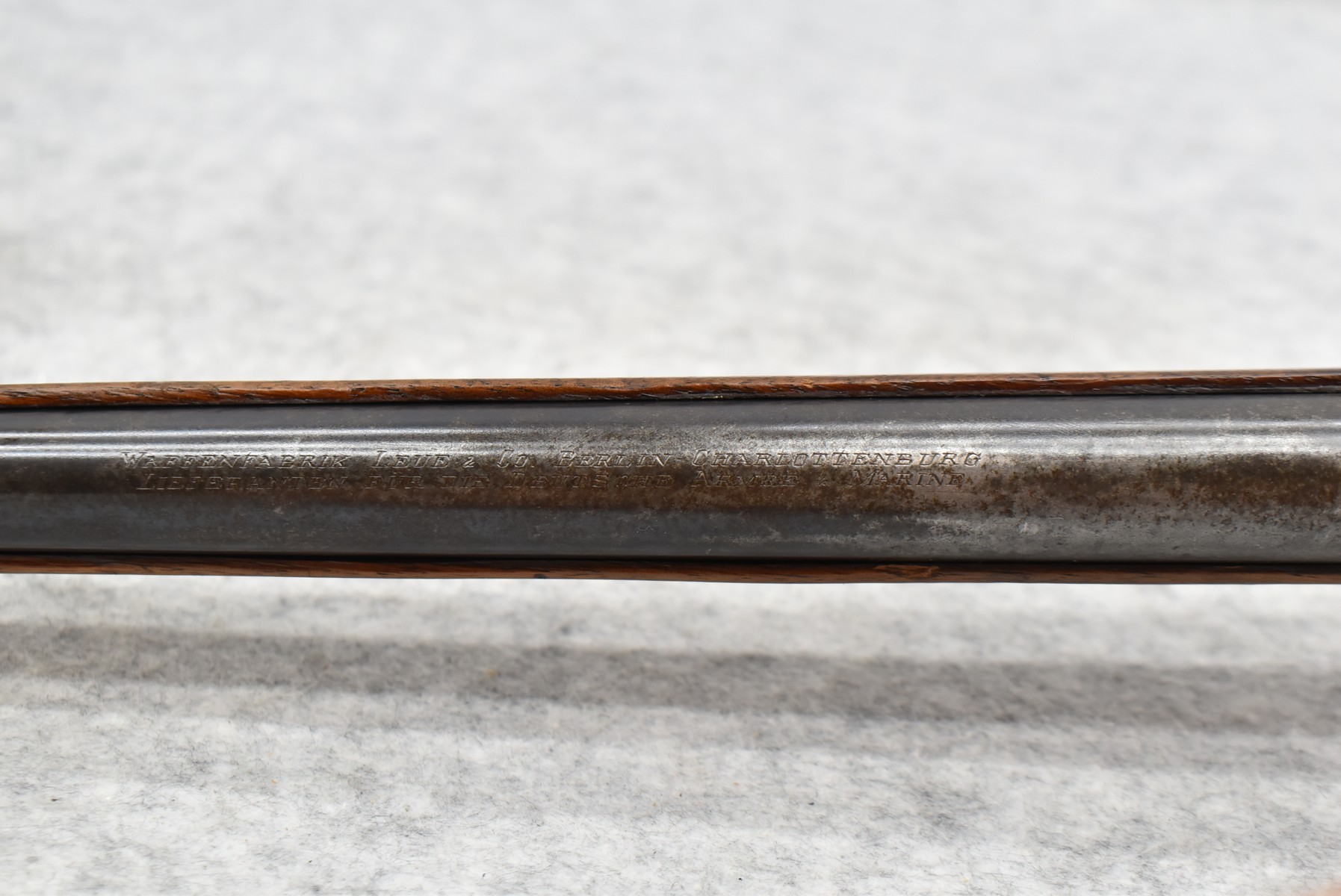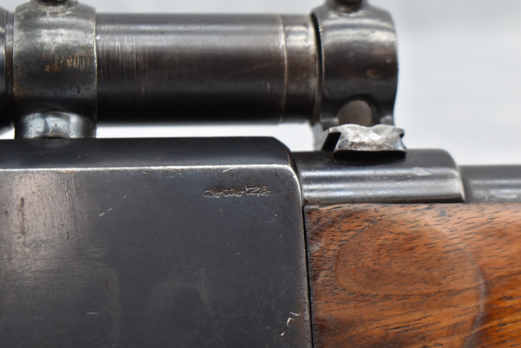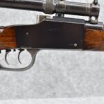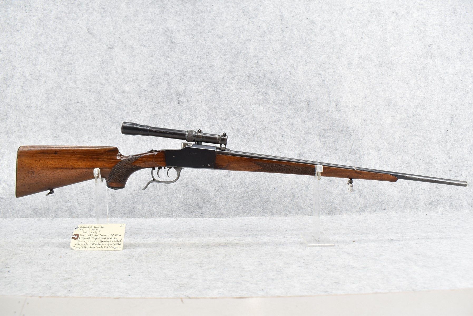 98R. Waffenfabrik Leue & Co. -Berlin Charlottenburg – Single Shot Rifle – Barrel Marked Under Forearm 7.7mm 57 for Caliber – w/26” Tapered Round Barrel (No Provisions for Sights) – w/Horn Capped Checkered Pistol Grip Wood Butt Stock w/Horn Butt Plate & 17” Long Matching Checkered Forearm – w/Double Set Triggers – Gun is Fitted w/Factory Waffenfabrik Leue & Co. German Post Reticle Scope – w/Scope Rings – Nitro Proofed
