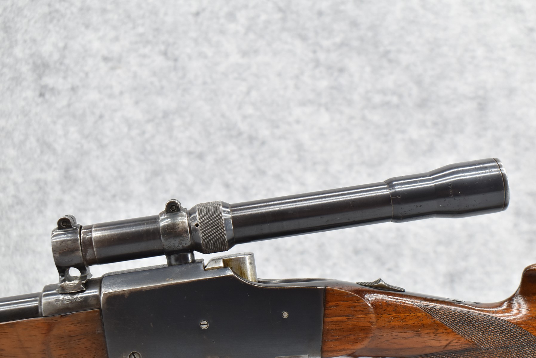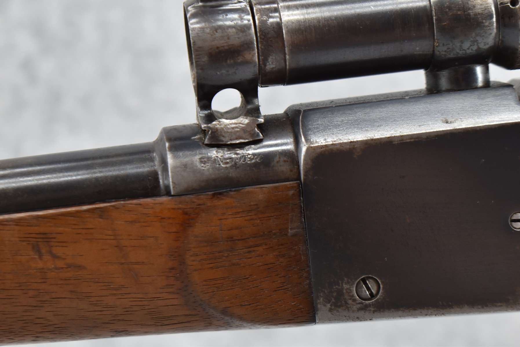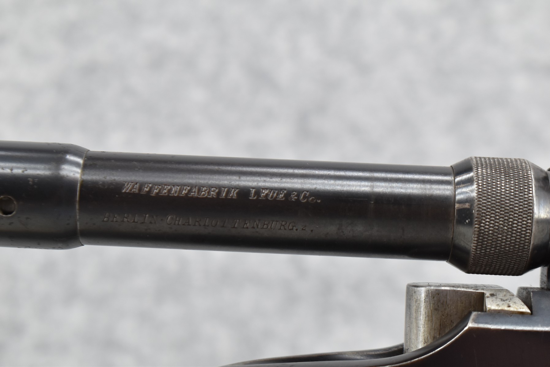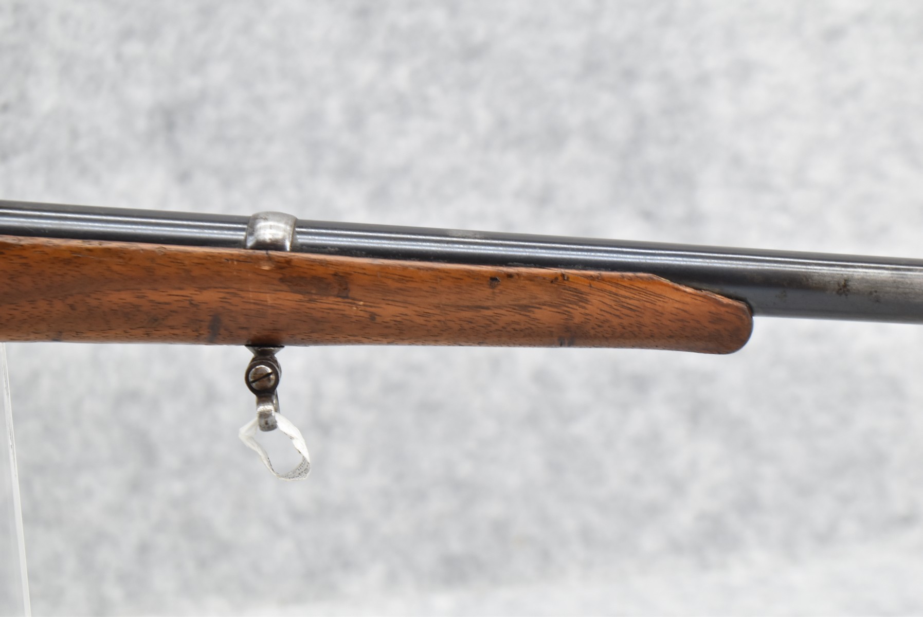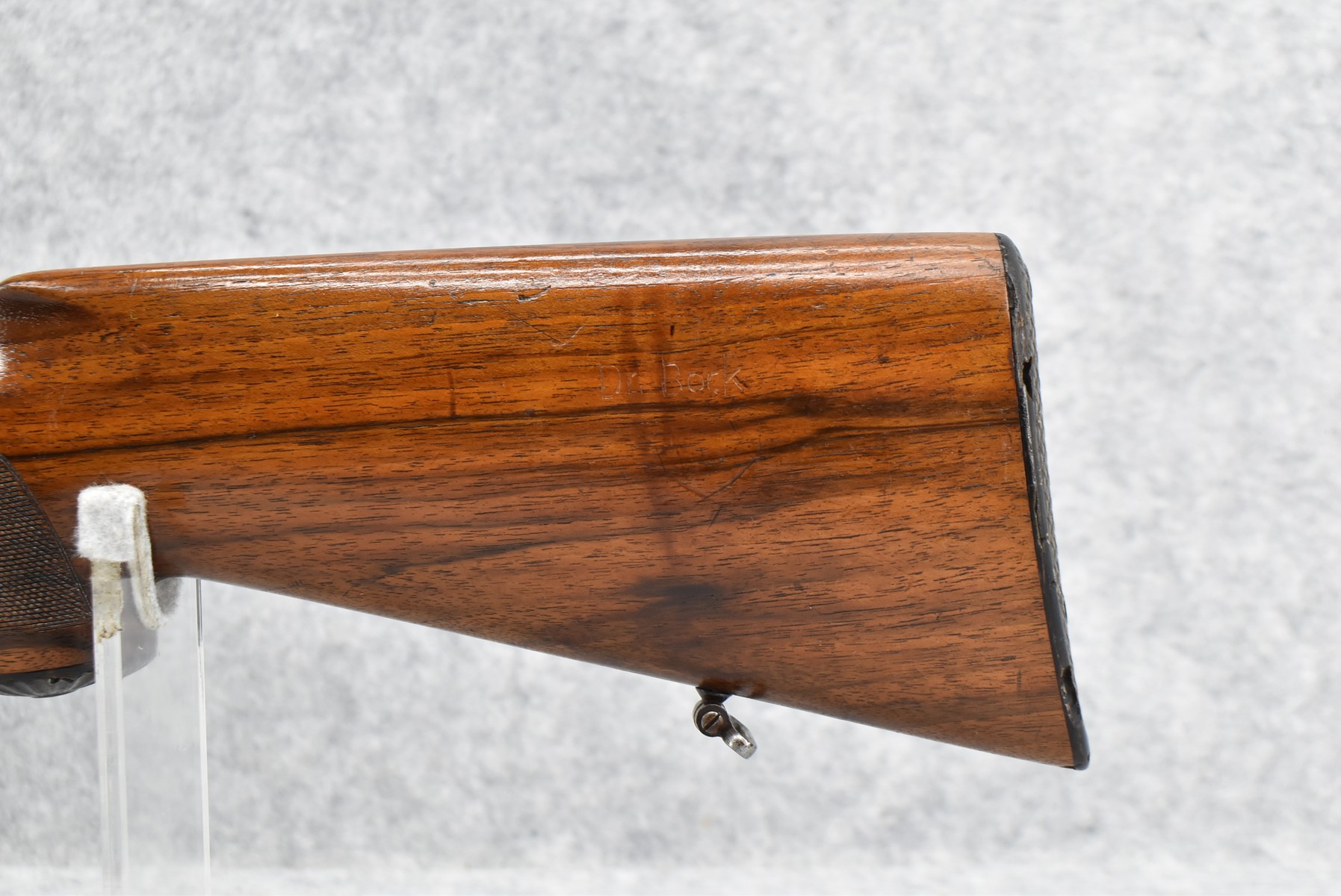 98R. Waffenfabrik Leue & Co. -Berlin Charlottenburg – Single Shot Rifle – Barrel Marked Under Forearm 7.7mm 57 for Caliber – w/26” Tapered Round Barrel (No Provisions for Sights) – w/Horn Capped Checkered Pistol Grip Wood Butt Stock w/Horn Butt Plate & 17” Long Matching Checkered Forearm – w/Double Set Triggers – Gun is Fitted w/Factory Waffenfabrik Leue & Co. German Post Reticle Scope – w/Scope Rings – Nitro Proofed