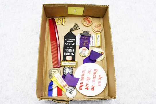 Redman, Advertising, and Ephemera: 100 Lots Including: Ribbons, Postcards, Stamps, Old Photographs, Vintage Advertising Items, Vintage Booklets, Match Case Holders, Vintage Currency, Old Books, and Other