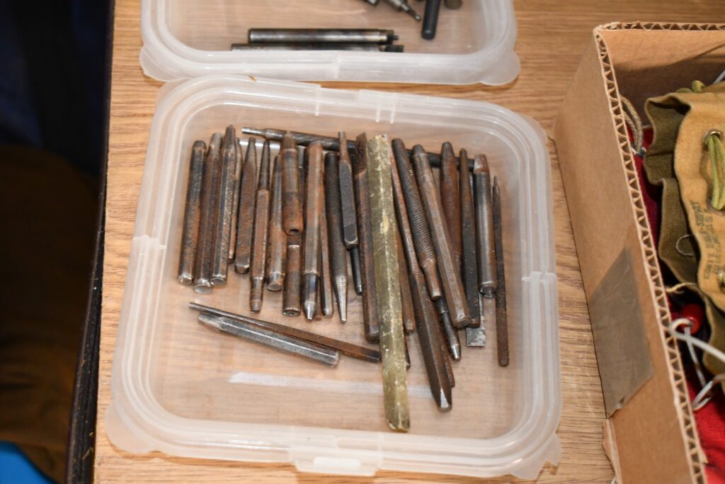Antiques and Collectibles: Large Amount of Stamps, Holiday Decorations, Modern and Collectible Tools, Sports Cards, Signed Baseballs, Hockey Pucks, Signed Football, Ornate Mantle Clocks, War Bond Posters, Framed Prints and Pictures, Longaberger Basket Bell on Hanging Stand, McCormick Deering Yard Stick, Miniature Tools and Guns, Pottery Crocks and Jugs, Vintage Pink Radio, Miniature Cast Fry Pans, Gettysburg Postcards, Locks with Keys, German Steins, Advertising Calendars and Thermometers, Advertising Tins, Cigarette Advertising Items, Political Pinback Buttons, Wooden Butter Churn, Large Amount of Doilies and Afghans, Ball Caps, Large Amount of Lighters, Belt Buckles, Costume Jewelry, New KitchenAid Mixer and KitchenAid Ice Cream Attachment, Vintage Harmonicas, Cast Figures, Copper and Brass Items, Woodware, Granite and Porcelainware, Lanterns, Ribbons and Medals, Old Photographs, and Other