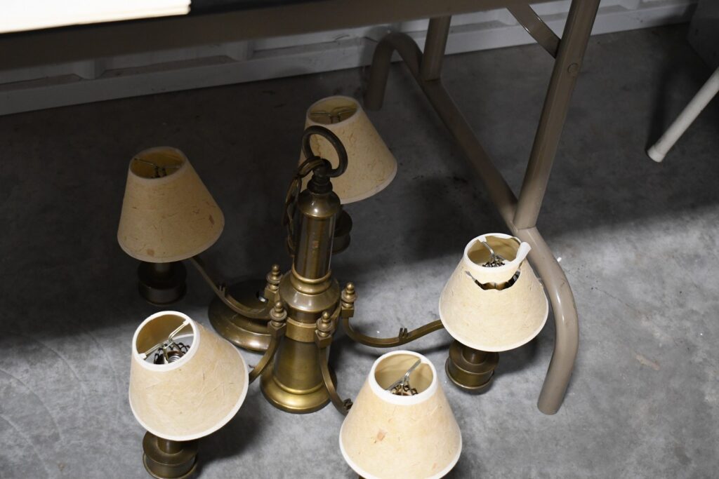 Furniture: 20+ Apple Crates, Childs Yard Toys, Lawn Chairs, Coolers, Glass-Top Patio Table with 4 Chairs, Horse Saddles, Display Cabinet, Metal Stand, Wine Rack, Heaters, Old Metal Scale, Commercial Printer, Upholstered Loveseat, Wood Desk, Military and Other Style Trunks, Wooden Barrel, Various Stands, Chairs, and Other