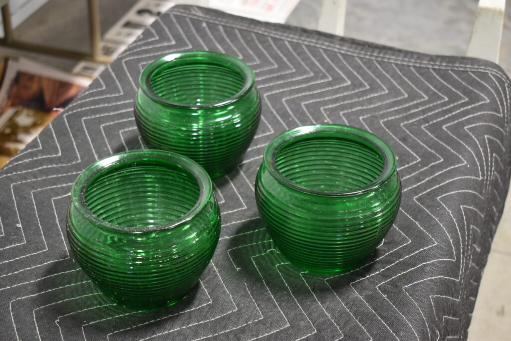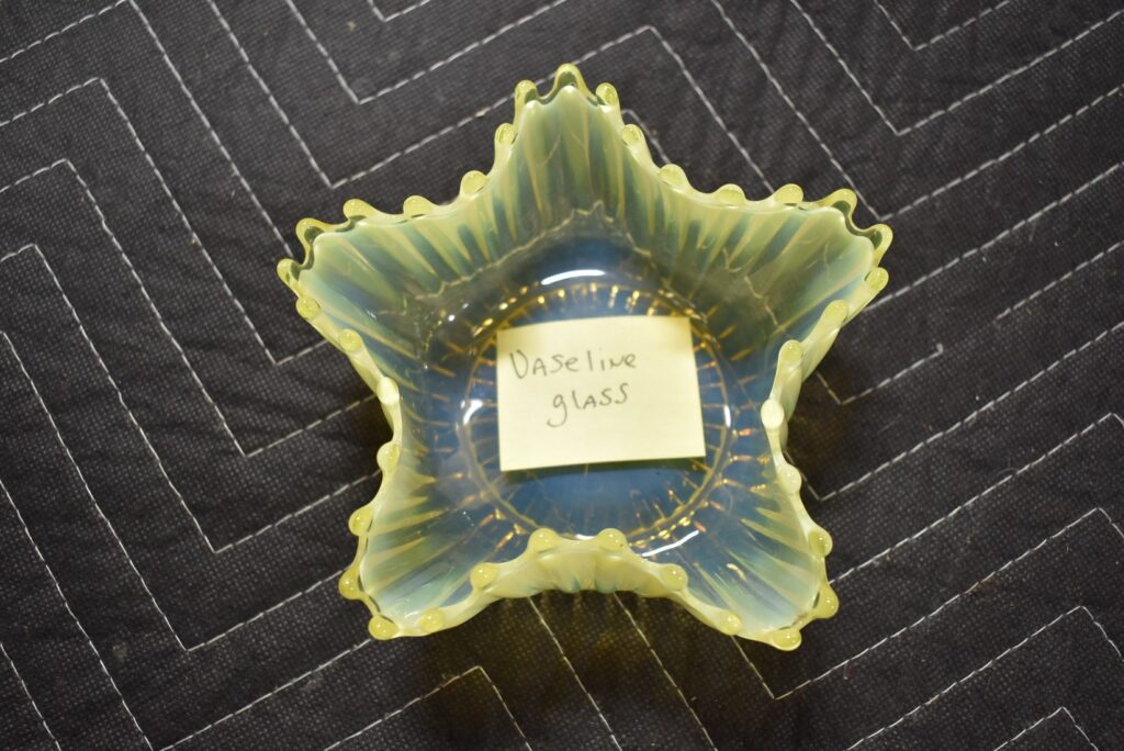 Antique Glassware: 25 Lots of Clear and Colored Vintage Glass Bottles, Glass Jars, Milk Bottles, Large Glass Bottles, Uranium Glass, Vaseline Glass, Chicken on the Nests, Milk Glass, Green Glass, Blue Glass, Lenox Glass, Waterford Crytal Glass, Gorham Crystal Bowl, Pyrex Mixing Bowls, Fire King Kitchenware, Pyrex Casserole Dishes, China Sets, Royal Doulton Dogs, and Other
