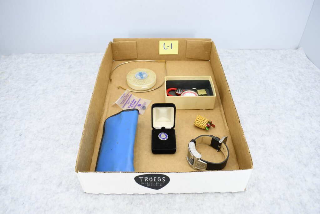115 Lots of Gold, Silver, Sterling, Costume, and Other Jewelry: Rings, Necklaces, Bracelets, Earrings, Pins, Pendants, Chains, Pocket Watches, Wrist Watches, Tie Clips, and Other