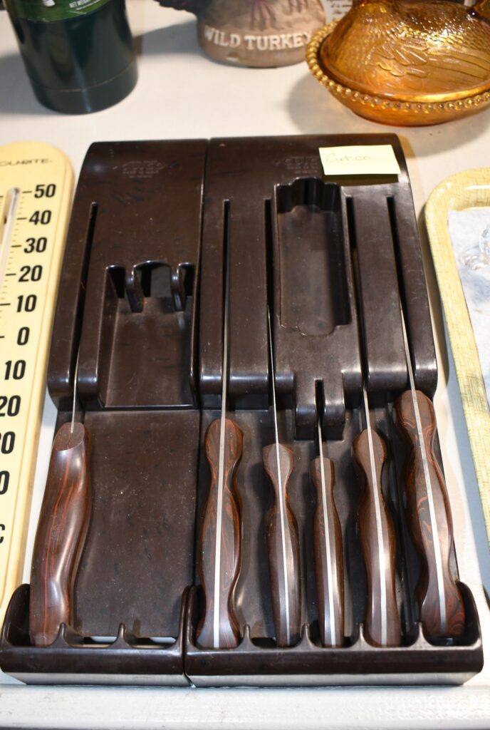 Military and Sporting Related: Military Pins, Medals, and Patches, Military Uniform Buttons, War Rations, Military Tools, Military First Aid Kits, U.S. Survival Kit w/Side A and B Unopened, Military Canteens w/Canvas Covers, Swords and Bayonets, Pennsylvania Boundary, Hunting, Fishing, and Boating Licenses, Deer Antlers, Animal Traps, Large Amount of Folding, Pen, and Sheath Knives, Knife Sets, Bullet Molds, and Other