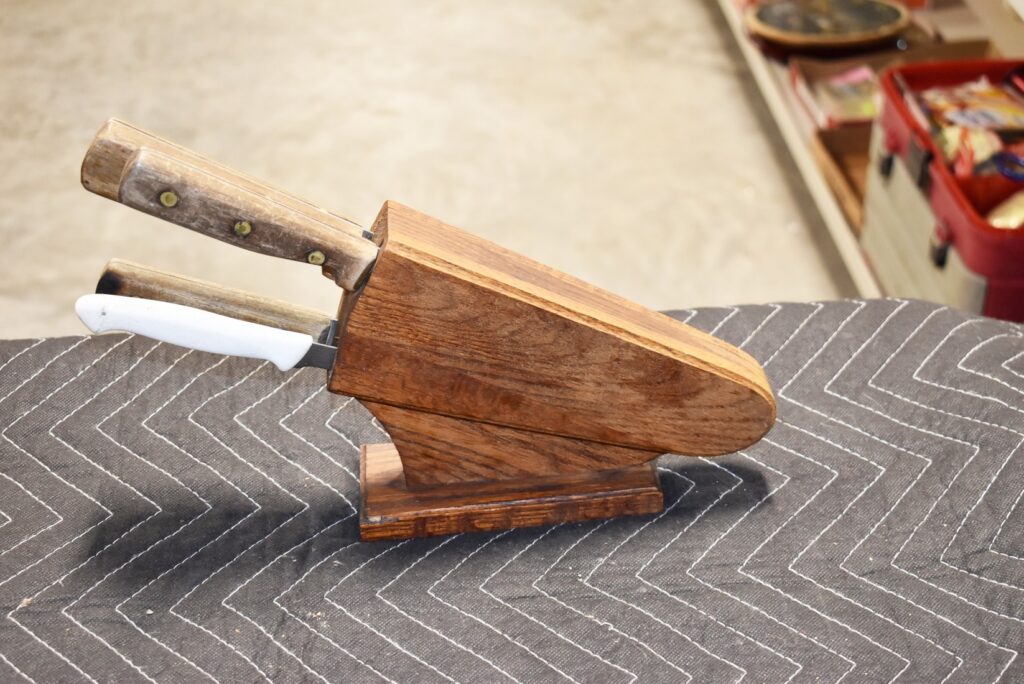 Furniture: Metal Storage Racks on Wheels, Wooden Display Case, Music Stand, File Cabinet, Wooden Gun Cabinet, Metal Magazine Rack, Red and Blue Barrister Style Bookcase, 2-Shelf Barrister Bookcase, Frigidaire Wine Cooler, Sewing Machine Table, (7) Matching Plastic 4-Shelf Racks, Champion Model 77 Commercial Sewing Machine, Wooden Benches, (2) Clear Plastic Chairs, Craftsman 10-Gallon Portable Air Compressor, Chandeliers, STP Oil Treatment Display, Large Wind Chimes, Large Amount of Various Chairs, End Stands, Tables, and Shelves, and Other