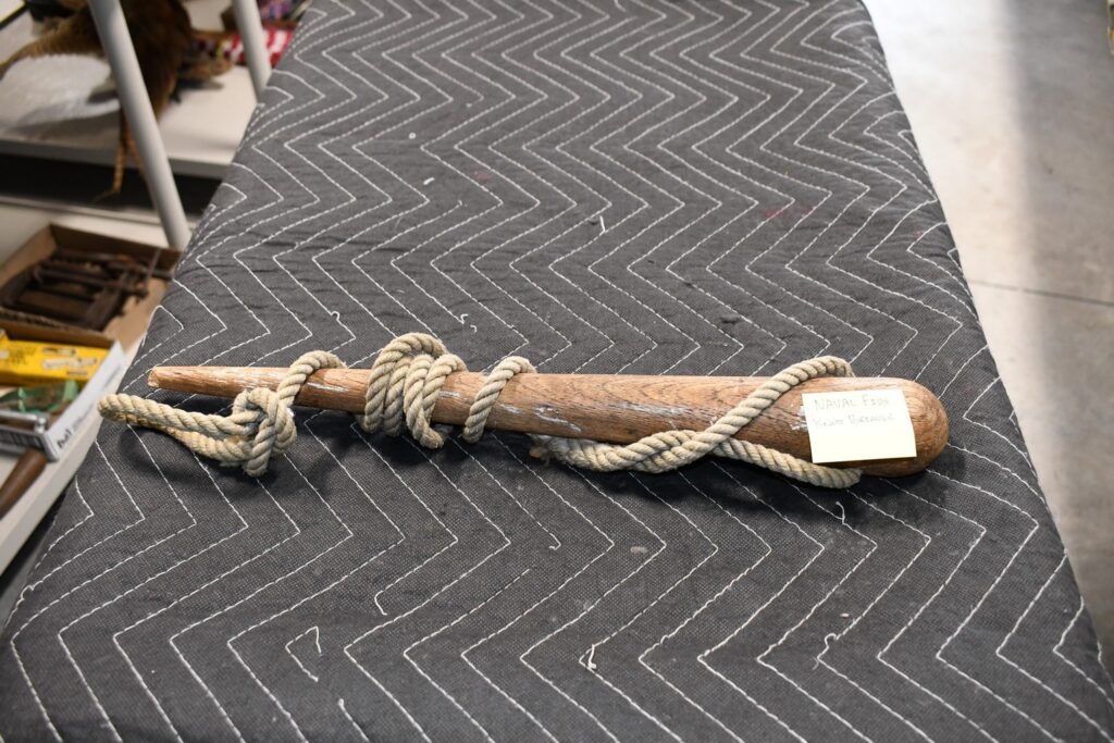 Sporting and Militaria: Folding, Pen, and Sheath Knives, Winchester Flashlight, Bayonets, Meat Cleavers, Naval Fids Knott Breaker, Military Hats and Helmets, US Marked Holster, Military Uniforms, Web Gear, Military Bags and Pouches, and Other