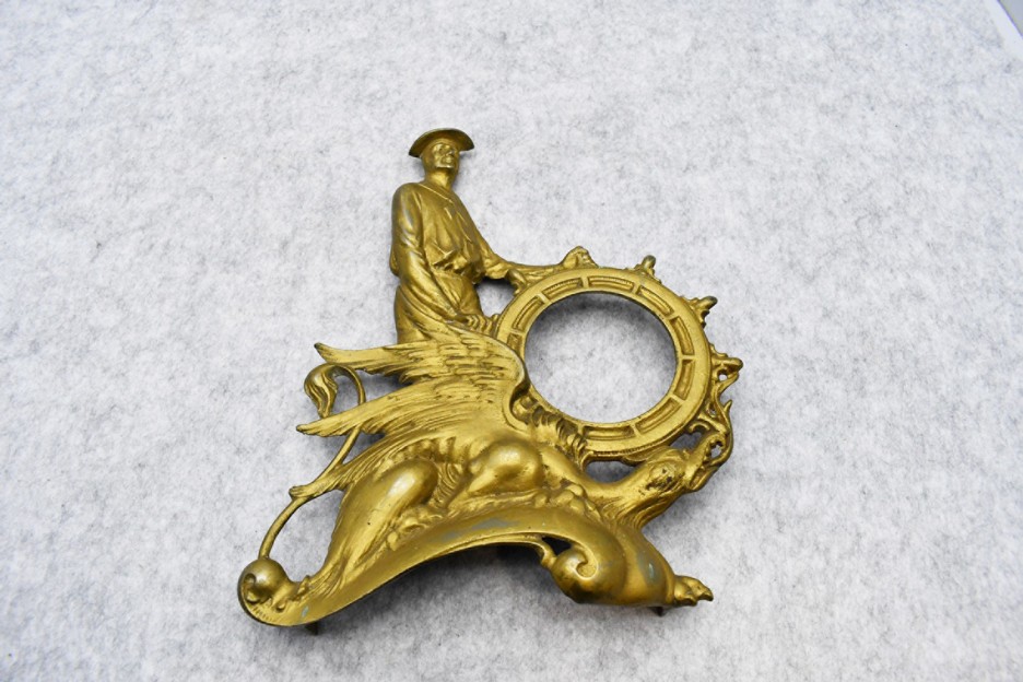 Castware and Copper Items: Dovetailed Copper and Iron Kettle, Goodell Company Cast Iron Double Cherry Pitter, Cast Iron Tabacco Plug Cutter on Base, Blacksmith Forged Fire Side Trivet, Copper Coal Scuttle, Medieval Hanging Pan w/Hook, Wrought Iron Gridiron Used for Hearth Cooking, Campfire or Fireplace Popcorn Popper, Original CJO Judd Iron Cottage House Patio Flower Door Stop w/Original Paint Decoration, Wagner Cast Butter Mold, Wagner Cast Fry Pans and Skillets, Cast Door Stops, and Other