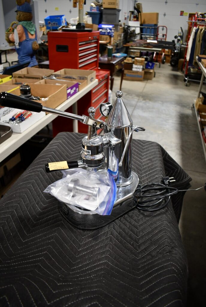Antiques and Collectibles: Large Amount of Jewelry Boxes and Jewelry Storage Containers, German Steins, Large Amount of Beer Advertising Signs, Gaggia Lever Expresso Machine, Large Jim Shore Style Cat, Marbles, Sad Irons, Wildlife Figures, Vintage Fishing Lures, Various Coins, Baskets, Tabacco Pipe, Large Carved Wooden Elephant, Miniature Cast Iron Stove with Accessories, Vintage Coca Cola Cooler, Large Amount of Electronic Items Including TV’s, Radios, Keyboards, Cords, Cameras, Lenses, and Other, Framed Prints and Pictures, Clocks, Home Office Safe, and Other