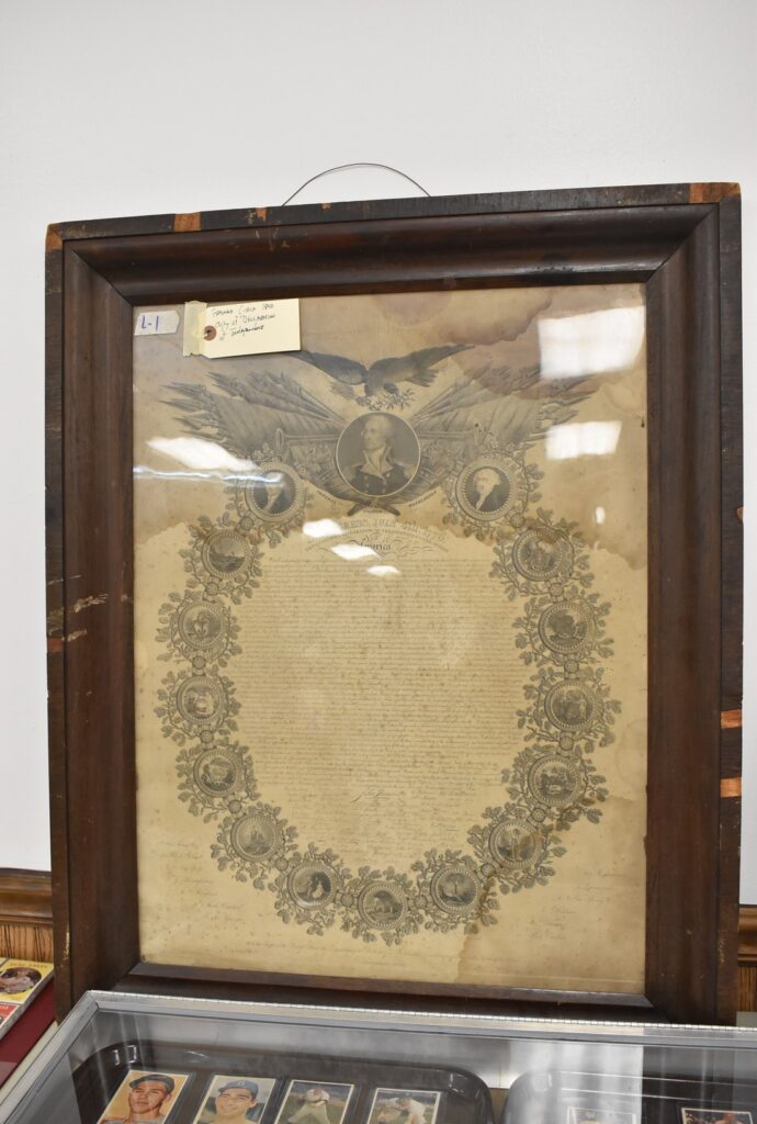 Antiques and Collectibles: Gold, Silver, Costume, and Other Jewelry, Pocket Watches, Griswold, Wagner, and Other Cast Iron Fry Pans, Pottery Crocks and Jugs, Wire Baskets, Decorated Tinware, Tinware, Woodware, Brass Compass, Vintage Childs Books, Morford Register Co. w/Drawer Bell, Wall Hanging and Mantle Clocks, Wizard Pencil Sharpener, Advertising Tins, Carved Wooden Boxes, Old Photographs, Steins, Indian Arrowheads, Winchester Flashlights, Painted Rocks, Wooden Bowls, Vintage Banks, Postcards, Advertising Thermometers, Hallmark Keepsake Ornaments, Large Amount of Vintage/Collectible Tools, Framed Prints and Pictures, (8) Applicate Quilts and Coverlets, and Other