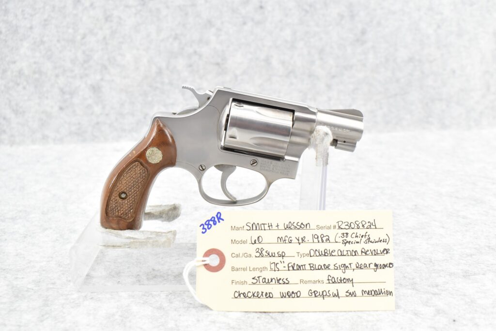 388R.     Smith & Wesson – Mod. 60 (.38 Chiefs Special Stainless) – 38 S&W Spl. Cal. Double Action Revolver –...