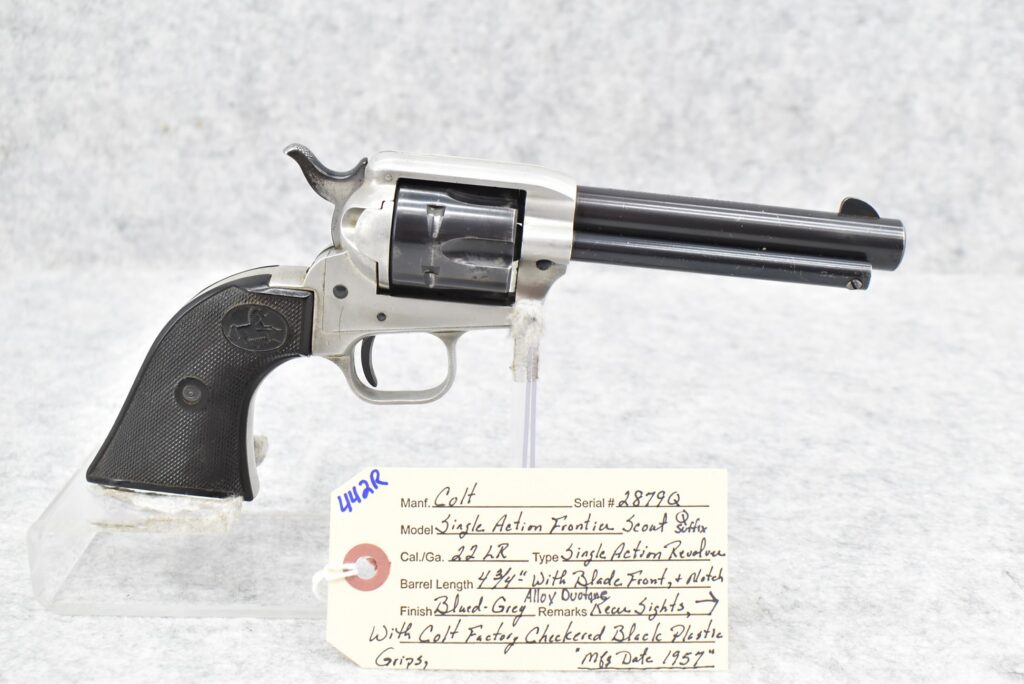 442R.     Colt – Mod. Single Action Front Scout (Q Suffix) – 22LR Cal. Single Action Revolver – w/4 ¾” Barrel...
