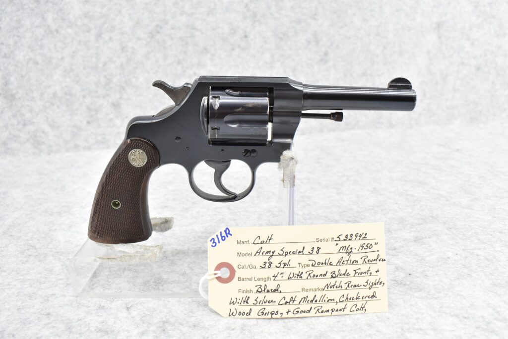 316R.     Colt – Mod. Army Special 38 – 38 Spl. Cal. Double Action Revolver – w/4” Barrel w/Round Blade Front...