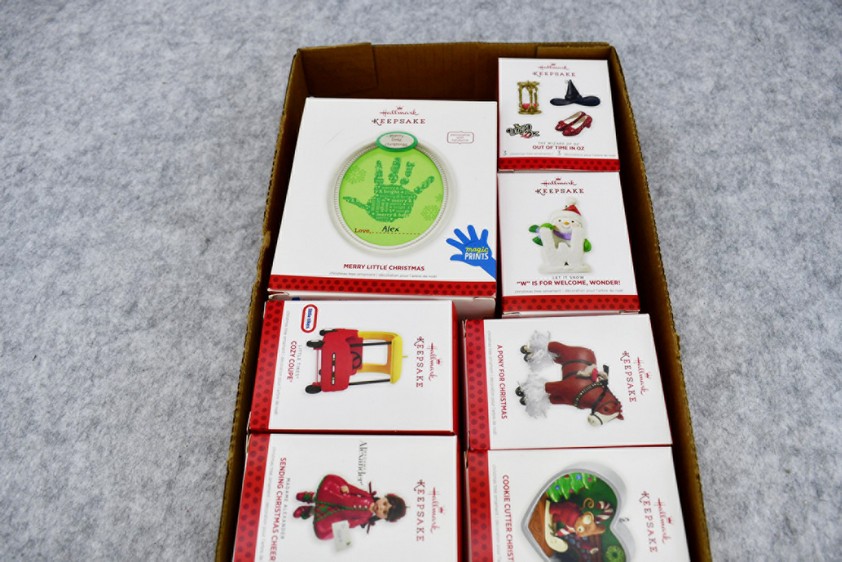 Antique Glassware: Large Amount of Lenox Glass Including Holiday and Other Figures, Lamps, Serving Dishes, and Other, Lladro Figures, (13) Various Lots of Peanut Butter Glasses (Some in Wire Holders), (10) Various Lots of Glass Hallmark Keepsake Ornaments, Fenton Glass, Art Glass, Milk Glass, Corningware, and Other