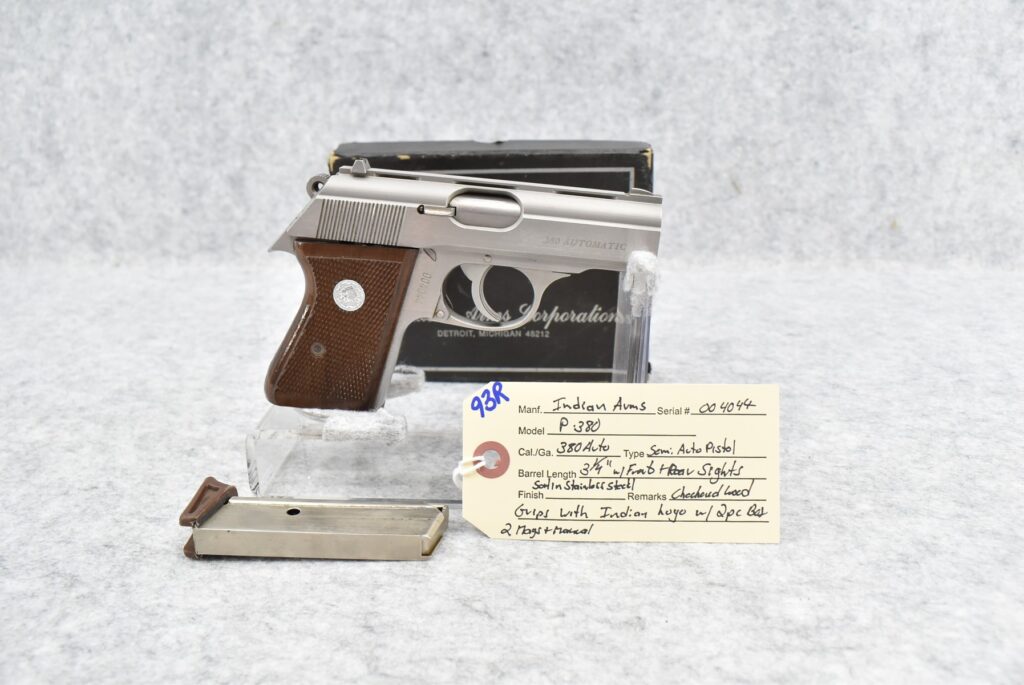 93R. Indian Arms – Mod. P380 – 380 Auto Cal. Semi-Auto Pistol – w/3¼” Barrel w/Front and Rear Sights –...