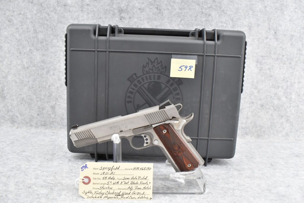 59R. Springfield – Mod. 1911-A1 – 45 Auto Cal. Semi-Auto Pistol – w/5” Barrel w/3-Dot Blade Front & Adj. Rear...