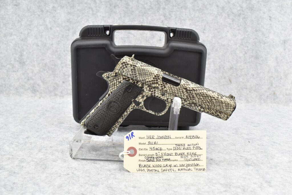 91R. Iver Johnson – Mod. 1911 A1 – 45 ACP Cal. Semi-Auto Pistol – w/5” Barrel w/Blade Front and Iron...