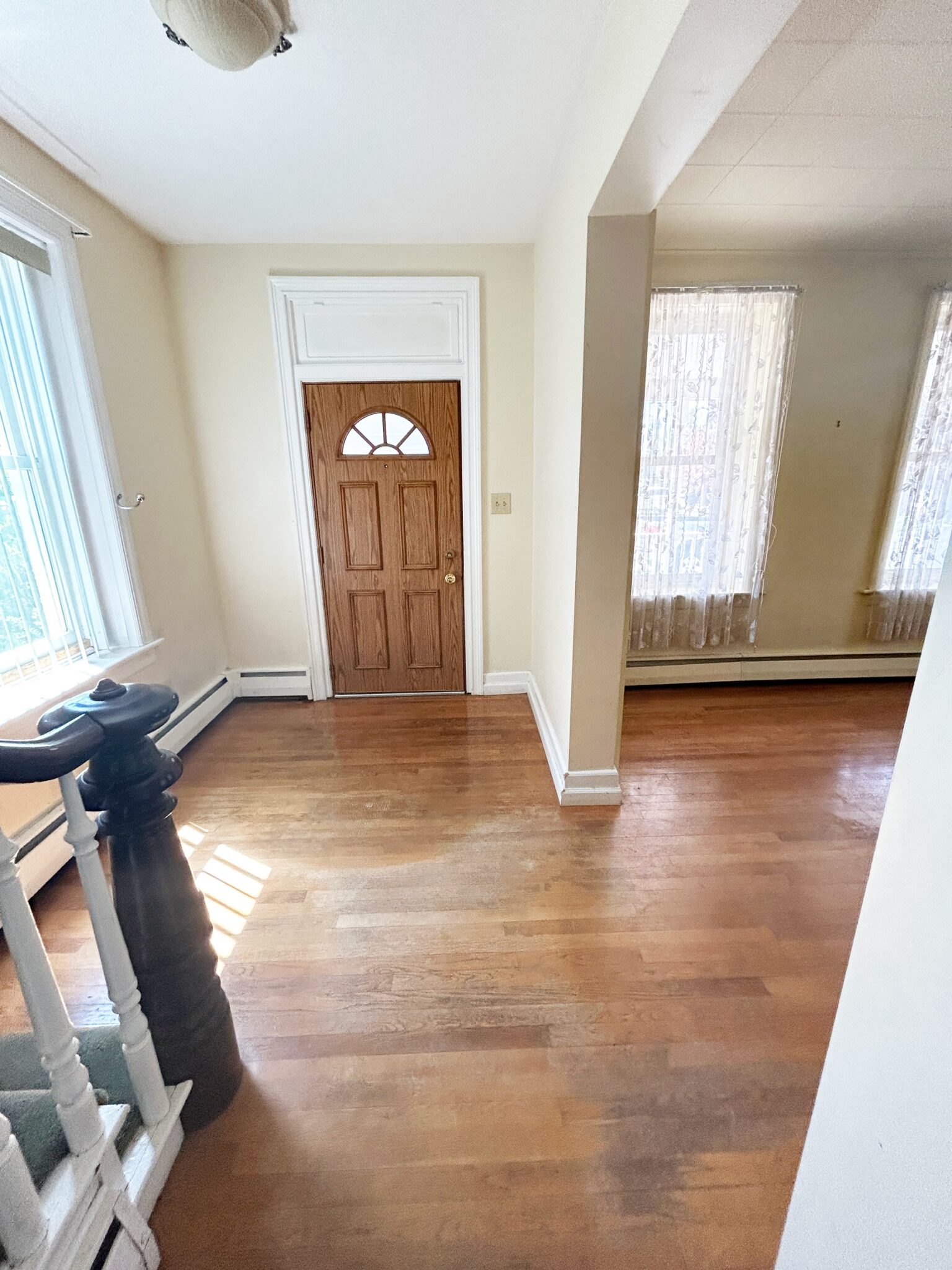 - Front Door Entrance Way: 7’x18’ – Hardwood Flooring, Access to 2nd Floor, Kitchen, Basement, and Family Room.