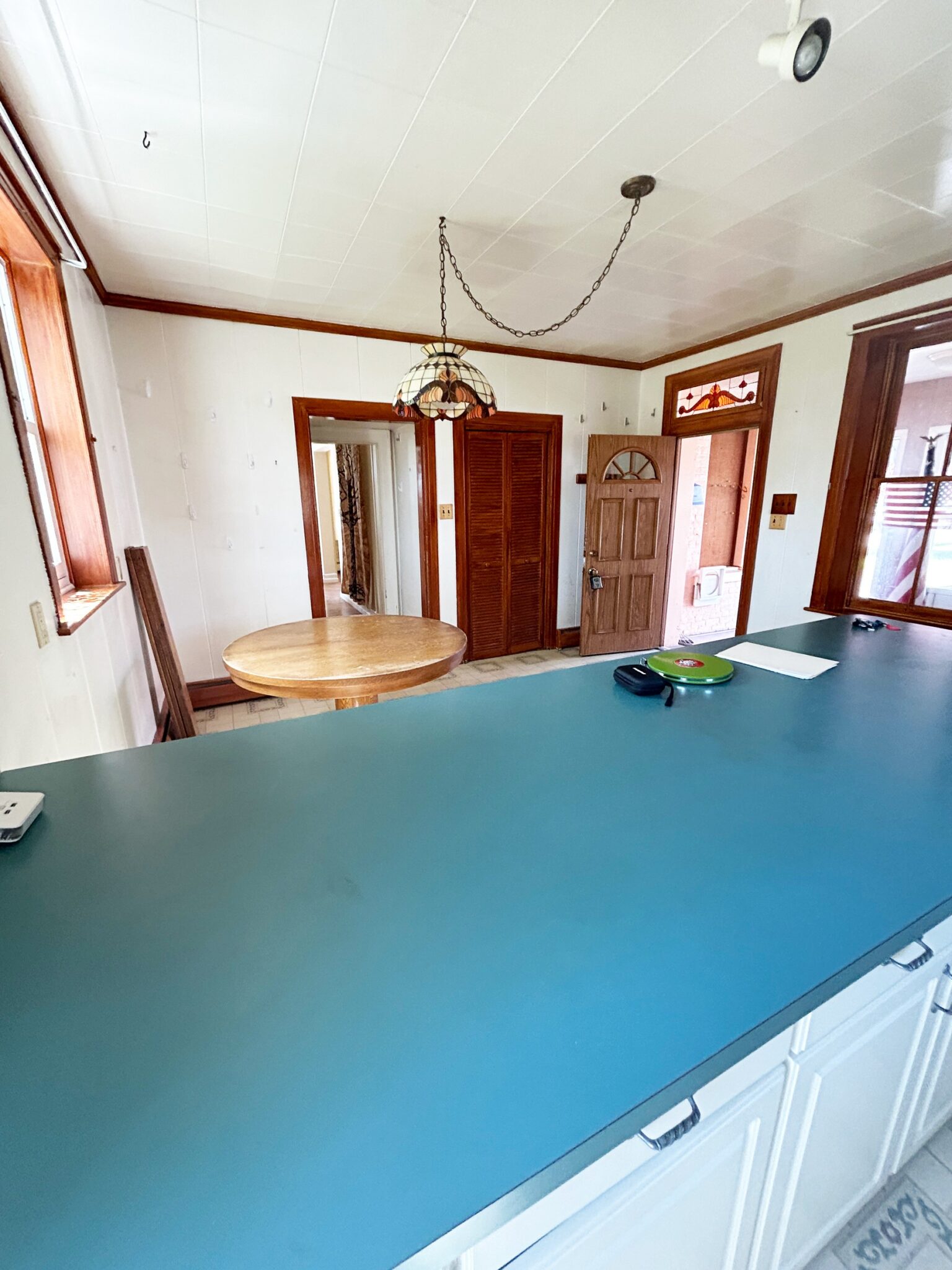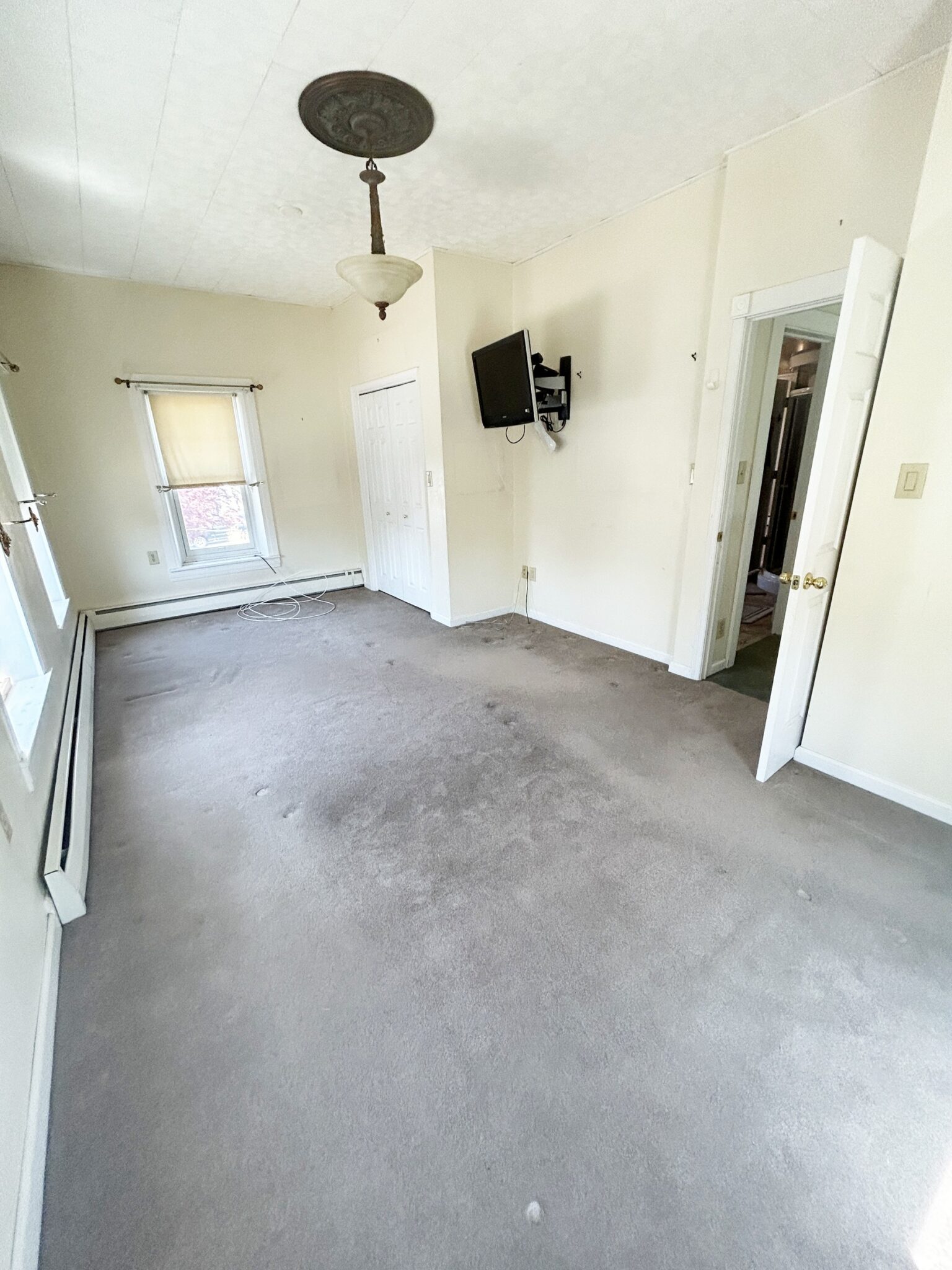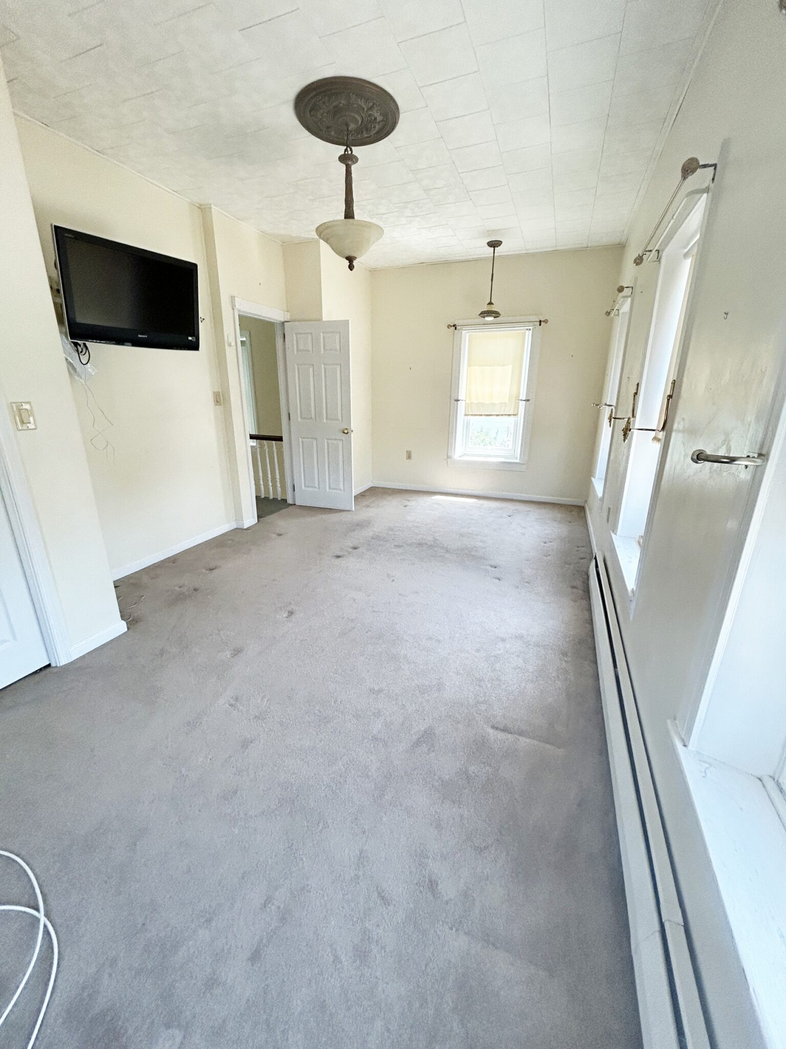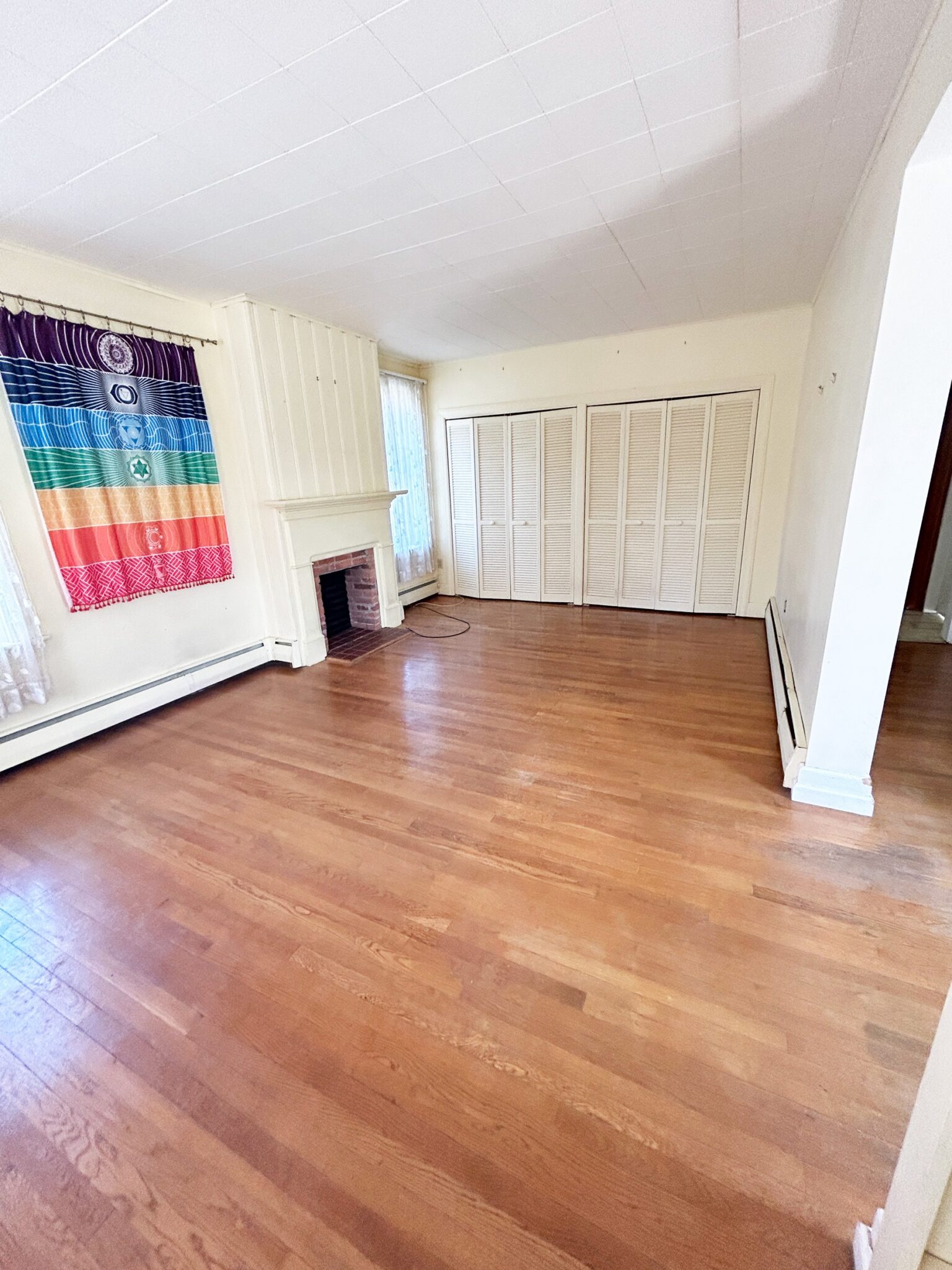 - Family Room: 19’x12’ – Hardwood Flooring, Large Deep Windows, Brick Fireplace Hearth, 8’ Ceiling, Baseboard Heat