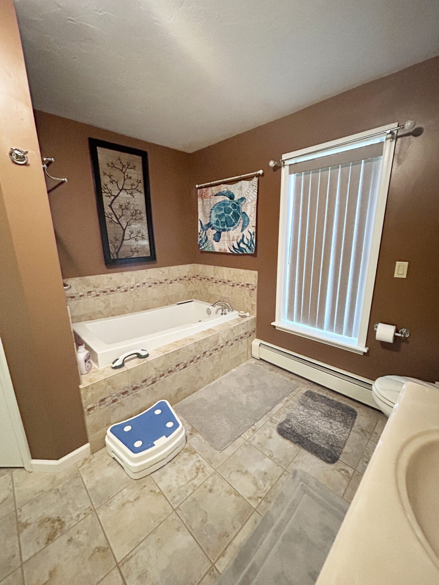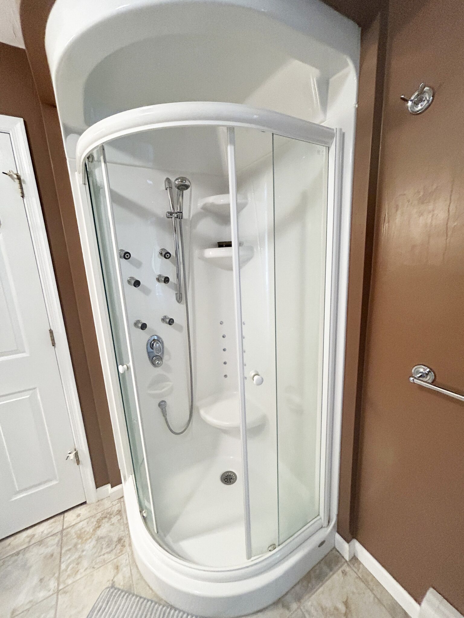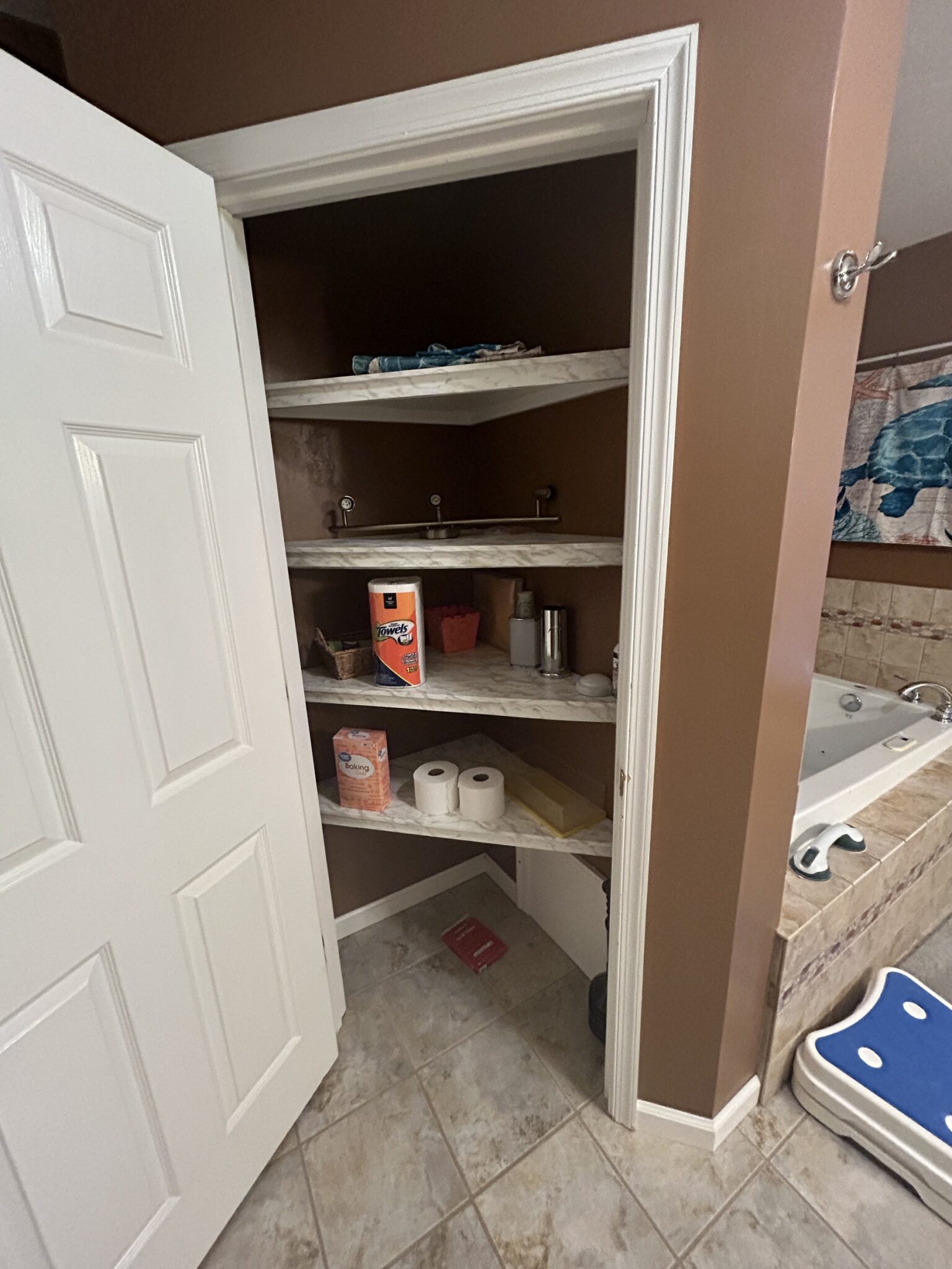 - Full Bath: 10’x12’ – Tile Flooring, Step in Corner Shower, Single Sink, Jacuzzi, Window, Closet with Shelves.