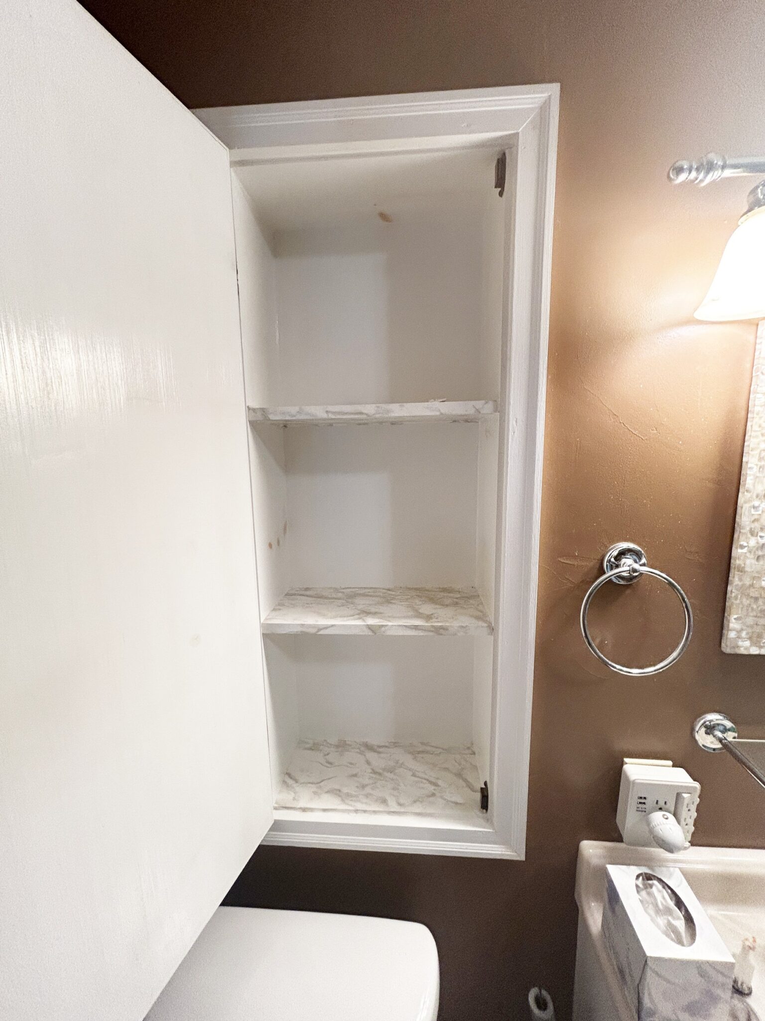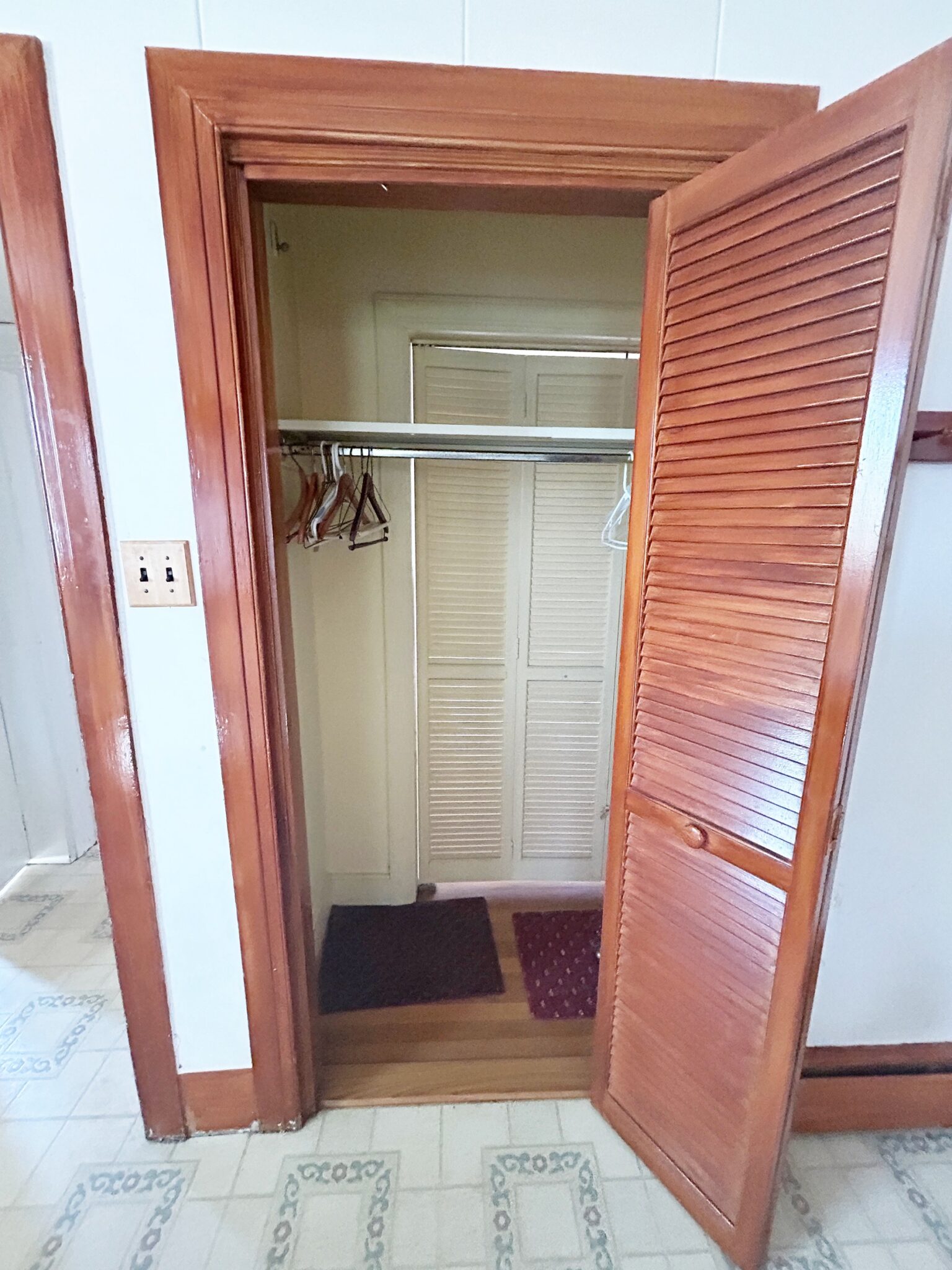 - Half Bath: 6’x6’ – Vinyl Flooring, Corner Sink, Window, Built in Cabinet