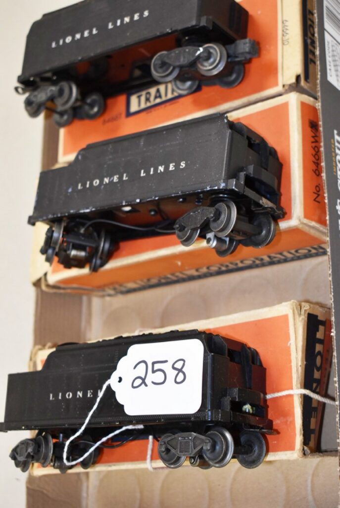 258.        Lot of 3 Lionel Tenders – Including (2) 6466WX and 6466T – All w/Boxes