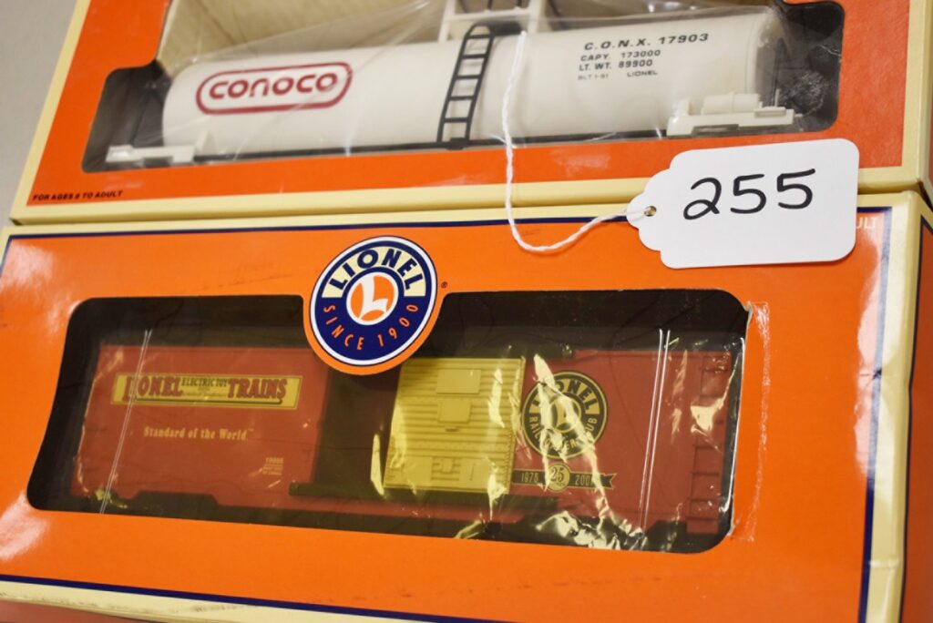 255.        Pair of Lionel Train Cars – Including Conoco Tank Car 6-17903 and LRRC 25th Anniversary Box Car 6-19995 –...