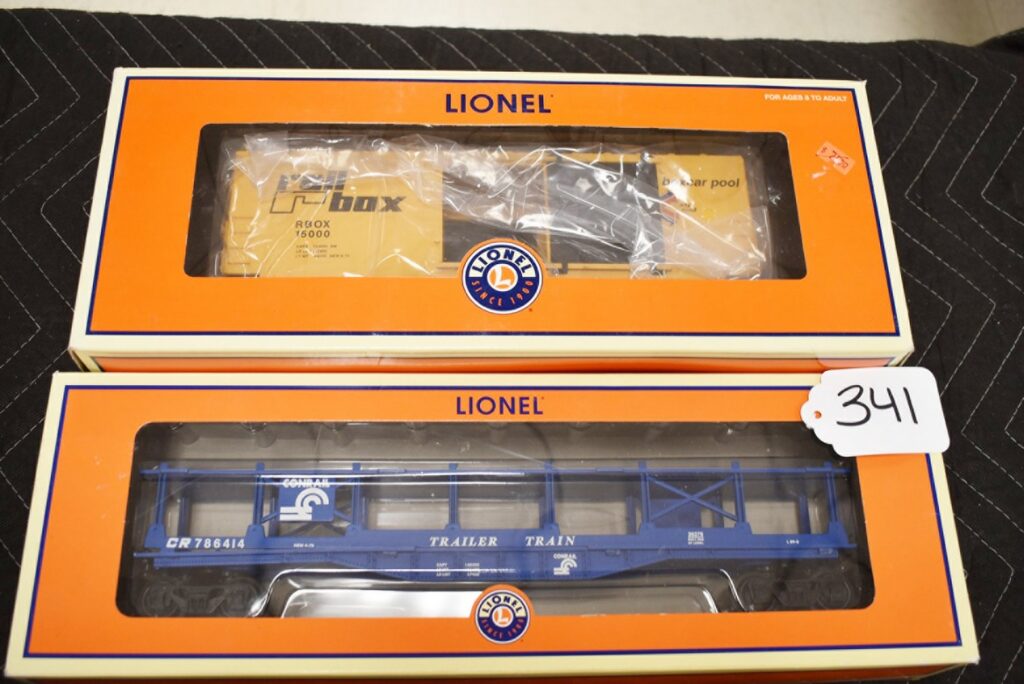 341.        Pair of Lionel Train Cars – Including Railbox Hi-Cube Boxcar 6-36273 and Conrail 2-Tier Auto Carrier 6-26378 – Both...